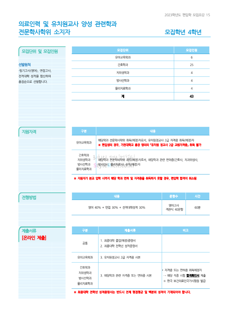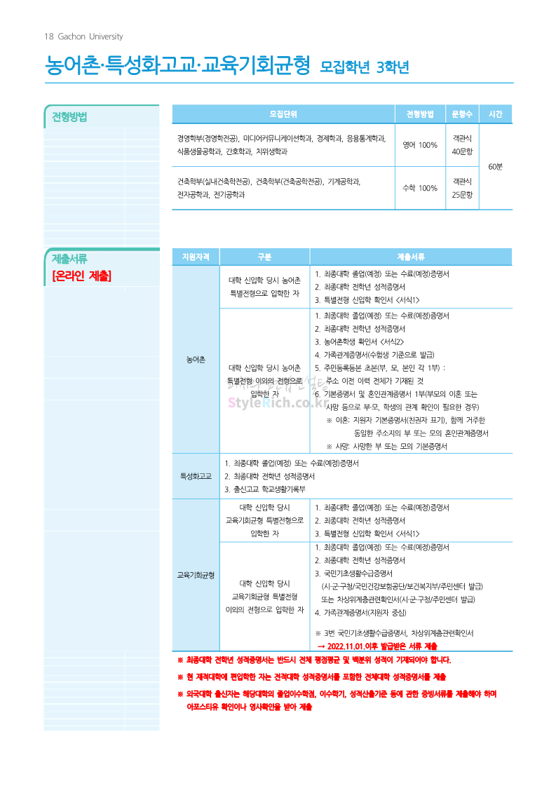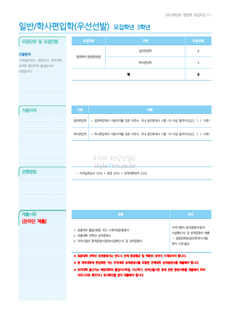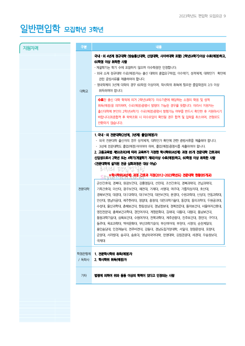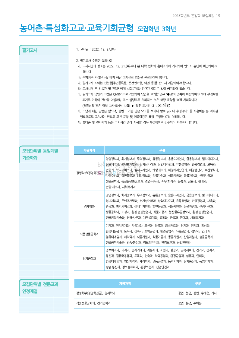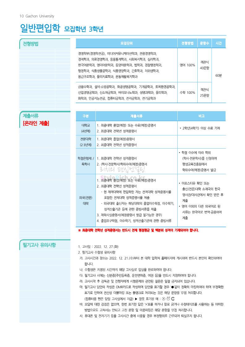 가천대 편입 2023학년도 모집요강 간편하게 보자! 2022.11.20 15:25 편입 모집요강/2023학년도 모집요강 2023학년도 가천대 편입 모집요강(2022.11.22 기준)을 간편하게 확인하세요. * 최종 모집요강 발표 이후에도 내용의 일부가 변경될 수 있으니 지원 전 반드시 가천대 입학처의 모집요강을 확인 바랍니다. 가천대 편입 최신 모집요강 확인하기 <출처: 가천대> 공유하기 게시글 관리 리치의 편입컨설팅 저작자표시 비영리 변경금지 (새창열림) '편입 모집요강 > 2023학년도 모집요강' 카테고리의 다른 글 광운대 편입 2023학년도 모집요강 간편하게 보자! (0) 2022.11.29 한국항공대 편입 2023학년도 모집요강 간편하게 보자! (0) 2022.11.25 단국대(천안) 편입 2023학년도 모집요강 간편하게 보자! (0) 2022.11.24 단국대(죽전) 편입 2023학년도 모집요강 간편하게 보자! (0) 2022.11.24 고려대 편입 2023학년도 자연계 필기고사 출제범위 및 참고도서를 알아보자! (0) 2022.11.20 댓글 공유하기 다른 글 댓글 이 글 공유하기 구독하기 구독하기 카카오톡 카카오톡 라인 라인 트위터 트위터 Facebook Facebook 카카오스토리 카카오스토리 밴드 밴드 네이버 블로그 네이버 블로그 Pocket Pocket Evernote Evernote 다른 글 한국항공대 편입 2023학년도 모집요강 간편하게 보자! 한국항공대 편입 2023학년도 모집요강 간편하게 보자! 2022.11.25 단국대(천안) 편입 2023학년도 모집요강 간편하게 보자! 단국대(천안) 편입 2023학년도 모집요강 간편하게 보자! 2022.11.24 단국대(죽전) 편입 2023학년도 모집요강 간편하게 보자! 단국대(죽전) 편입 2023학년도 모집요강 간편하게 보자! 2022.11.24 고려대 편입 2023학년도 자연계 필기고사 출제범위 및 참고도서를 알아보자! 고려대 편입 2023학년도 자연계 필기고사 출제범위 및 참고도서를 알아보자! 2022.11.20 다른 글 더 둘러보기