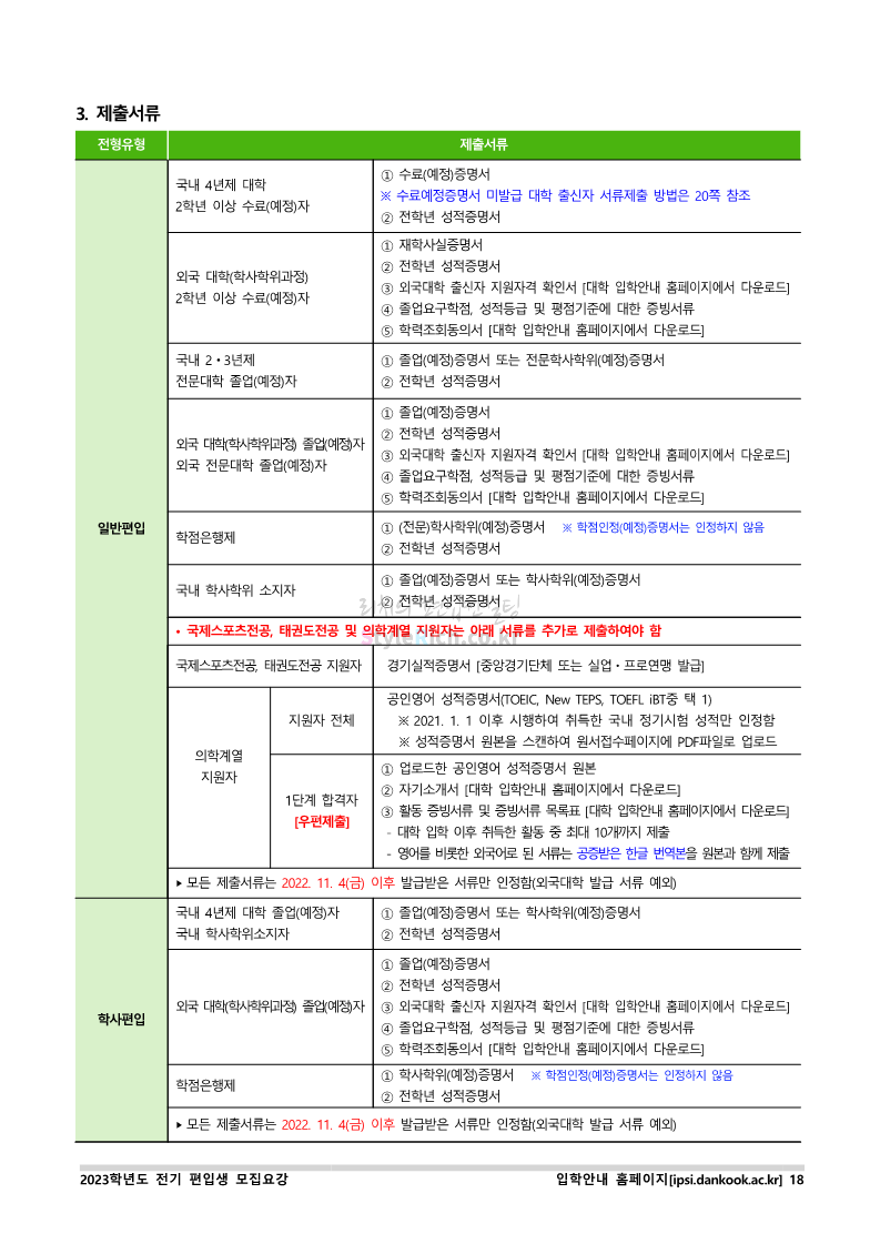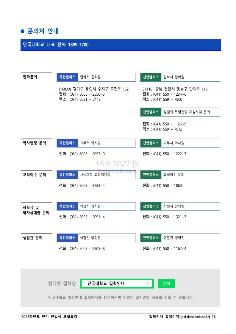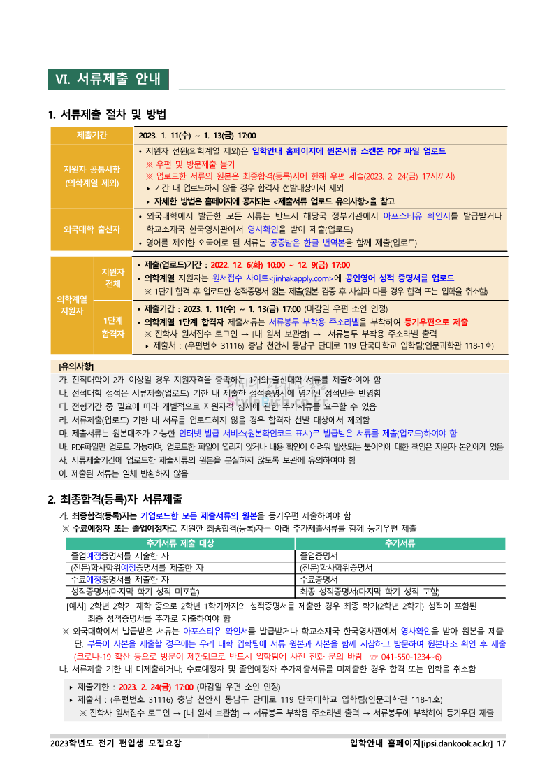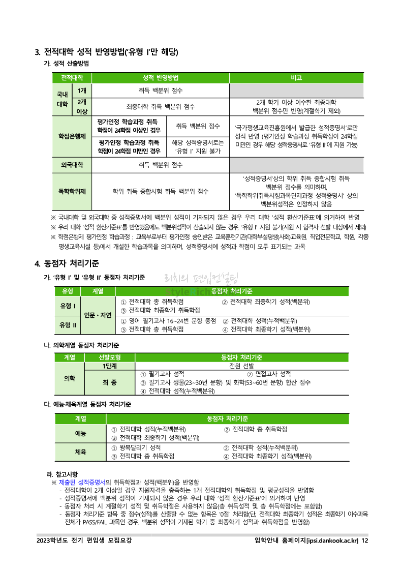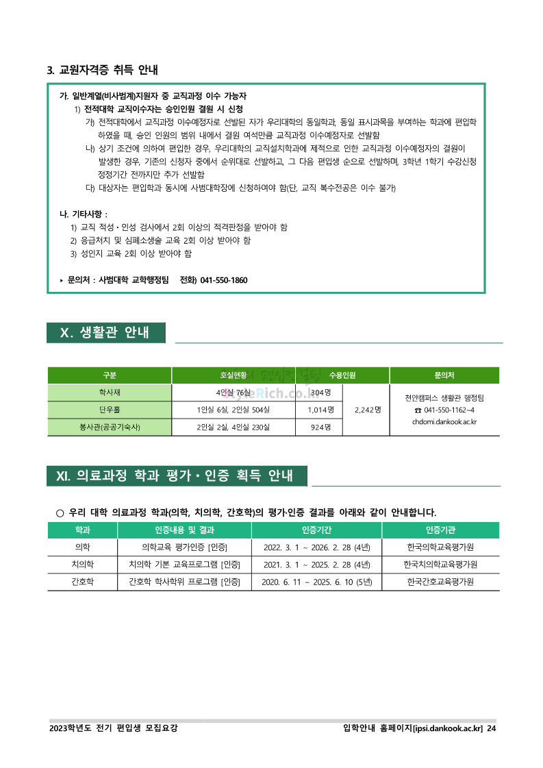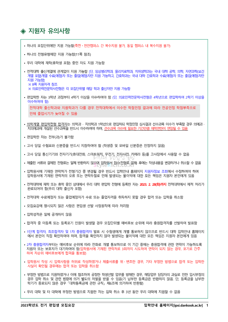 단국대(천안) 편입 2023학년도 모집요강 간편하게 보자! 2022.11.24 01:02 편입 모집요강/2023학년도 모집요강 2023학년도 단국대(천안) 편입 모집요강(2022.11.23 기준)을 간편하게 확인하세요. * 최종 모집요강 발표 이후에도 내용의 일부가 변경될 수 있으니 지원 전 반드시 단국대 입학처의 모집요강을 확인 바랍니다. 2023학년도 단국대(천안) 편입 최신 모집요강 확인하기 <출처: 단국대> 공유하기 게시글 관리 리치의 편입컨설팅 저작자표시 비영리 변경금지 (새창열림) '편입 모집요강 > 2023학년도 모집요강' 카테고리의 다른 글 광운대 편입 2023학년도 모집요강 간편하게 보자! (0) 2022.11.29 한국항공대 편입 2023학년도 모집요강 간편하게 보자! (0) 2022.11.25 단국대(죽전) 편입 2023학년도 모집요강 간편하게 보자! (0) 2022.11.24 고려대 편입 2023학년도 자연계 필기고사 출제범위 및 참고도서를 알아보자! (0) 2022.11.20 가천대 편입 2023학년도 모집요강 간편하게 보자! (0) 2022.11.20 댓글 공유하기 다른 글 댓글 이 글 공유하기 구독하기 구독하기 카카오톡 카카오톡 라인 라인 트위터 트위터 Facebook Facebook 카카오스토리 카카오스토리 밴드 밴드 네이버 블로그 네이버 블로그 Pocket Pocket Evernote Evernote 다른 글 광운대 편입 2023학년도 모집요강 간편하게 보자! 광운대 편입 2023학년도 모집요강 간편하게 보자! 2022.11.29 한국항공대 편입 2023학년도 모집요강 간편하게 보자! 한국항공대 편입 2023학년도 모집요강 간편하게 보자! 2022.11.25 단국대(죽전) 편입 2023학년도 모집요강 간편하게 보자! 단국대(죽전) 편입 2023학년도 모집요강 간편하게 보자! 2022.11.24 고려대 편입 2023학년도 자연계 필기고사 출제범위 및 참고도서를 알아보자! 고려대 편입 2023학년도 자연계 필기고사 출제범위 및 참고도서를 알아보자! 2022.11.20 다른 글 더 둘러보기