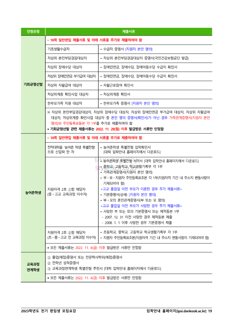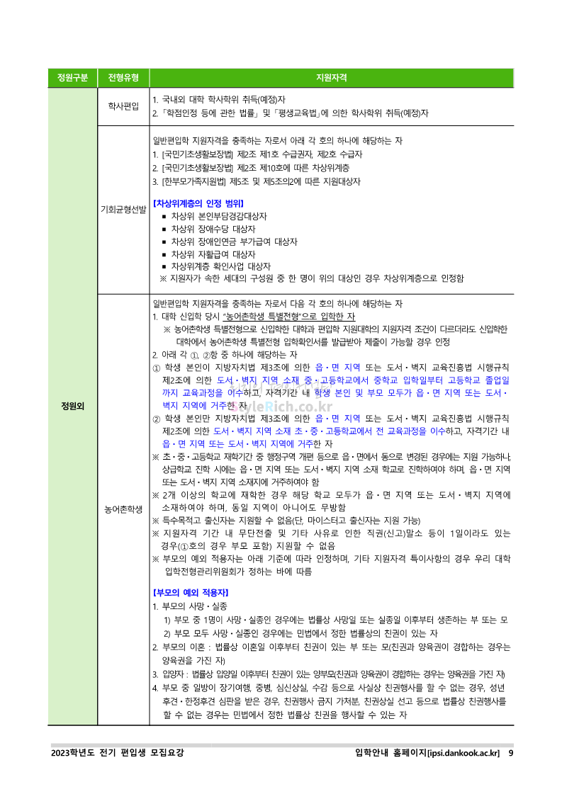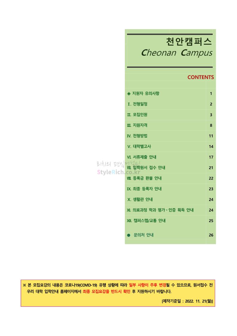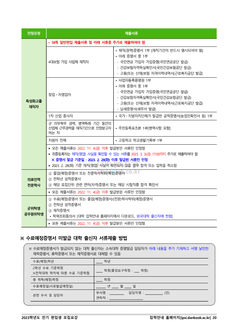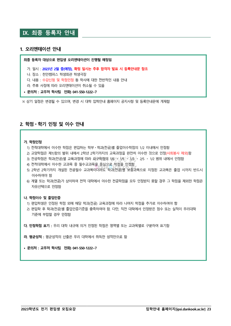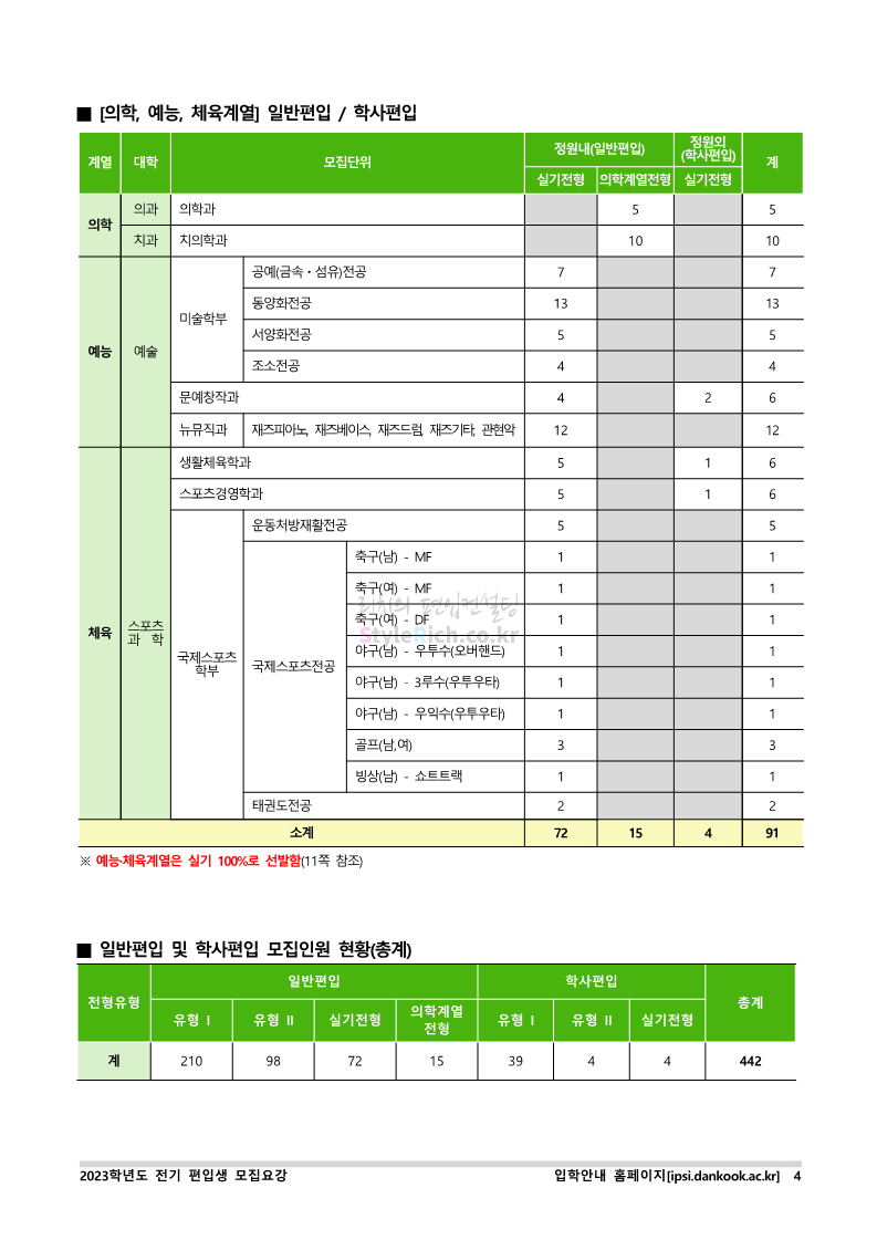 단국대(천안) 편입 2023학년도 모집요강 간편하게 보자! 2022.11.24 01:02 편입 모집요강/2023학년도 모집요강 2023학년도 단국대(천안) 편입 모집요강(2022.11.23 기준)을 간편하게 확인하세요. * 최종 모집요강 발표 이후에도 내용의 일부가 변경될 수 있으니 지원 전 반드시 단국대 입학처의 모집요강을 확인 바랍니다. 2023학년도 단국대(천안) 편입 최신 모집요강 확인하기 <출처: 단국대> 공유하기 게시글 관리 리치의 편입컨설팅 저작자표시 비영리 변경금지 (새창열림) '편입 모집요강 > 2023학년도 모집요강' 카테고리의 다른 글 광운대 편입 2023학년도 모집요강 간편하게 보자! (0) 2022.11.29 한국항공대 편입 2023학년도 모집요강 간편하게 보자! (0) 2022.11.25 단국대(죽전) 편입 2023학년도 모집요강 간편하게 보자! (0) 2022.11.24 고려대 편입 2023학년도 자연계 필기고사 출제범위 및 참고도서를 알아보자! (0) 2022.11.20 가천대 편입 2023학년도 모집요강 간편하게 보자! (0) 2022.11.20 댓글 공유하기 다른 글 댓글 이 글 공유하기 구독하기 구독하기 카카오톡 카카오톡 라인 라인 트위터 트위터 Facebook Facebook 카카오스토리 카카오스토리 밴드 밴드 네이버 블로그 네이버 블로그 Pocket Pocket Evernote Evernote 다른 글 광운대 편입 2023학년도 모집요강 간편하게 보자! 광운대 편입 2023학년도 모집요강 간편하게 보자! 2022.11.29 한국항공대 편입 2023학년도 모집요강 간편하게 보자! 한국항공대 편입 2023학년도 모집요강 간편하게 보자! 2022.11.25 단국대(죽전) 편입 2023학년도 모집요강 간편하게 보자! 단국대(죽전) 편입 2023학년도 모집요강 간편하게 보자! 2022.11.24 고려대 편입 2023학년도 자연계 필기고사 출제범위 및 참고도서를 알아보자! 고려대 편입 2023학년도 자연계 필기고사 출제범위 및 참고도서를 알아보자! 2022.11.20 다른 글 더 둘러보기