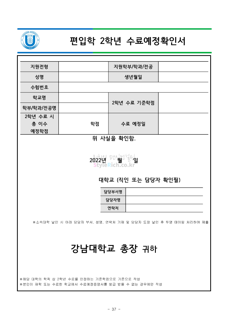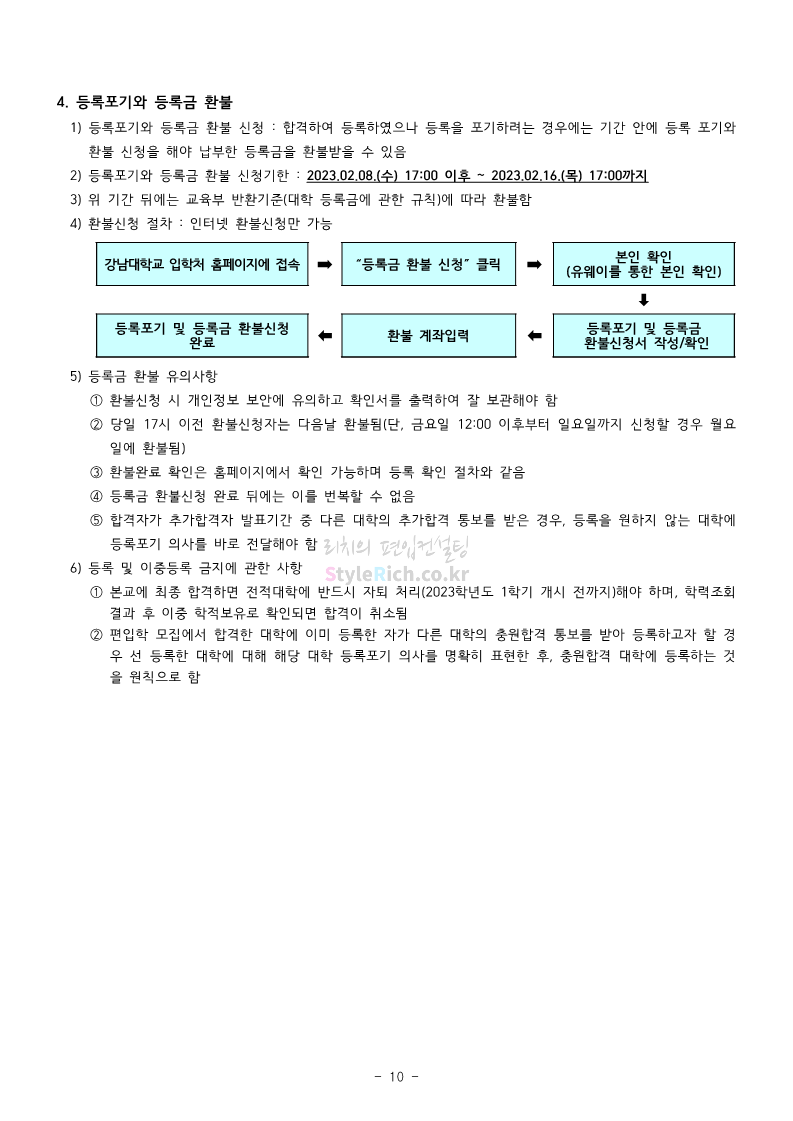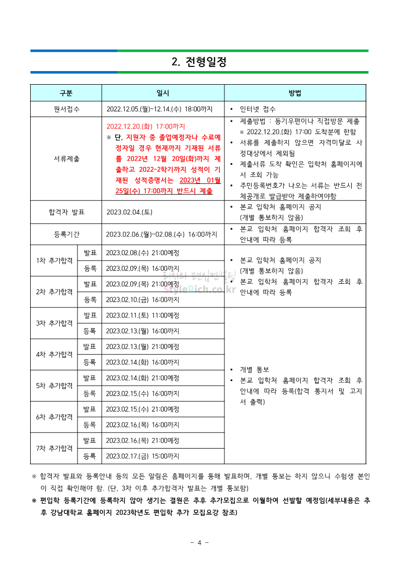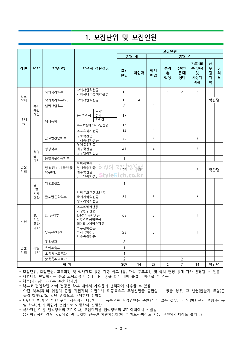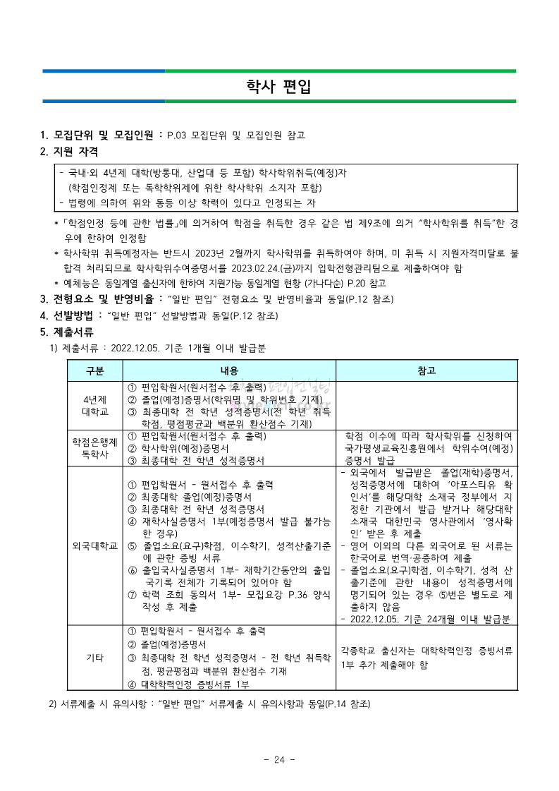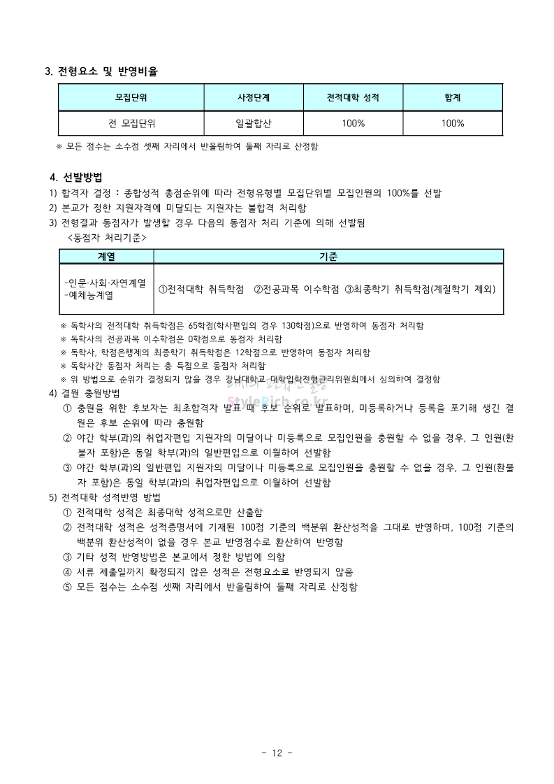 강남대 편입 2023학년도 모집요강 간편하게 보자! 2022.11.29 23:45 편입 모집요강/2023학년도 모집요강 2023학년도 강남대 편입 모집요강(2022.11.29 기준)을 간편하게 확인하세요. * 최종 모집요강 발표 이후에도 내용의 일부가 변경될 수 있으니 지원 전 반드시 강남대 입학처의 모집요강을 확인 바랍니다. 강남대 편입 최신 모집요강 확인하기 <출처: 강남대> 공유하기 게시글 관리 리치의 편입컨설팅 저작자표시 비영리 변경금지 (새창열림) '편입 모집요강 > 2023학년도 모집요강' 카테고리의 다른 글 국민대 편입 2023학년도 모집요강 간편하게 보자! (0) 2022.11.30 건국대 편입 2023학년도 모집요강 간편하게 보자! (0) 2022.11.30 수원대 편입 2023학년도 모집요강 간편하게 보자! (0) 2022.11.29 광운대 편입 2023학년도 모집요강 간편하게 보자! (0) 2022.11.29 한국항공대 편입 2023학년도 모집요강 간편하게 보자! (0) 2022.11.25 댓글 공유하기 다른 글 댓글 이 글 공유하기 구독하기 구독하기 카카오톡 카카오톡 라인 라인 트위터 트위터 Facebook Facebook 카카오스토리 카카오스토리 밴드 밴드 네이버 블로그 네이버 블로그 Pocket Pocket Evernote Evernote 다른 글 국민대 편입 2023학년도 모집요강 간편하게 보자! 국민대 편입 2023학년도 모집요강 간편하게 보자! 2022.11.30 건국대 편입 2023학년도 모집요강 간편하게 보자! 건국대 편입 2023학년도 모집요강 간편하게 보자! 2022.11.30 수원대 편입 2023학년도 모집요강 간편하게 보자! 수원대 편입 2023학년도 모집요강 간편하게 보자! 2022.11.29 광운대 편입 2023학년도 모집요강 간편하게 보자! 광운대 편입 2023학년도 모집요강 간편하게 보자! 2022.11.29 다른 글 더 둘러보기