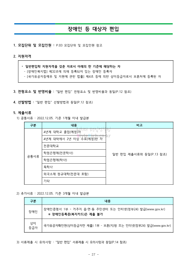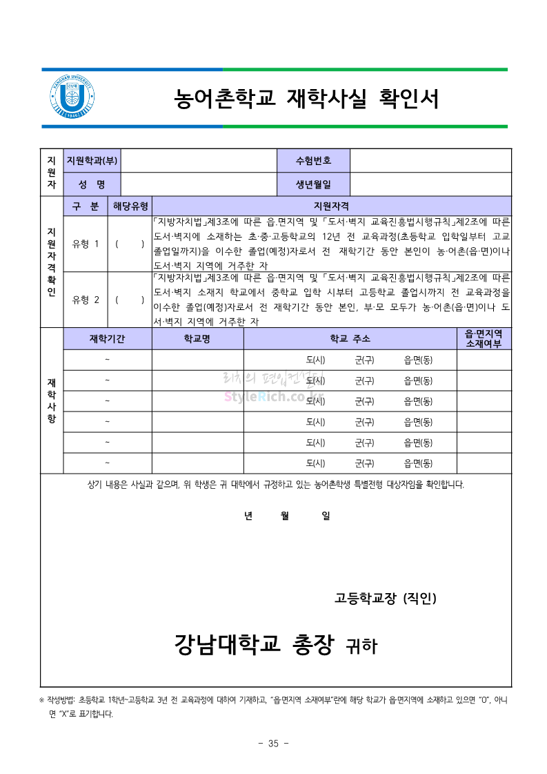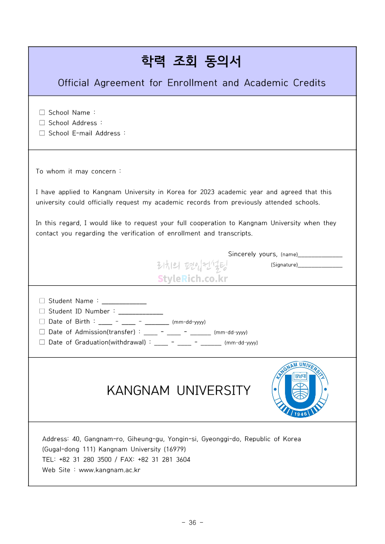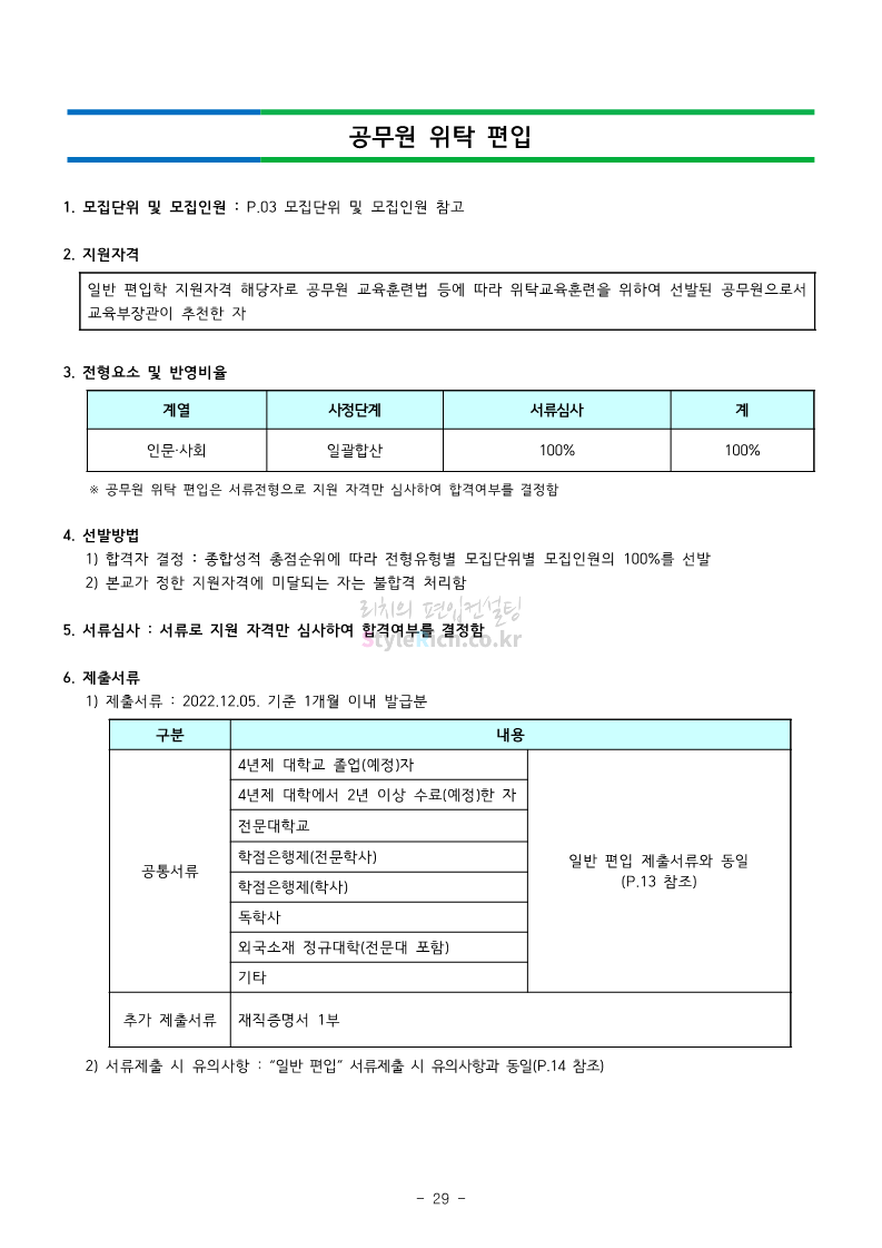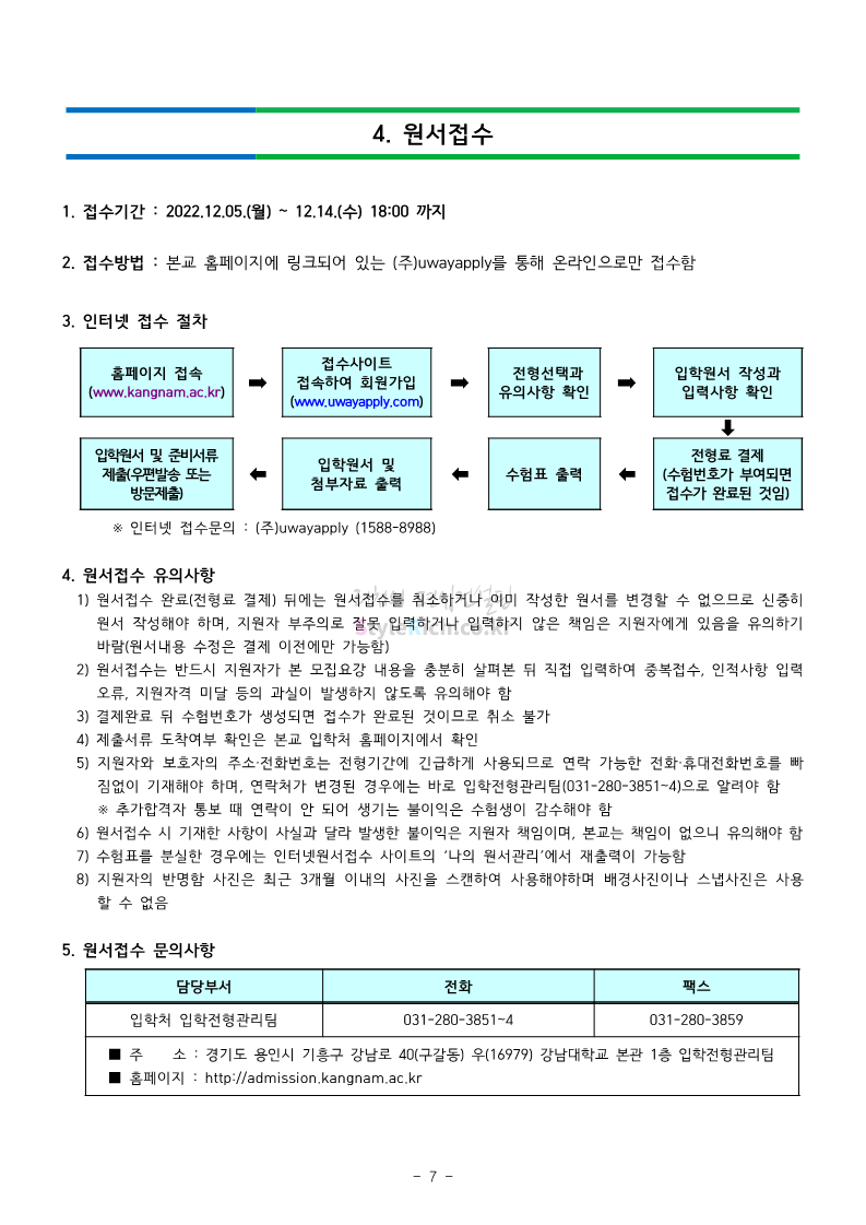 강남대 편입 2023학년도 모집요강 간편하게 보자! 2022.11.29 23:45 편입 모집요강/2023학년도 모집요강 2023학년도 강남대 편입 모집요강(2022.11.29 기준)을 간편하게 확인하세요. * 최종 모집요강 발표 이후에도 내용의 일부가 변경될 수 있으니 지원 전 반드시 강남대 입학처의 모집요강을 확인 바랍니다. 강남대 편입 최신 모집요강 확인하기 <출처: 강남대> 공유하기 게시글 관리 리치의 편입컨설팅 저작자표시 비영리 변경금지 (새창열림) '편입 모집요강 > 2023학년도 모집요강' 카테고리의 다른 글 국민대 편입 2023학년도 모집요강 간편하게 보자! (0) 2022.11.30 건국대 편입 2023학년도 모집요강 간편하게 보자! (0) 2022.11.30 수원대 편입 2023학년도 모집요강 간편하게 보자! (0) 2022.11.29 광운대 편입 2023학년도 모집요강 간편하게 보자! (0) 2022.11.29 한국항공대 편입 2023학년도 모집요강 간편하게 보자! (0) 2022.11.25 댓글 공유하기 다른 글 댓글 이 글 공유하기 구독하기 구독하기 카카오톡 카카오톡 라인 라인 트위터 트위터 Facebook Facebook 카카오스토리 카카오스토리 밴드 밴드 네이버 블로그 네이버 블로그 Pocket Pocket Evernote Evernote 다른 글 국민대 편입 2023학년도 모집요강 간편하게 보자! 국민대 편입 2023학년도 모집요강 간편하게 보자! 2022.11.30 건국대 편입 2023학년도 모집요강 간편하게 보자! 건국대 편입 2023학년도 모집요강 간편하게 보자! 2022.11.30 수원대 편입 2023학년도 모집요강 간편하게 보자! 수원대 편입 2023학년도 모집요강 간편하게 보자! 2022.11.29 광운대 편입 2023학년도 모집요강 간편하게 보자! 광운대 편입 2023학년도 모집요강 간편하게 보자! 2022.11.29 다른 글 더 둘러보기
