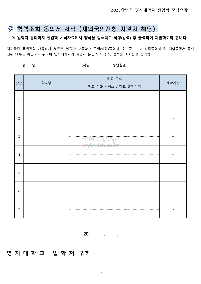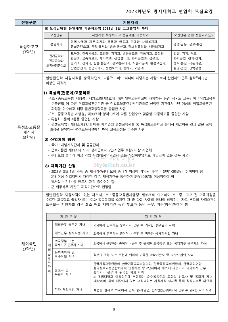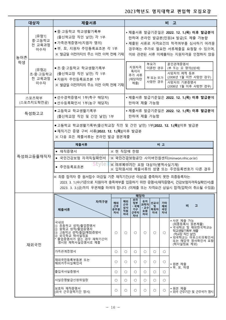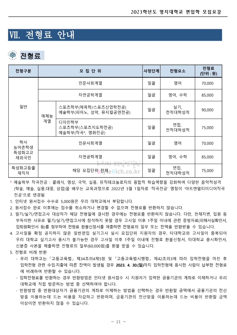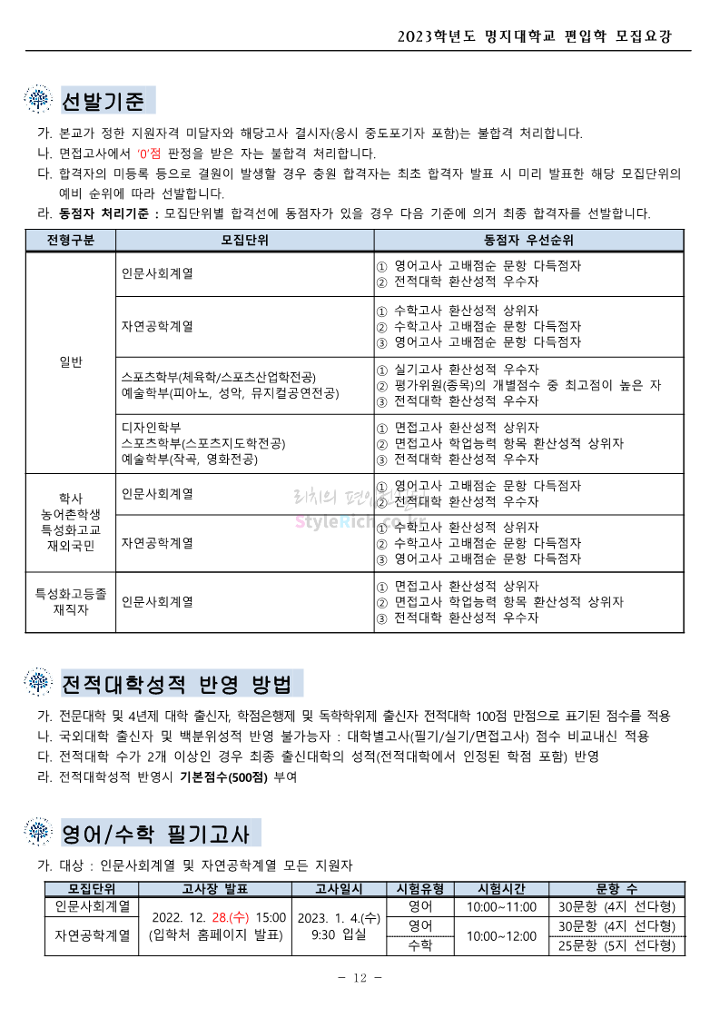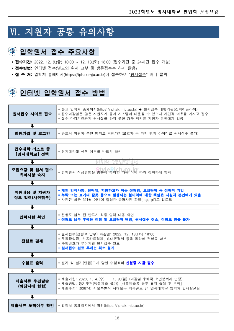 명지대 편입 2023학년도 모집요강 간편하게 보자! 2022.11.30 00:53 편입 모집요강/2023학년도 모집요강 2023학년도 명지대 편입 모집요강(2022.11.29 기준)을 간편하게 확인하세요. * 최종 모집요강 발표 이후에도 내용의 일부가 변경될 수 있으니 지원 전 반드시 명지대 입학처를 확인 바랍니다. 명지대 편입 최신 모집요강 확인하기 <출처: 명지대> 공유하기 게시글 관리 리치의 편입컨설팅 저작자표시 비영리 변경금지 (새창열림) '편입 모집요강 > 2023학년도 모집요강' 카테고리의 다른 글 연세대(미래) 편입 2023학년도 모집요강 간편하게 보자! (0) 2022.11.30 연세대 편입 2023학년도 모집요강 간편하게 보자! (0) 2022.11.30 국민대 편입 2023학년도 모집요강 간편하게 보자! (0) 2022.11.30 건국대 편입 2023학년도 모집요강 간편하게 보자! (0) 2022.11.30 강남대 편입 2023학년도 모집요강 간편하게 보자! (0) 2022.11.29 댓글 공유하기 다른 글 댓글 이 글 공유하기 구독하기 구독하기 카카오톡 카카오톡 라인 라인 트위터 트위터 Facebook Facebook 카카오스토리 카카오스토리 밴드 밴드 네이버 블로그 네이버 블로그 Pocket Pocket Evernote Evernote 다른 글 연세대(미래) 편입 2023학년도 모집요강 간편하게 보자! 연세대(미래) 편입 2023학년도 모집요강 간편하게 보자! 2022.11.30 연세대 편입 2023학년도 모집요강 간편하게 보자! 연세대 편입 2023학년도 모집요강 간편하게 보자! 2022.11.30 국민대 편입 2023학년도 모집요강 간편하게 보자! 국민대 편입 2023학년도 모집요강 간편하게 보자! 2022.11.30 건국대 편입 2023학년도 모집요강 간편하게 보자! 건국대 편입 2023학년도 모집요강 간편하게 보자! 2022.11.30 다른 글 더 둘러보기