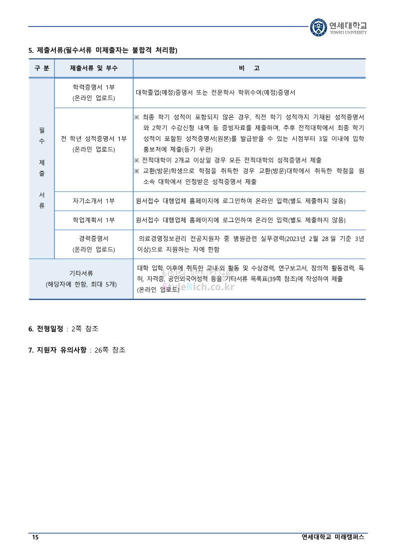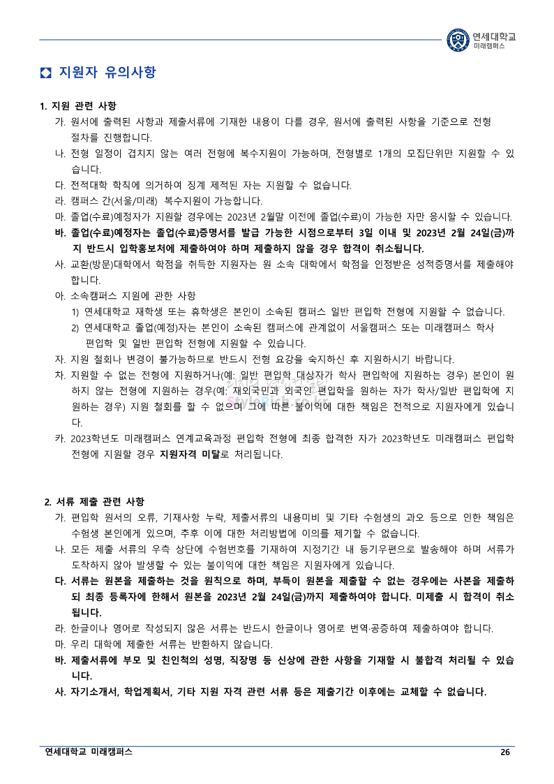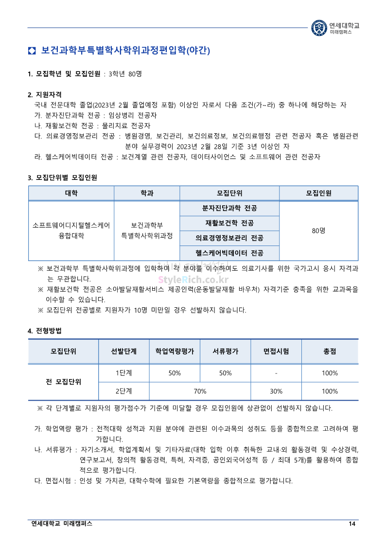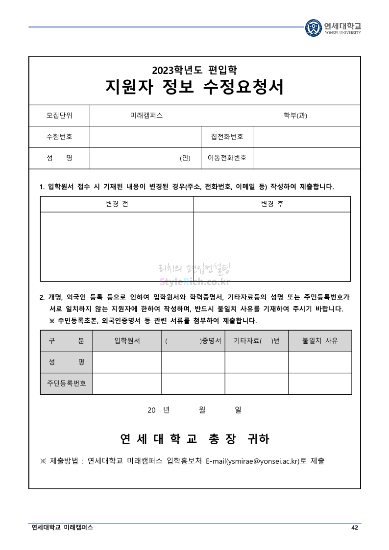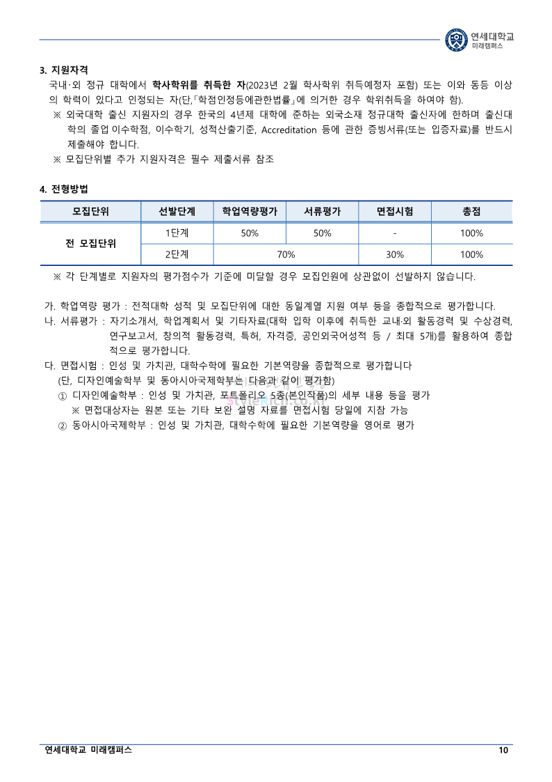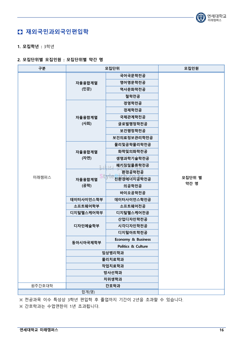 연세대(미래) 편입 2023학년도 모집요강 간편하게 보자! 2022.11.30 02:32 편입 모집요강/2023학년도 모집요강 2023학년도 연세대(미래) 편입 모집요강(2022.11.29 기준)을 간편하게 확인하세요. * 최종 모집요강 발표 이후에도 내용의 일부가 변경될 수 있으니 지원 전 반드시 연세대(미래) 입학처를 확인 바랍니다. 연세대(미래) 편입 최신 모집요강 확인하기 <출처: 연세대(미래)> 공유하기 게시글 관리 리치의 편입컨설팅 저작자표시 비영리 변경금지 (새창열림) '편입 모집요강 > 2023학년도 모집요강' 카테고리의 다른 글 서울대 편입 2023학년도 모집요강 간편하게 보자! (0) 2022.11.30 계명대 편입 2023학년도 모집요강 간편하게 보자! (0) 2022.11.30 연세대 편입 2023학년도 모집요강 간편하게 보자! (0) 2022.11.30 명지대 편입 2023학년도 모집요강 간편하게 보자! (0) 2022.11.30 국민대 편입 2023학년도 모집요강 간편하게 보자! (0) 2022.11.30 댓글 공유하기 다른 글 댓글 이 글 공유하기 구독하기 구독하기 카카오톡 카카오톡 라인 라인 트위터 트위터 Facebook Facebook 카카오스토리 카카오스토리 밴드 밴드 네이버 블로그 네이버 블로그 Pocket Pocket Evernote Evernote 다른 글 서울대 편입 2023학년도 모집요강 간편하게 보자! 서울대 편입 2023학년도 모집요강 간편하게 보자! 2022.11.30 계명대 편입 2023학년도 모집요강 간편하게 보자! 계명대 편입 2023학년도 모집요강 간편하게 보자! 2022.11.30 연세대 편입 2023학년도 모집요강 간편하게 보자! 연세대 편입 2023학년도 모집요강 간편하게 보자! 2022.11.30 명지대 편입 2023학년도 모집요강 간편하게 보자! 명지대 편입 2023학년도 모집요강 간편하게 보자! 2022.11.30 다른 글 더 둘러보기