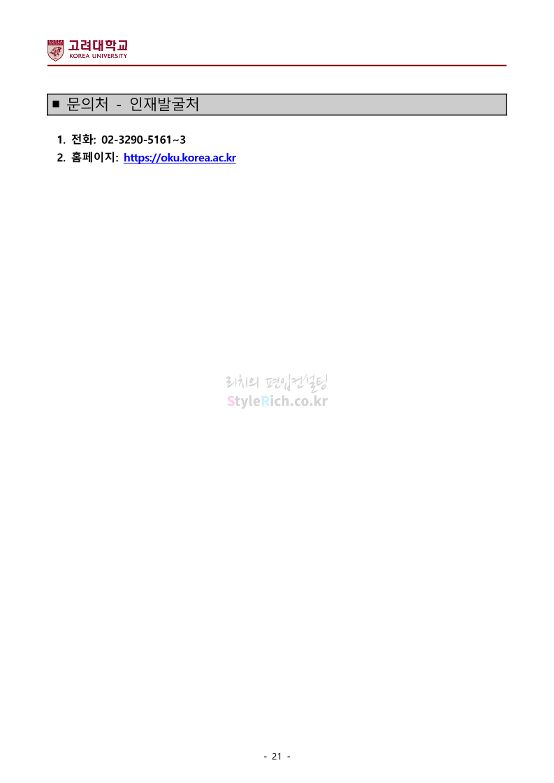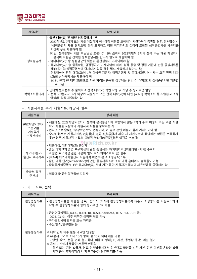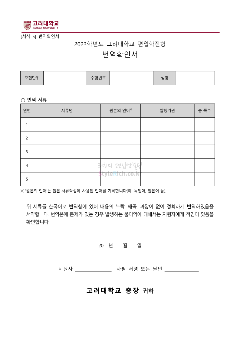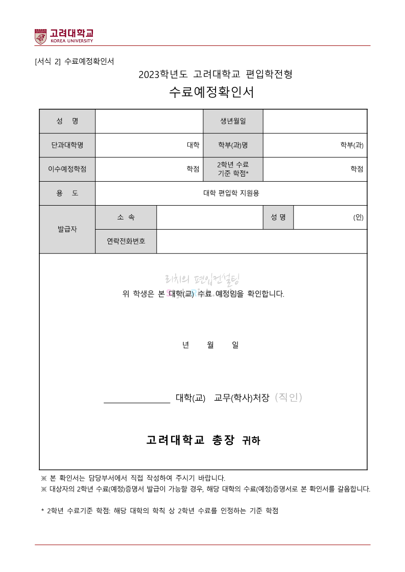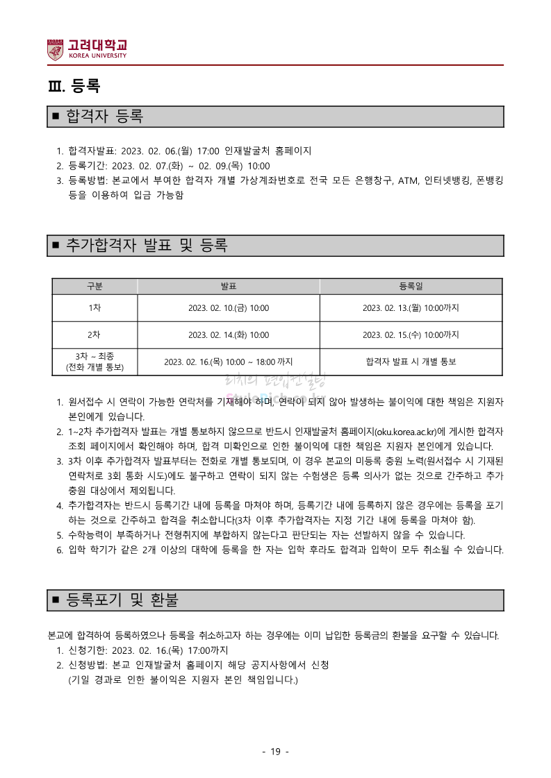 고려대 편입 2023학년도 모집요강 간편하게 보자! 2022.12.01 00:30 편입 모집요강/2023학년도 모집요강 2023학년도 고려대 편입 모집요강(2022.11.30 기준)을 간편하게 확인하세요. * 최종 모집요강 발표 이후에도 내용의 일부가 변경될 수 있으니 지원 전 반드시 고려대 입학처를 확인 바랍니다. 고려대 편입 최신 모집요강 확인하기 <출처: 고려대> 공유하기 게시글 관리 리치의 편입컨설팅 저작자표시 비영리 변경금지 (새창열림) '편입 모집요강 > 2023학년도 모집요강' 카테고리의 다른 글 안양대 편입 2023학년도 모집요강 간편하게 보자! (0) 2022.12.01 한국공학대 편입 2023학년도 모집요강 간편하게 보자! (0) 2022.12.01 경희대 편입 2023학년도 모집요강 간편하게 보자! (0) 2022.11.30 서울대 편입 2023학년도 모집요강 간편하게 보자! (0) 2022.11.30 계명대 편입 2023학년도 모집요강 간편하게 보자! (0) 2022.11.30 댓글 공유하기 다른 글 댓글 이 글 공유하기 구독하기 구독하기 카카오톡 카카오톡 라인 라인 트위터 트위터 Facebook Facebook 카카오스토리 카카오스토리 밴드 밴드 네이버 블로그 네이버 블로그 Pocket Pocket Evernote Evernote 다른 글 안양대 편입 2023학년도 모집요강 간편하게 보자! 안양대 편입 2023학년도 모집요강 간편하게 보자! 2022.12.01 한국공학대 편입 2023학년도 모집요강 간편하게 보자! 한국공학대 편입 2023학년도 모집요강 간편하게 보자! 2022.12.01 경희대 편입 2023학년도 모집요강 간편하게 보자! 경희대 편입 2023학년도 모집요강 간편하게 보자! 2022.11.30 서울대 편입 2023학년도 모집요강 간편하게 보자! 서울대 편입 2023학년도 모집요강 간편하게 보자! 2022.11.30 다른 글 더 둘러보기