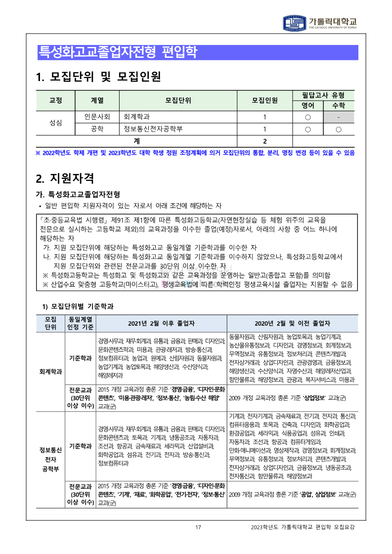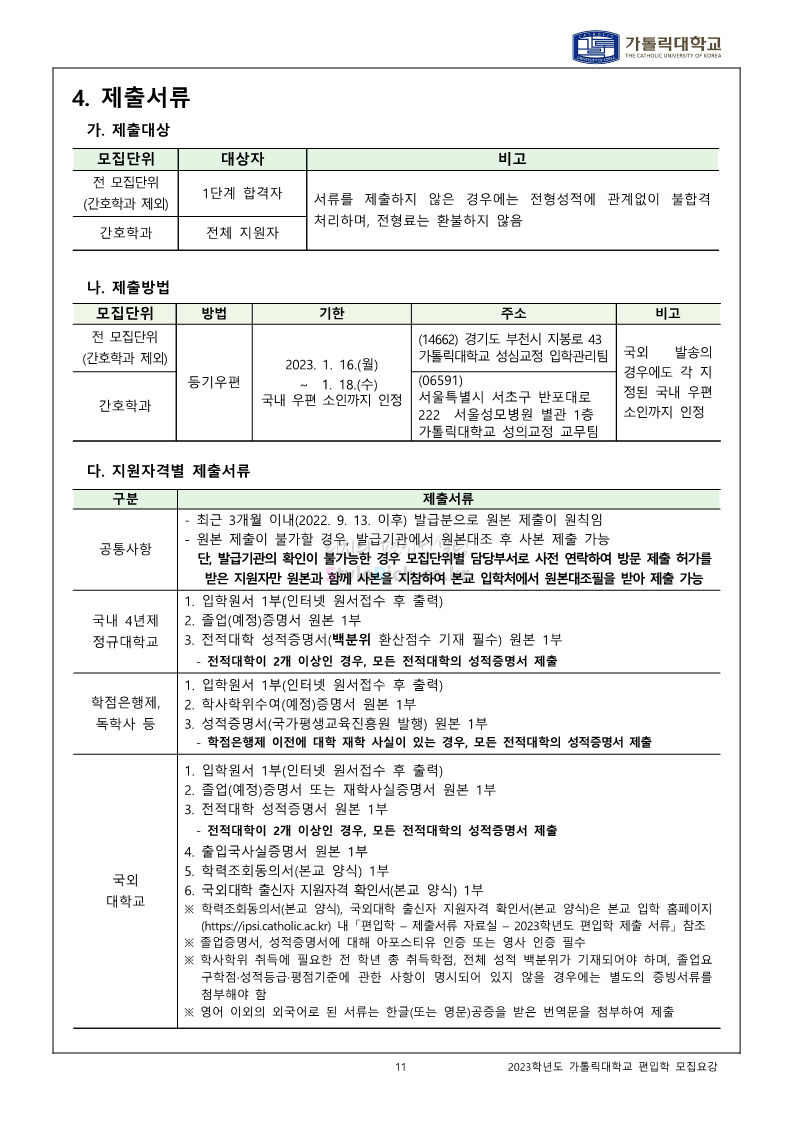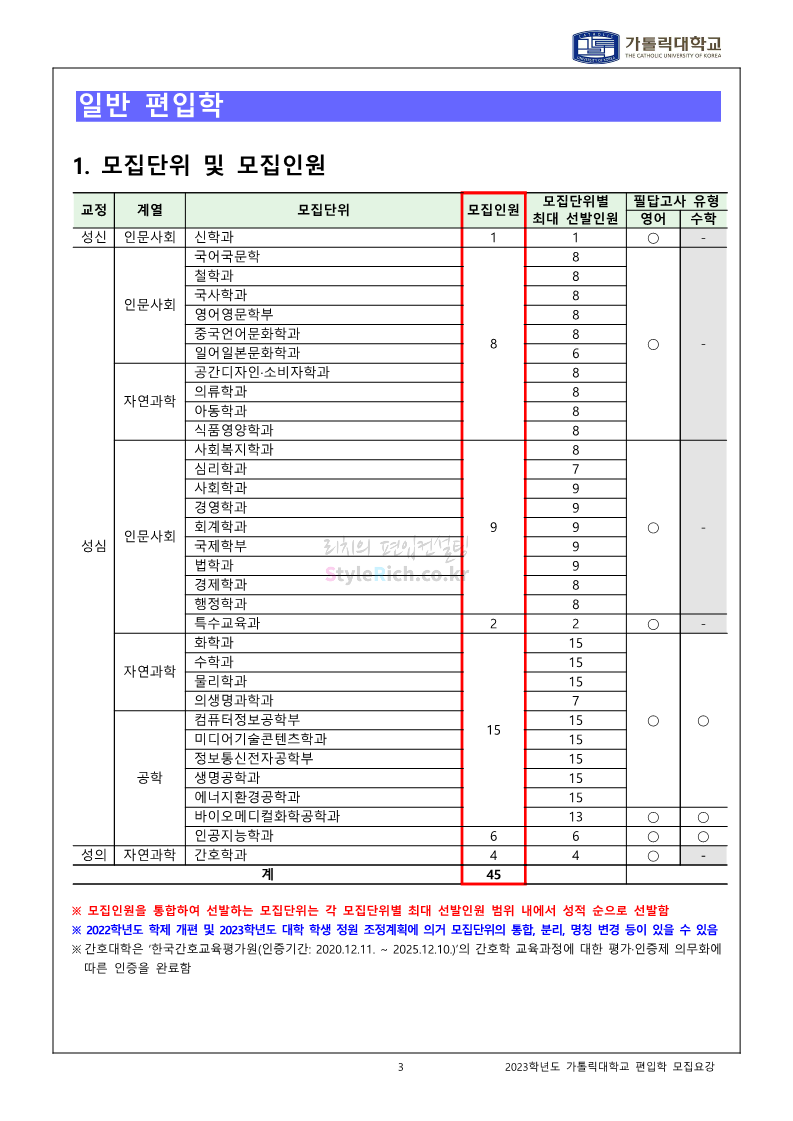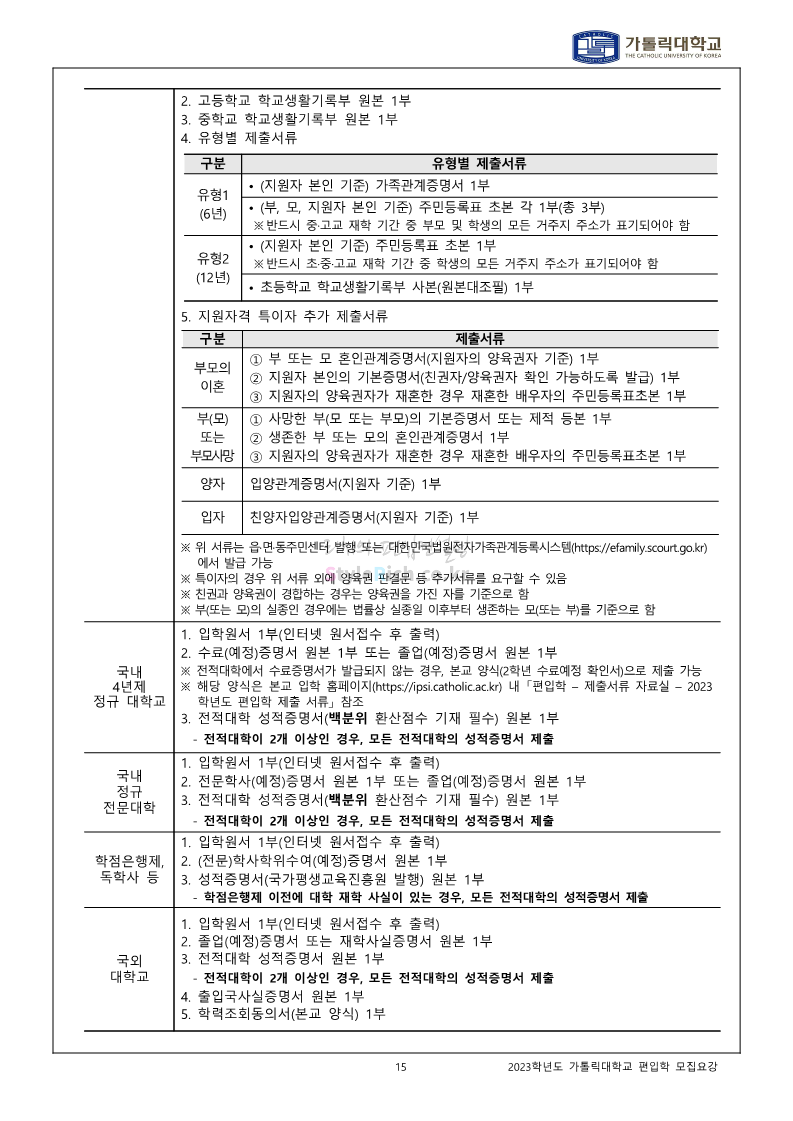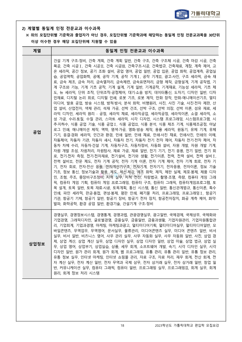 가톨릭대 편입 2023학년도 모집요강 간편하게 보자! 2022.12.02 00:10 편입 모집요강/2023학년도 모집요강 2023학년도 가톨릭대 편입 모집요강(2022.12.01 기준)을 간편하게 확인하세요. * 최종 모집요강 발표 이후에도 내용의 일부가 변경될 수 있으니 지원 전 반드시 가톨릭대 입학처를 확인 바랍니다. 가톨릭대 편입 최신 모집요강 확인하기 <출처: 가톨릭대> 공유하기 게시글 관리 리치의 편입컨설팅 저작자표시 비영리 변경금지 (새창열림) '편입 모집요강 > 2023학년도 모집요강' 카테고리의 다른 글 숭실대 편입 2023학년도 모집요강 간편하게 보자! (0) 2022.12.02 세종대 편입 2023학년도 모집요강 간편하게 보자! (0) 2022.12.02 안양대 편입 2023학년도 모집요강 간편하게 보자! (0) 2022.12.01 한국공학대 편입 2023학년도 모집요강 간편하게 보자! (0) 2022.12.01 고려대 편입 2023학년도 모집요강 간편하게 보자! (0) 2022.12.01 댓글 공유하기 다른 글 댓글 이 글 공유하기 구독하기 구독하기 카카오톡 카카오톡 라인 라인 트위터 트위터 Facebook Facebook 카카오스토리 카카오스토리 밴드 밴드 네이버 블로그 네이버 블로그 Pocket Pocket Evernote Evernote 다른 글 숭실대 편입 2023학년도 모집요강 간편하게 보자! 숭실대 편입 2023학년도 모집요강 간편하게 보자! 2022.12.02 세종대 편입 2023학년도 모집요강 간편하게 보자! 세종대 편입 2023학년도 모집요강 간편하게 보자! 2022.12.02 안양대 편입 2023학년도 모집요강 간편하게 보자! 안양대 편입 2023학년도 모집요강 간편하게 보자! 2022.12.01 한국공학대 편입 2023학년도 모집요강 간편하게 보자! 한국공학대 편입 2023학년도 모집요강 간편하게 보자! 2022.12.01 다른 글 더 둘러보기