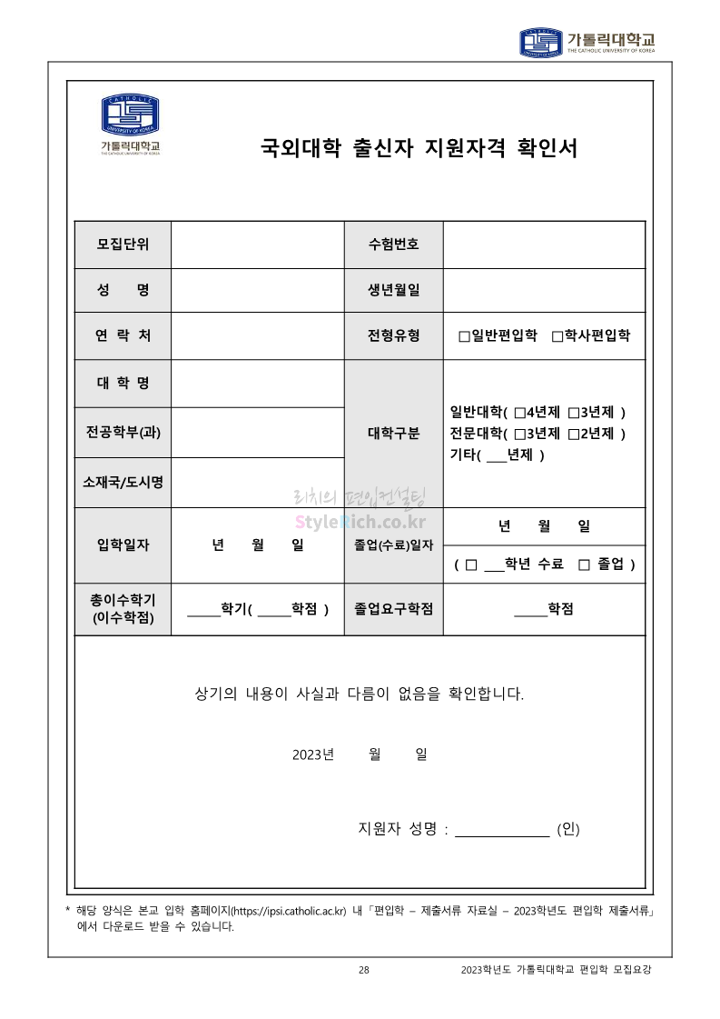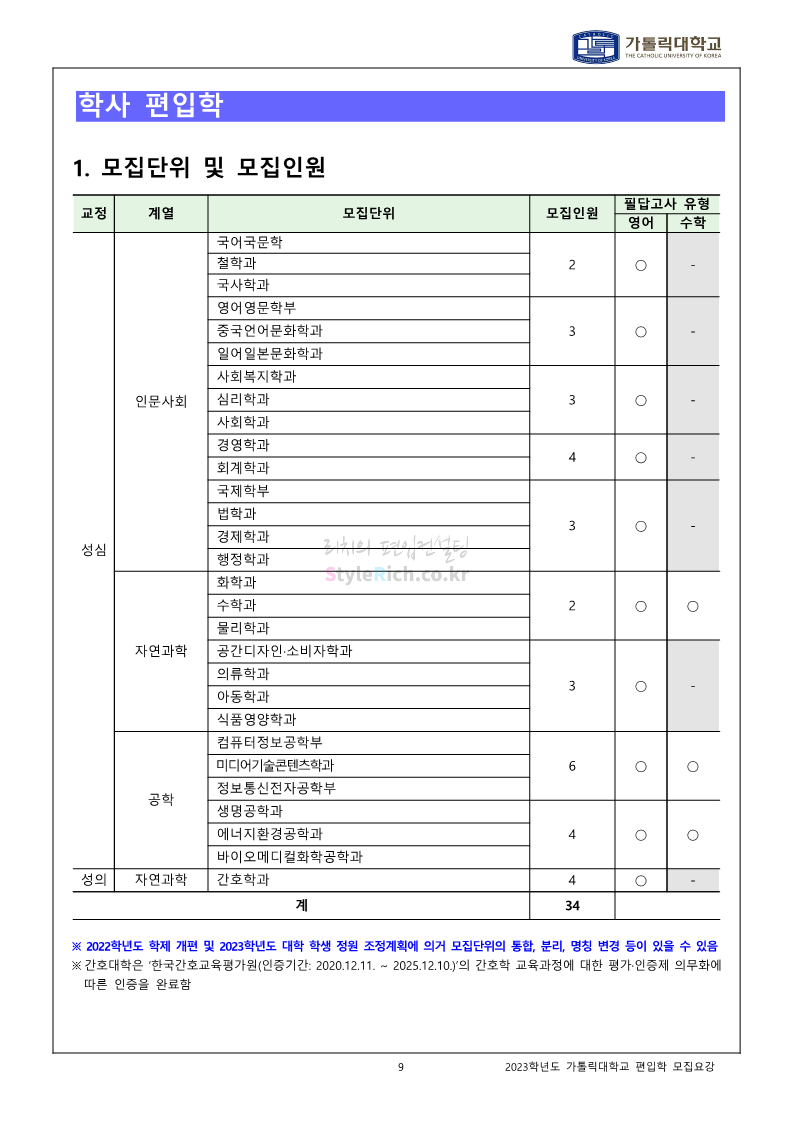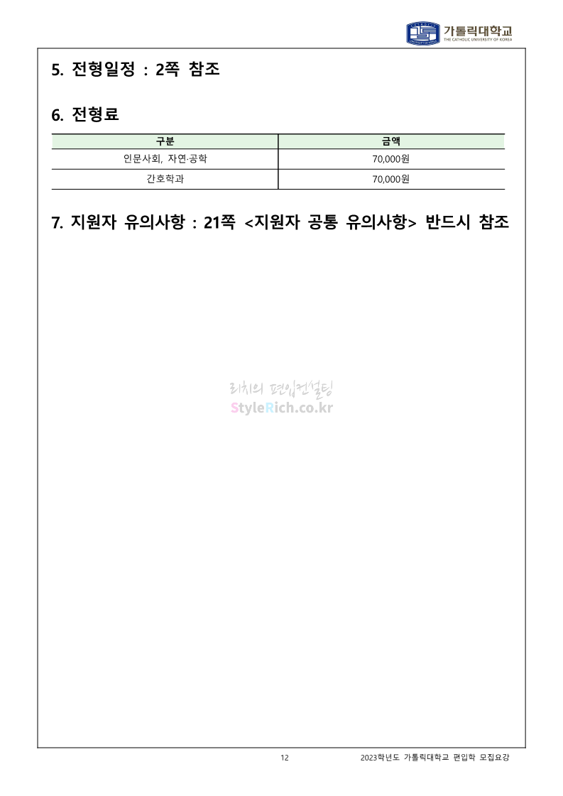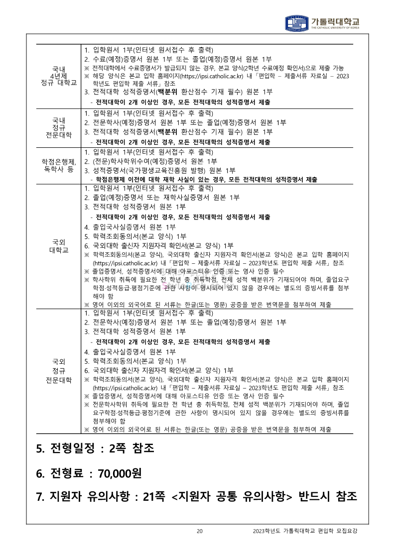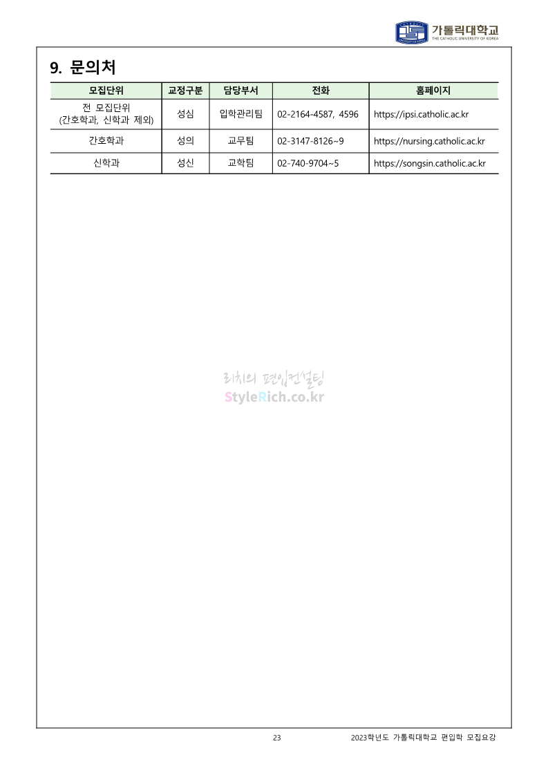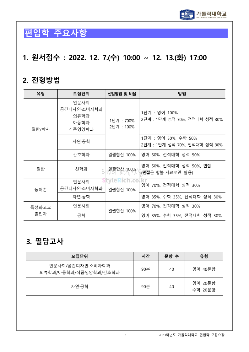 가톨릭대 편입 2023학년도 모집요강 간편하게 보자! 2022.12.02 00:10 편입 모집요강/2023학년도 모집요강 2023학년도 가톨릭대 편입 모집요강(2022.12.01 기준)을 간편하게 확인하세요. * 최종 모집요강 발표 이후에도 내용의 일부가 변경될 수 있으니 지원 전 반드시 가톨릭대 입학처를 확인 바랍니다. 가톨릭대 편입 최신 모집요강 확인하기 <출처: 가톨릭대> 공유하기 게시글 관리 리치의 편입컨설팅 저작자표시 비영리 변경금지 (새창열림) '편입 모집요강 > 2023학년도 모집요강' 카테고리의 다른 글 숭실대 편입 2023학년도 모집요강 간편하게 보자! (0) 2022.12.02 세종대 편입 2023학년도 모집요강 간편하게 보자! (0) 2022.12.02 안양대 편입 2023학년도 모집요강 간편하게 보자! (0) 2022.12.01 한국공학대 편입 2023학년도 모집요강 간편하게 보자! (0) 2022.12.01 고려대 편입 2023학년도 모집요강 간편하게 보자! (0) 2022.12.01 댓글 공유하기 다른 글 댓글 이 글 공유하기 구독하기 구독하기 카카오톡 카카오톡 라인 라인 트위터 트위터 Facebook Facebook 카카오스토리 카카오스토리 밴드 밴드 네이버 블로그 네이버 블로그 Pocket Pocket Evernote Evernote 다른 글 숭실대 편입 2023학년도 모집요강 간편하게 보자! 숭실대 편입 2023학년도 모집요강 간편하게 보자! 2022.12.02 세종대 편입 2023학년도 모집요강 간편하게 보자! 세종대 편입 2023학년도 모집요강 간편하게 보자! 2022.12.02 안양대 편입 2023학년도 모집요강 간편하게 보자! 안양대 편입 2023학년도 모집요강 간편하게 보자! 2022.12.01 한국공학대 편입 2023학년도 모집요강 간편하게 보자! 한국공학대 편입 2023학년도 모집요강 간편하게 보자! 2022.12.01 다른 글 더 둘러보기