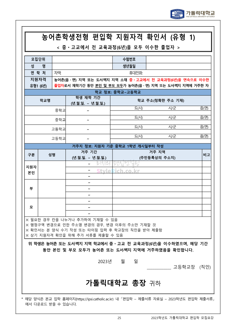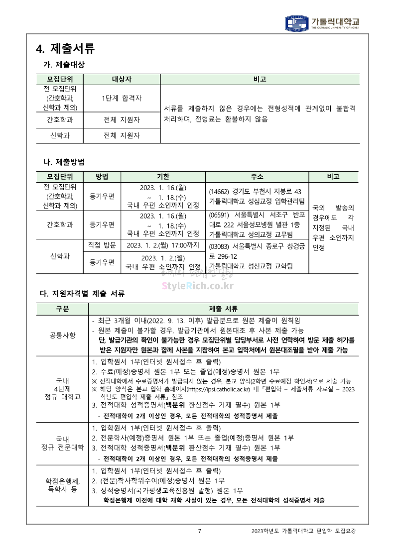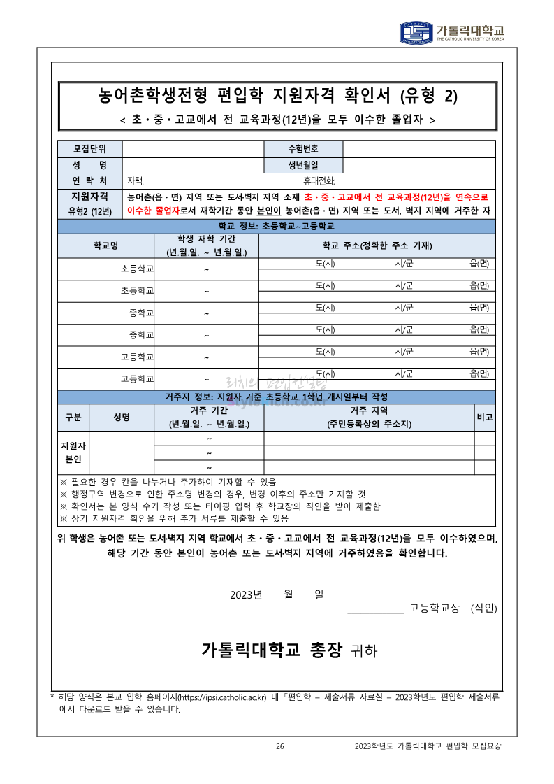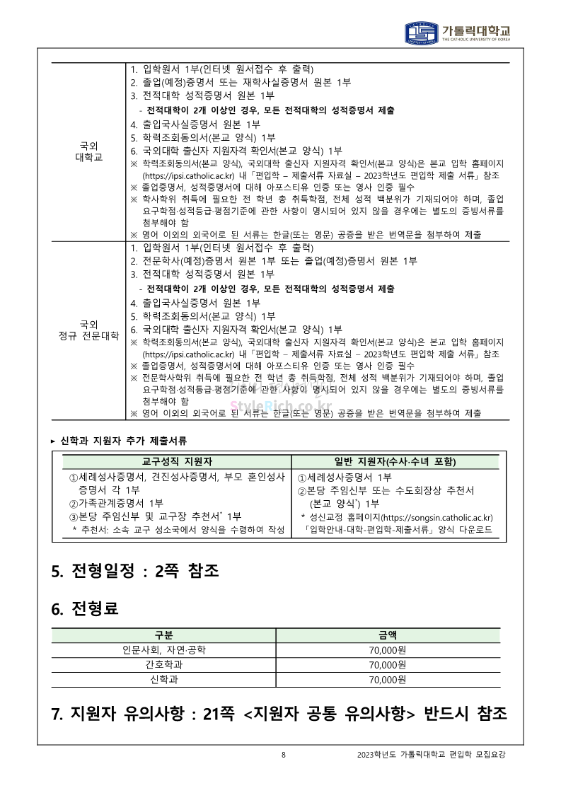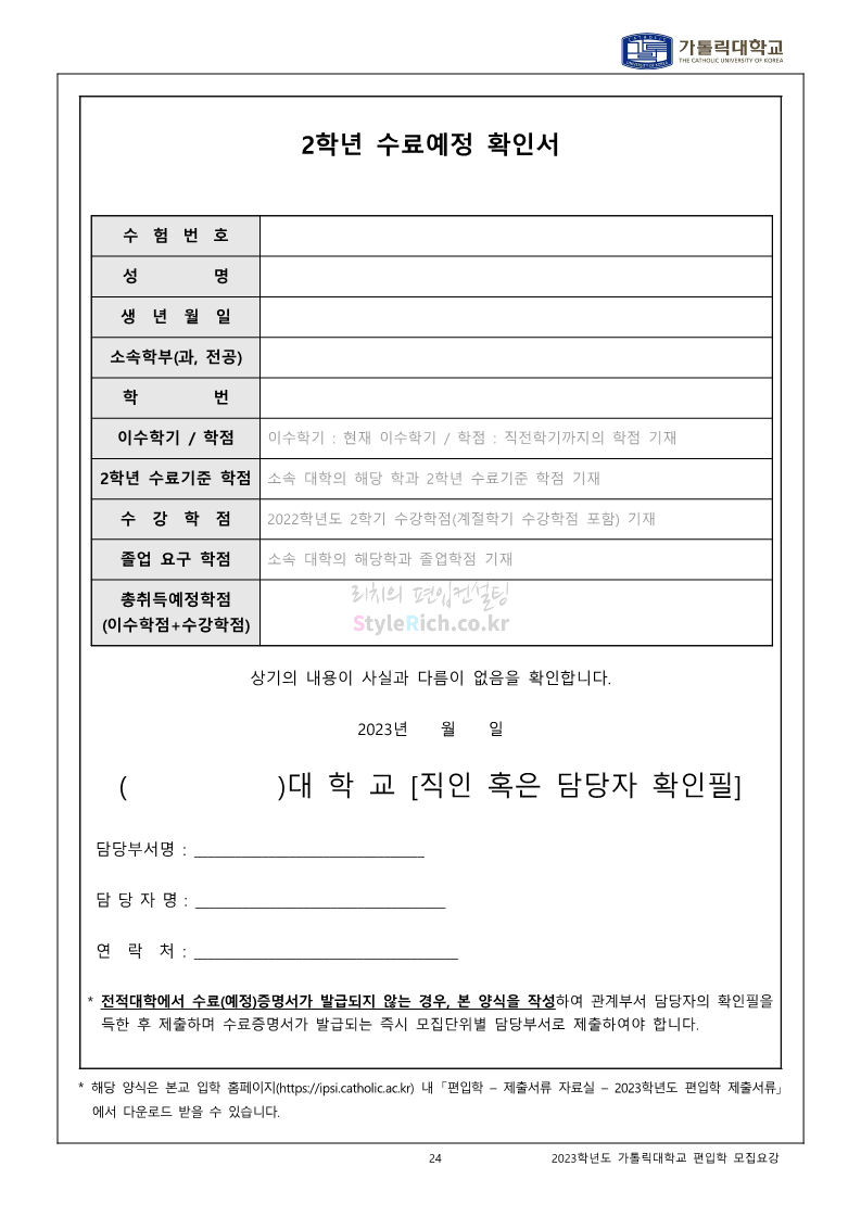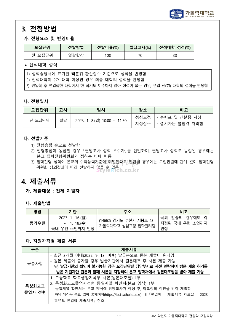 가톨릭대 편입 2023학년도 모집요강 간편하게 보자! 2022.12.02 00:10 편입 모집요강/2023학년도 모집요강 2023학년도 가톨릭대 편입 모집요강(2022.12.01 기준)을 간편하게 확인하세요. * 최종 모집요강 발표 이후에도 내용의 일부가 변경될 수 있으니 지원 전 반드시 가톨릭대 입학처를 확인 바랍니다. 가톨릭대 편입 최신 모집요강 확인하기 <출처: 가톨릭대> 공유하기 게시글 관리 리치의 편입컨설팅 저작자표시 비영리 변경금지 (새창열림) '편입 모집요강 > 2023학년도 모집요강' 카테고리의 다른 글 숭실대 편입 2023학년도 모집요강 간편하게 보자! (0) 2022.12.02 세종대 편입 2023학년도 모집요강 간편하게 보자! (0) 2022.12.02 안양대 편입 2023학년도 모집요강 간편하게 보자! (0) 2022.12.01 한국공학대 편입 2023학년도 모집요강 간편하게 보자! (0) 2022.12.01 고려대 편입 2023학년도 모집요강 간편하게 보자! (0) 2022.12.01 댓글 공유하기 다른 글 댓글 이 글 공유하기 구독하기 구독하기 카카오톡 카카오톡 라인 라인 트위터 트위터 Facebook Facebook 카카오스토리 카카오스토리 밴드 밴드 네이버 블로그 네이버 블로그 Pocket Pocket Evernote Evernote 다른 글 숭실대 편입 2023학년도 모집요강 간편하게 보자! 숭실대 편입 2023학년도 모집요강 간편하게 보자! 2022.12.02 세종대 편입 2023학년도 모집요강 간편하게 보자! 세종대 편입 2023학년도 모집요강 간편하게 보자! 2022.12.02 안양대 편입 2023학년도 모집요강 간편하게 보자! 안양대 편입 2023학년도 모집요강 간편하게 보자! 2022.12.01 한국공학대 편입 2023학년도 모집요강 간편하게 보자! 한국공학대 편입 2023학년도 모집요강 간편하게 보자! 2022.12.01 다른 글 더 둘러보기