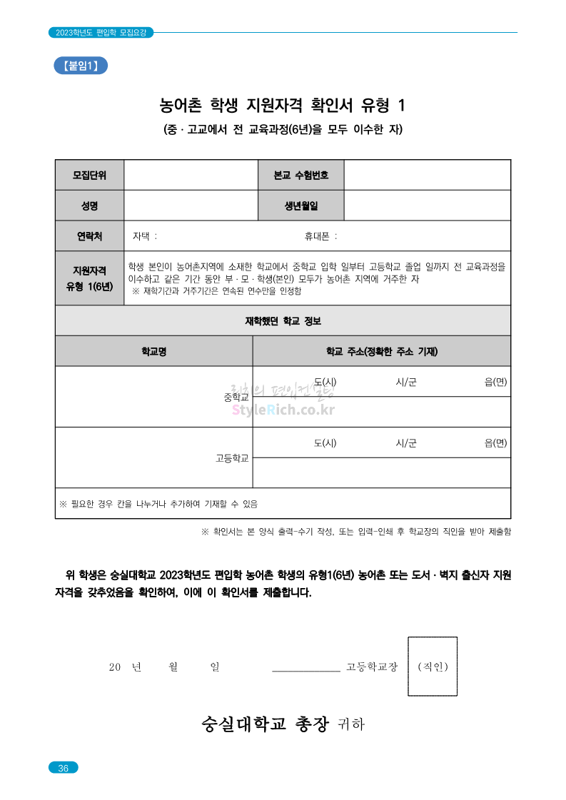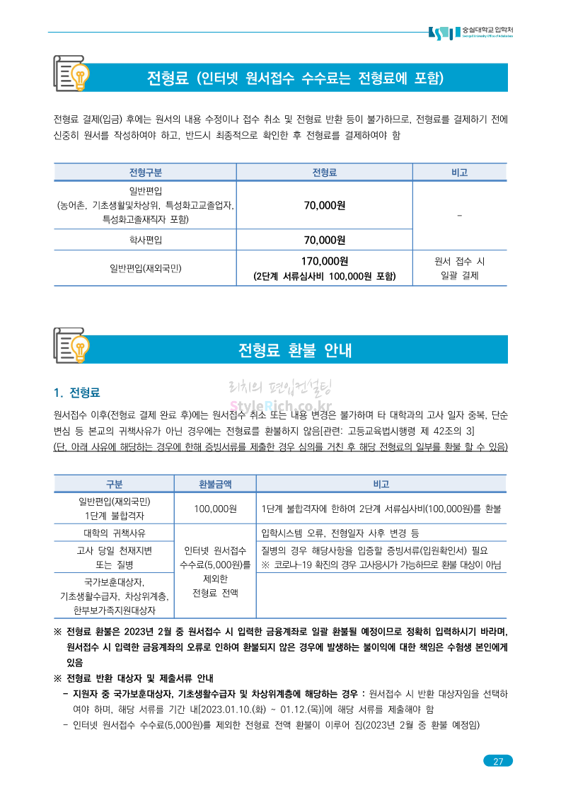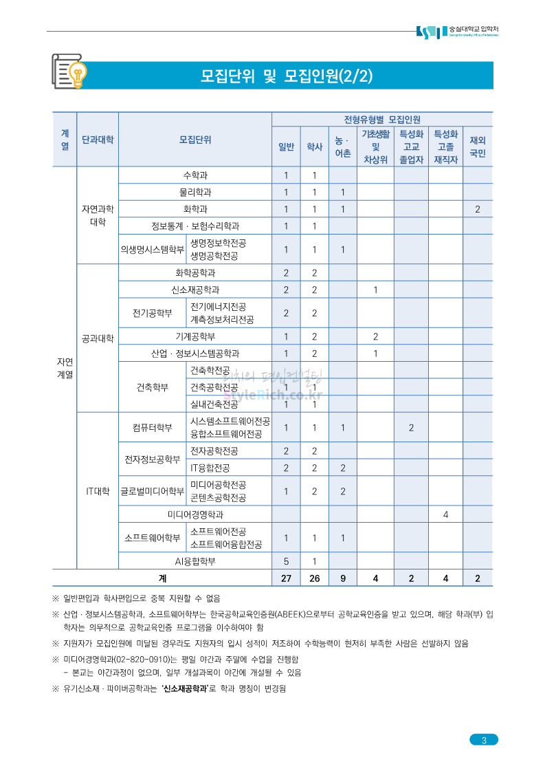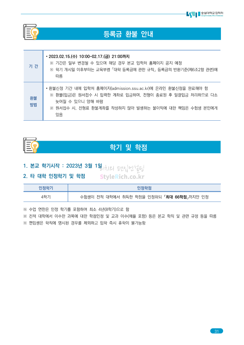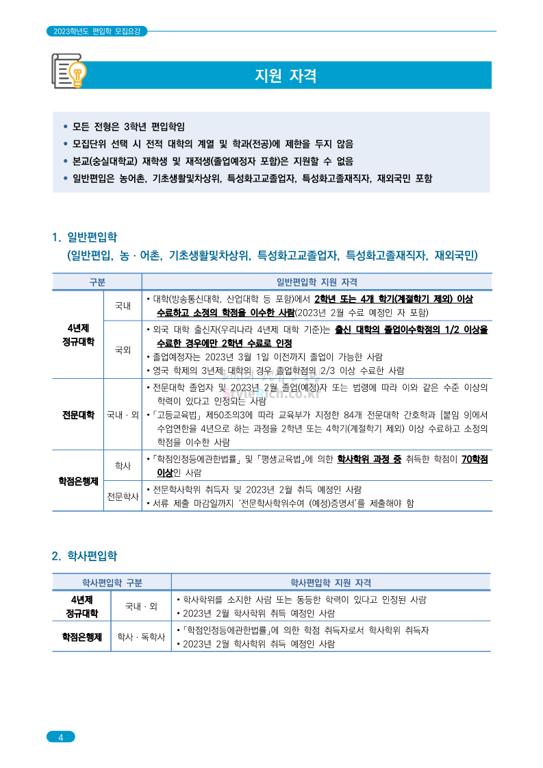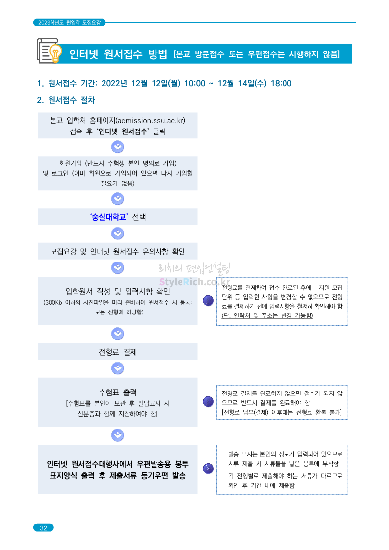숭실대 편입 2023학년도 모집요강 간편하게 보자! 2022.12.02 01:35 편입 모집요강/2023학년도 모집요강 2023학년도 숭실대 편입 모집요강(2022.12.01 기준)을 간편하게 확인하세요. * 최종 모집요강 발표 이후에도 내용의 일부가 변경될 수 있으니 지원 전 반드시 숭실대 입학처를 확인 바랍니다. 숭실대 편입 최신 모집요강 확인하기 <출처: 숭실대> 공유하기 게시글 관리 리치의 편입컨설팅 저작자표시 비영리 변경금지 (새창열림) '편입 모집요강 > 2023학년도 모집요강' 카테고리의 다른 글 경기대 편입 2023학년도 모집요강 간편하게 보자! (0) 2022.12.03 용인대 편입 2023학년도 모집요강 간편하게 보자! (0) 2022.12.02 세종대 편입 2023학년도 모집요강 간편하게 보자! (0) 2022.12.02 가톨릭대 편입 2023학년도 모집요강 간편하게 보자! (0) 2022.12.02 안양대 편입 2023학년도 모집요강 간편하게 보자! (0) 2022.12.01 댓글 공유하기 다른 글 댓글 이 글 공유하기 구독하기 구독하기 카카오톡 카카오톡 라인 라인 트위터 트위터 Facebook Facebook 카카오스토리 카카오스토리 밴드 밴드 네이버 블로그 네이버 블로그 Pocket Pocket Evernote Evernote 다른 글 경기대 편입 2023학년도 모집요강 간편하게 보자! 경기대 편입 2023학년도 모집요강 간편하게 보자! 2022.12.03 용인대 편입 2023학년도 모집요강 간편하게 보자! 용인대 편입 2023학년도 모집요강 간편하게 보자! 2022.12.02 세종대 편입 2023학년도 모집요강 간편하게 보자! 세종대 편입 2023학년도 모집요강 간편하게 보자! 2022.12.02 가톨릭대 편입 2023학년도 모집요강 간편하게 보자! 가톨릭대 편입 2023학년도 모집요강 간편하게 보자! 2022.12.02 다른 글 더 둘러보기