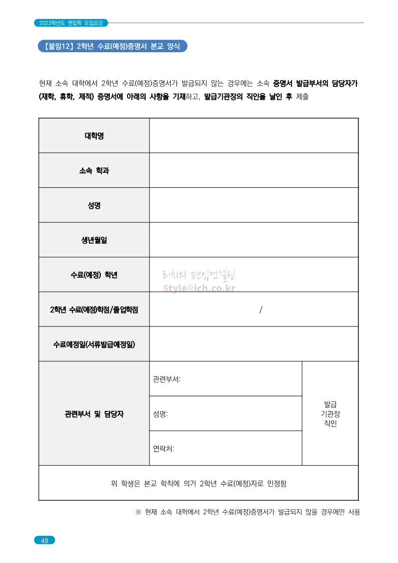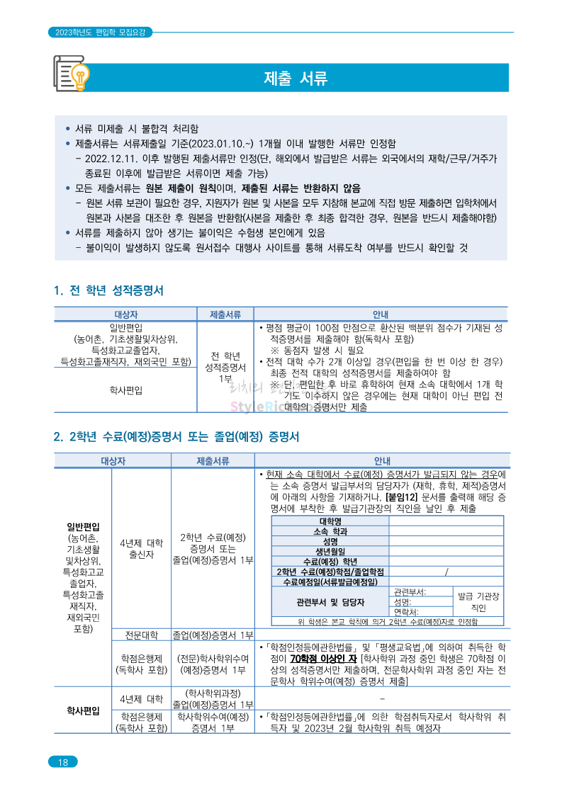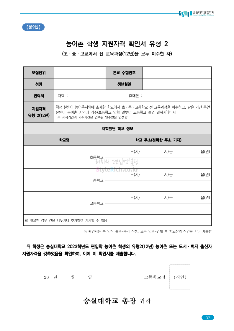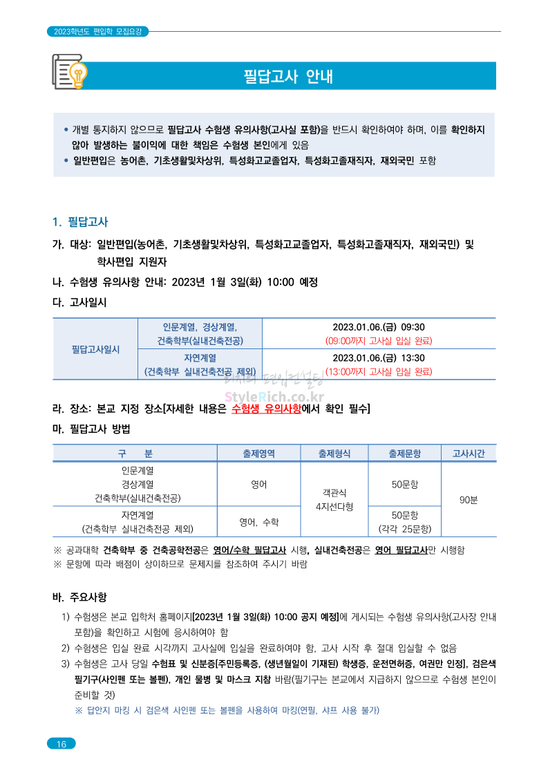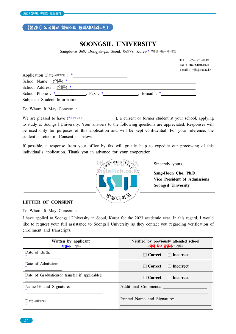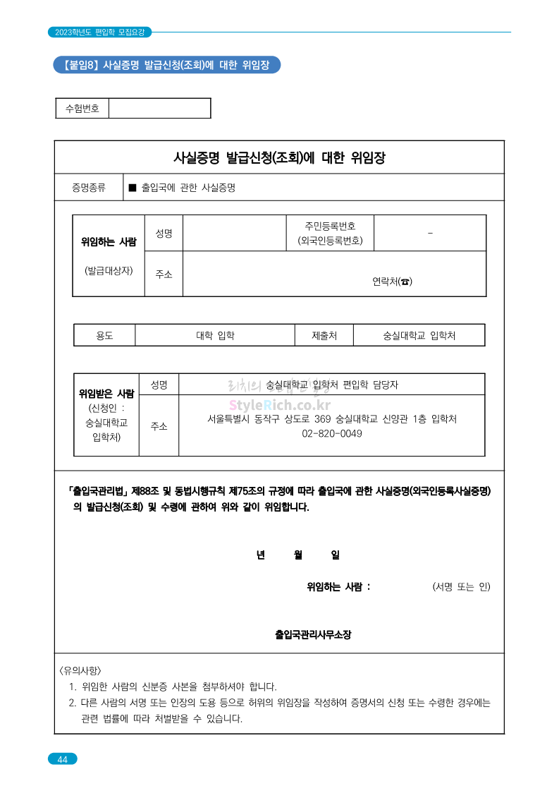 숭실대 편입 2023학년도 모집요강 간편하게 보자! 2022.12.02 01:35 편입 모집요강/2023학년도 모집요강 2023학년도 숭실대 편입 모집요강(2022.12.01 기준)을 간편하게 확인하세요. * 최종 모집요강 발표 이후에도 내용의 일부가 변경될 수 있으니 지원 전 반드시 숭실대 입학처를 확인 바랍니다. 숭실대 편입 최신 모집요강 확인하기 <출처: 숭실대> 공유하기 게시글 관리 리치의 편입컨설팅 저작자표시 비영리 변경금지 (새창열림) '편입 모집요강 > 2023학년도 모집요강' 카테고리의 다른 글 경기대 편입 2023학년도 모집요강 간편하게 보자! (0) 2022.12.03 용인대 편입 2023학년도 모집요강 간편하게 보자! (0) 2022.12.02 세종대 편입 2023학년도 모집요강 간편하게 보자! (0) 2022.12.02 가톨릭대 편입 2023학년도 모집요강 간편하게 보자! (0) 2022.12.02 안양대 편입 2023학년도 모집요강 간편하게 보자! (0) 2022.12.01 댓글 공유하기 다른 글 댓글 이 글 공유하기 구독하기 구독하기 카카오톡 카카오톡 라인 라인 트위터 트위터 Facebook Facebook 카카오스토리 카카오스토리 밴드 밴드 네이버 블로그 네이버 블로그 Pocket Pocket Evernote Evernote 다른 글 경기대 편입 2023학년도 모집요강 간편하게 보자! 경기대 편입 2023학년도 모집요강 간편하게 보자! 2022.12.03 용인대 편입 2023학년도 모집요강 간편하게 보자! 용인대 편입 2023학년도 모집요강 간편하게 보자! 2022.12.02 세종대 편입 2023학년도 모집요강 간편하게 보자! 세종대 편입 2023학년도 모집요강 간편하게 보자! 2022.12.02 가톨릭대 편입 2023학년도 모집요강 간편하게 보자! 가톨릭대 편입 2023학년도 모집요강 간편하게 보자! 2022.12.02 다른 글 더 둘러보기