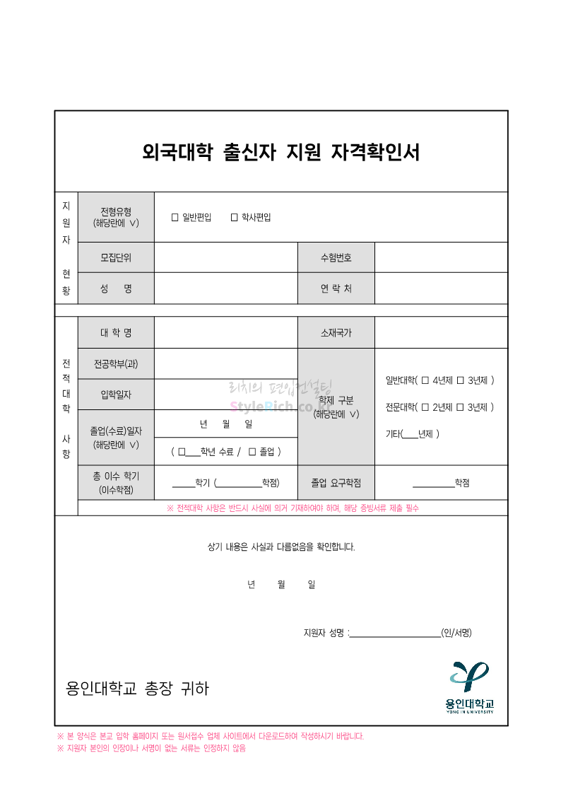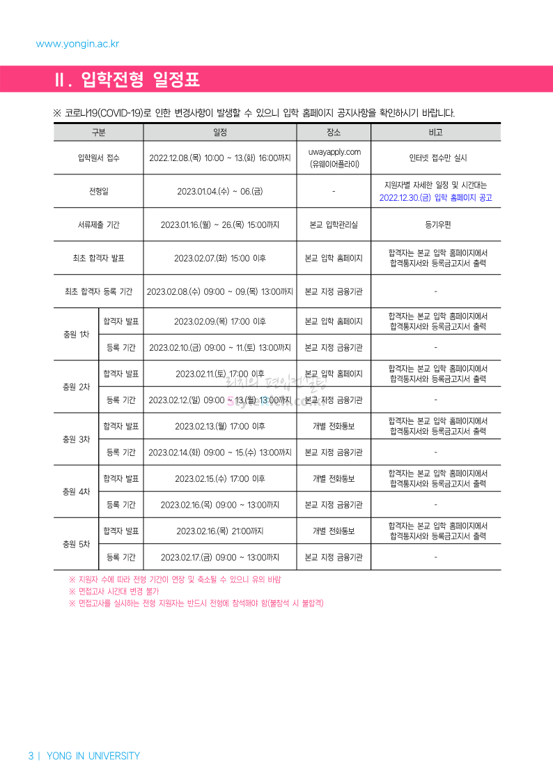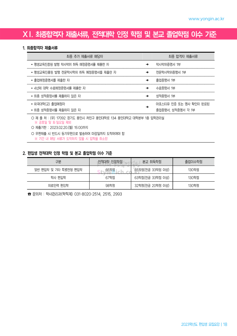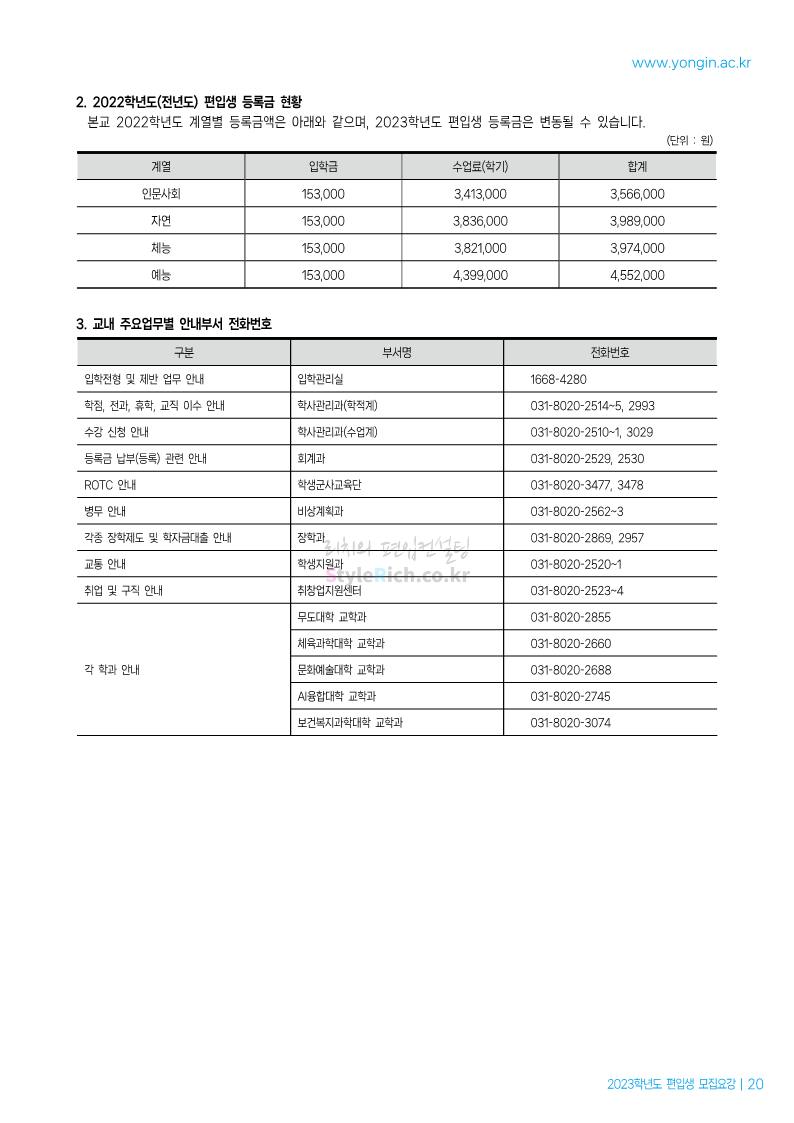 용인대 편입 2023학년도 모집요강 간편하게 보자! 2022.12.02 02:02 편입 모집요강/2023학년도 모집요강 2023학년도 용인대 편입 모집요강(2022.12.01 기준)을 간편하게 확인하세요. * 최종 모집요강 발표 이후에도 내용의 일부가 변경될 수 있으니 지원 전 반드시 용인대 입학처를 확인 바랍니다. 용인대 편입 최신 모집요강 확인하기 <출처: 용인대> 공유하기 게시글 관리 리치의 편입컨설팅 저작자표시 비영리 변경금지 (새창열림) '편입 모집요강 > 2023학년도 모집요강' 카테고리의 다른 글 아주대 편입 2023학년도 모집요강 간편하게 보자! (0) 2022.12.03 경기대 편입 2023학년도 모집요강 간편하게 보자! (0) 2022.12.03 숭실대 편입 2023학년도 모집요강 간편하게 보자! (0) 2022.12.02 세종대 편입 2023학년도 모집요강 간편하게 보자! (0) 2022.12.02 가톨릭대 편입 2023학년도 모집요강 간편하게 보자! (0) 2022.12.02 댓글 공유하기 다른 글 댓글 이 글 공유하기 구독하기 구독하기 카카오톡 카카오톡 라인 라인 트위터 트위터 Facebook Facebook 카카오스토리 카카오스토리 밴드 밴드 네이버 블로그 네이버 블로그 Pocket Pocket Evernote Evernote 다른 글 아주대 편입 2023학년도 모집요강 간편하게 보자! 아주대 편입 2023학년도 모집요강 간편하게 보자! 2022.12.03 경기대 편입 2023학년도 모집요강 간편하게 보자! 경기대 편입 2023학년도 모집요강 간편하게 보자! 2022.12.03 숭실대 편입 2023학년도 모집요강 간편하게 보자! 숭실대 편입 2023학년도 모집요강 간편하게 보자! 2022.12.02 세종대 편입 2023학년도 모집요강 간편하게 보자! 세종대 편입 2023학년도 모집요강 간편하게 보자! 2022.12.02 다른 글 더 둘러보기