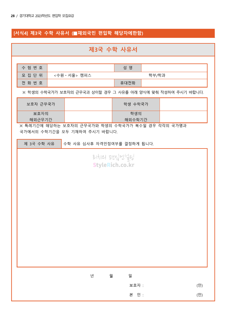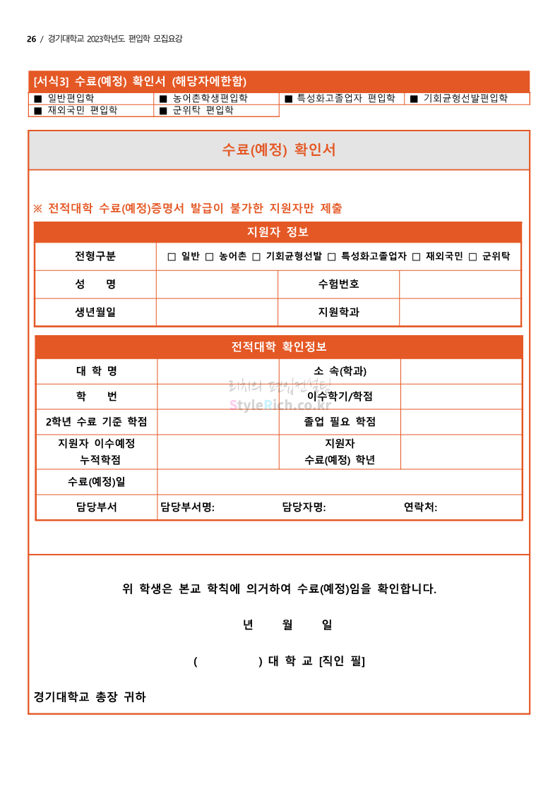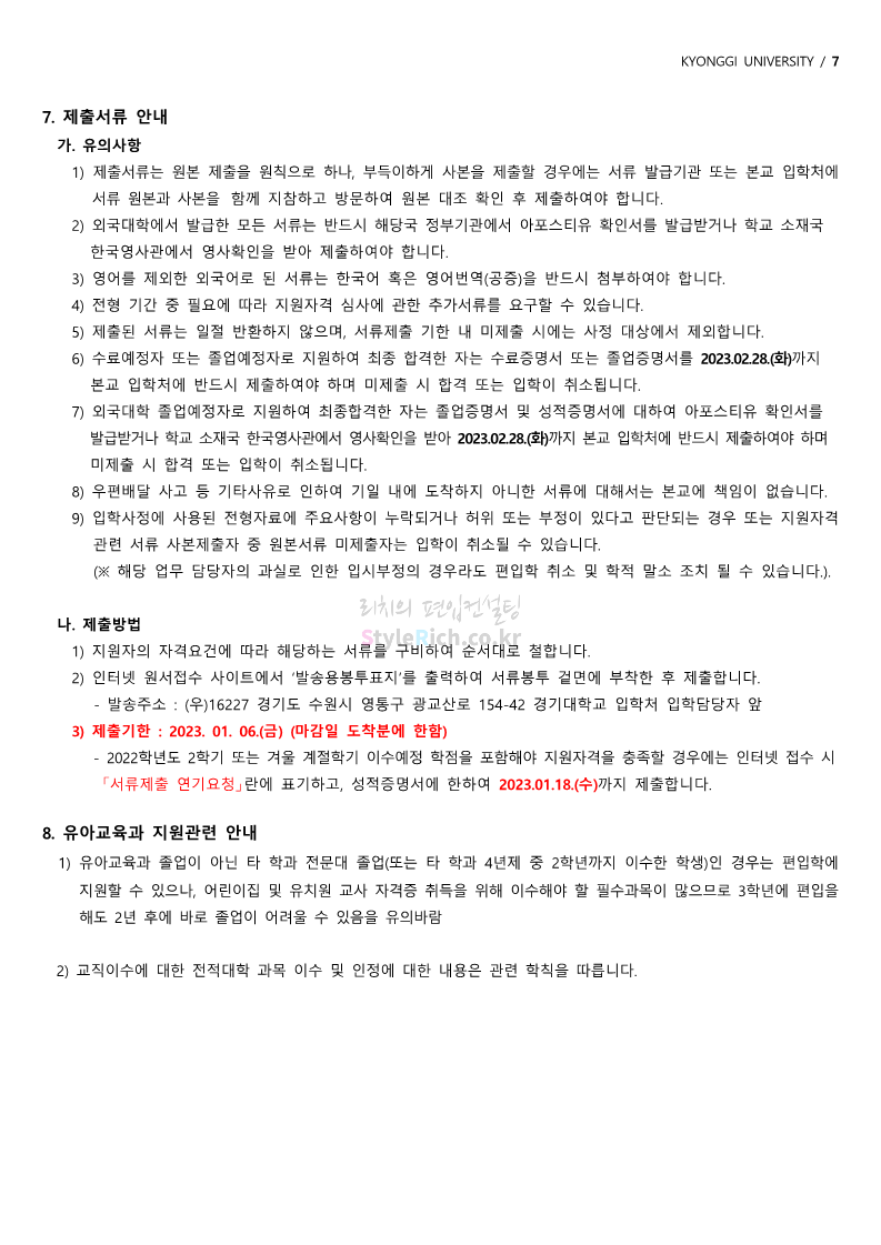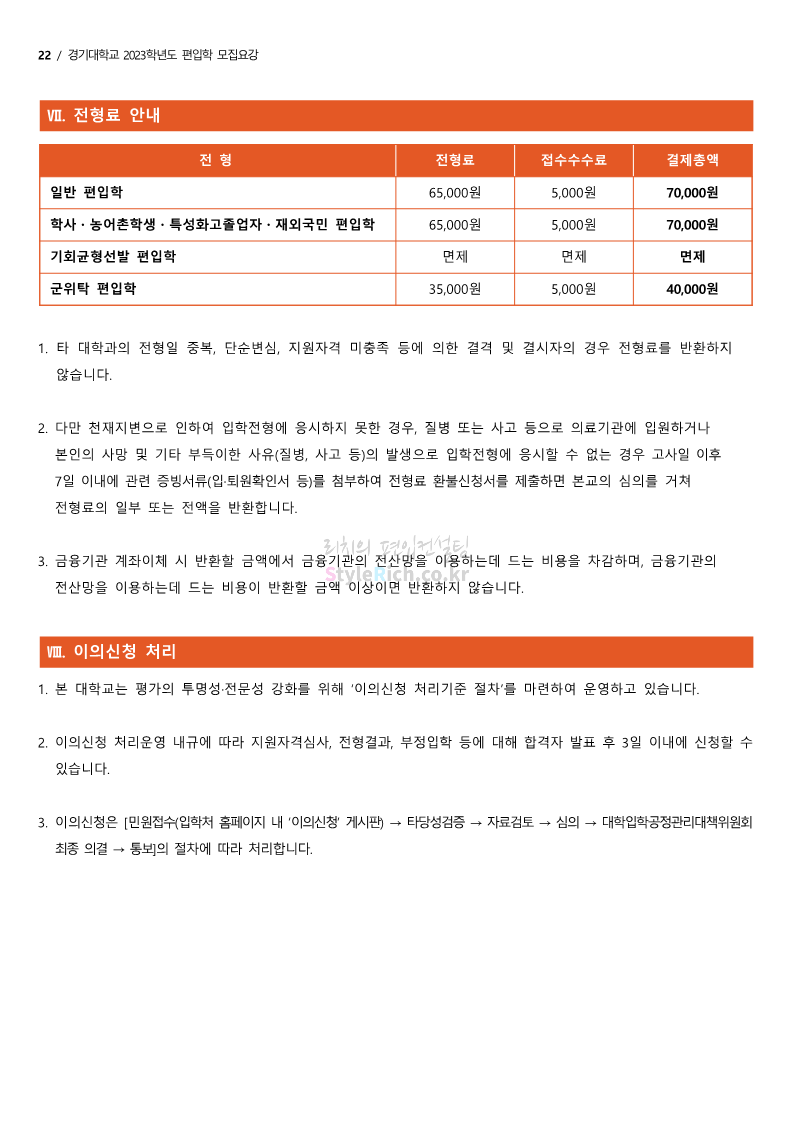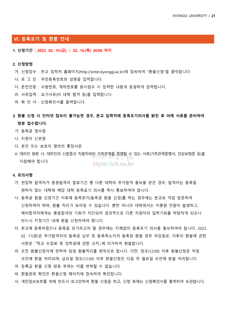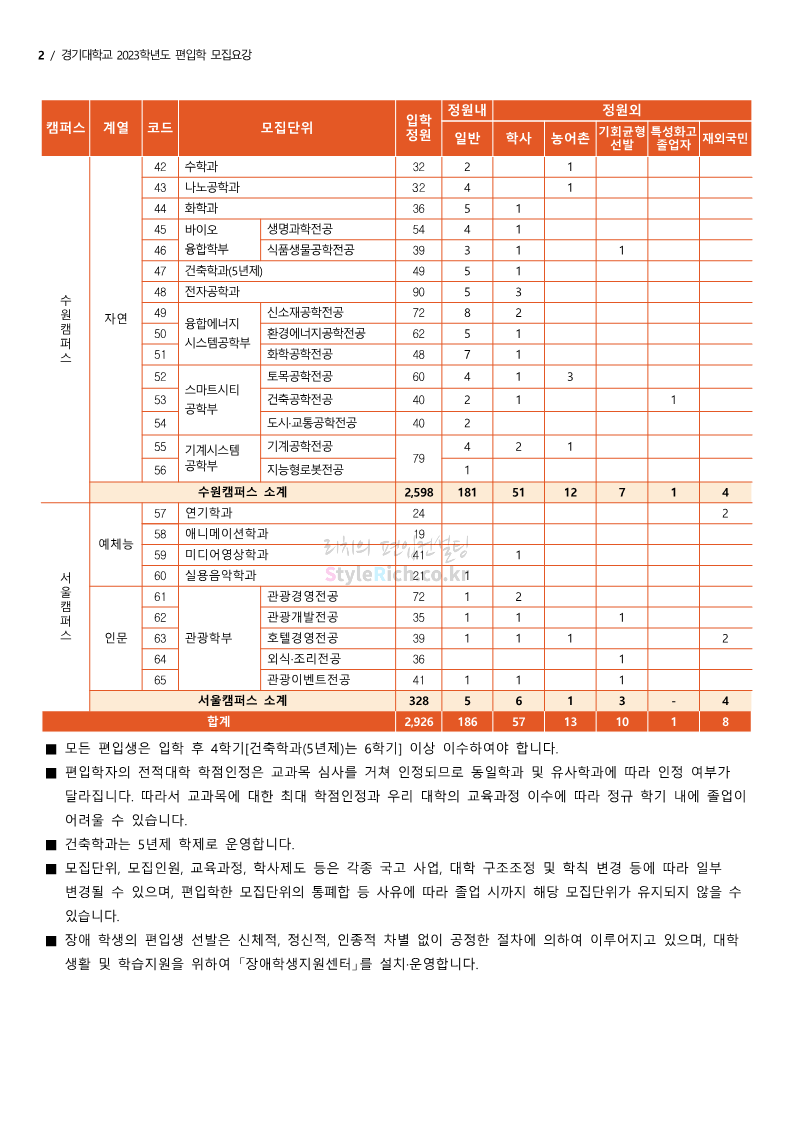 경기대 편입 2023학년도 모집요강 간편하게 보자! 2022.12.03 08:41 편입 모집요강/2023학년도 모집요강 2023학년도 경기대 편입 모집요강(2022.12.02 기준)을 간편하게 확인하세요. * 최종 모집요강 발표 이후에도 내용의 일부가 변경될 수 있으니 지원 전 반드시 경기대 입학처를 확인 바랍니다. 경기대 편입 최신 모집요강 확인하기 <출처: 경기대> 공유하기 게시글 관리 리치의 편입컨설팅 저작자표시 비영리 변경금지 (새창열림) '편입 모집요강 > 2023학년도 모집요강' 카테고리의 다른 글 이화여대 편입 2023학년도 모집요강 간편하게 보자! (0) 2022.12.03 아주대 편입 2023학년도 모집요강 간편하게 보자! (0) 2022.12.03 용인대 편입 2023학년도 모집요강 간편하게 보자! (0) 2022.12.02 숭실대 편입 2023학년도 모집요강 간편하게 보자! (0) 2022.12.02 세종대 편입 2023학년도 모집요강 간편하게 보자! (0) 2022.12.02 댓글 공유하기 다른 글 댓글 이 글 공유하기 구독하기 구독하기 카카오톡 카카오톡 라인 라인 트위터 트위터 Facebook Facebook 카카오스토리 카카오스토리 밴드 밴드 네이버 블로그 네이버 블로그 Pocket Pocket Evernote Evernote 다른 글 이화여대 편입 2023학년도 모집요강 간편하게 보자! 이화여대 편입 2023학년도 모집요강 간편하게 보자! 2022.12.03 아주대 편입 2023학년도 모집요강 간편하게 보자! 아주대 편입 2023학년도 모집요강 간편하게 보자! 2022.12.03 용인대 편입 2023학년도 모집요강 간편하게 보자! 용인대 편입 2023학년도 모집요강 간편하게 보자! 2022.12.02 숭실대 편입 2023학년도 모집요강 간편하게 보자! 숭실대 편입 2023학년도 모집요강 간편하게 보자! 2022.12.02 다른 글 더 둘러보기