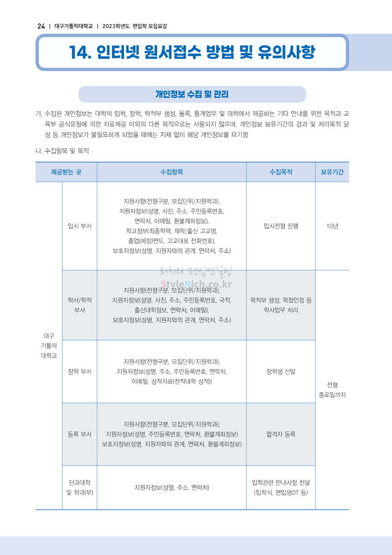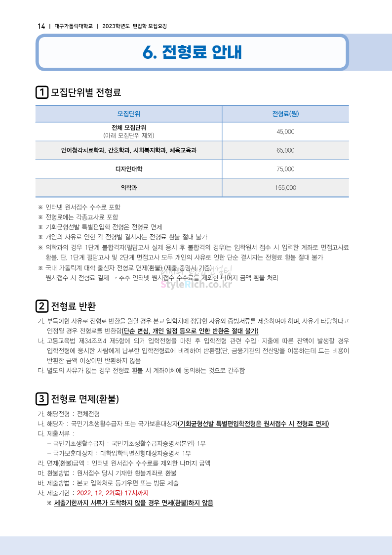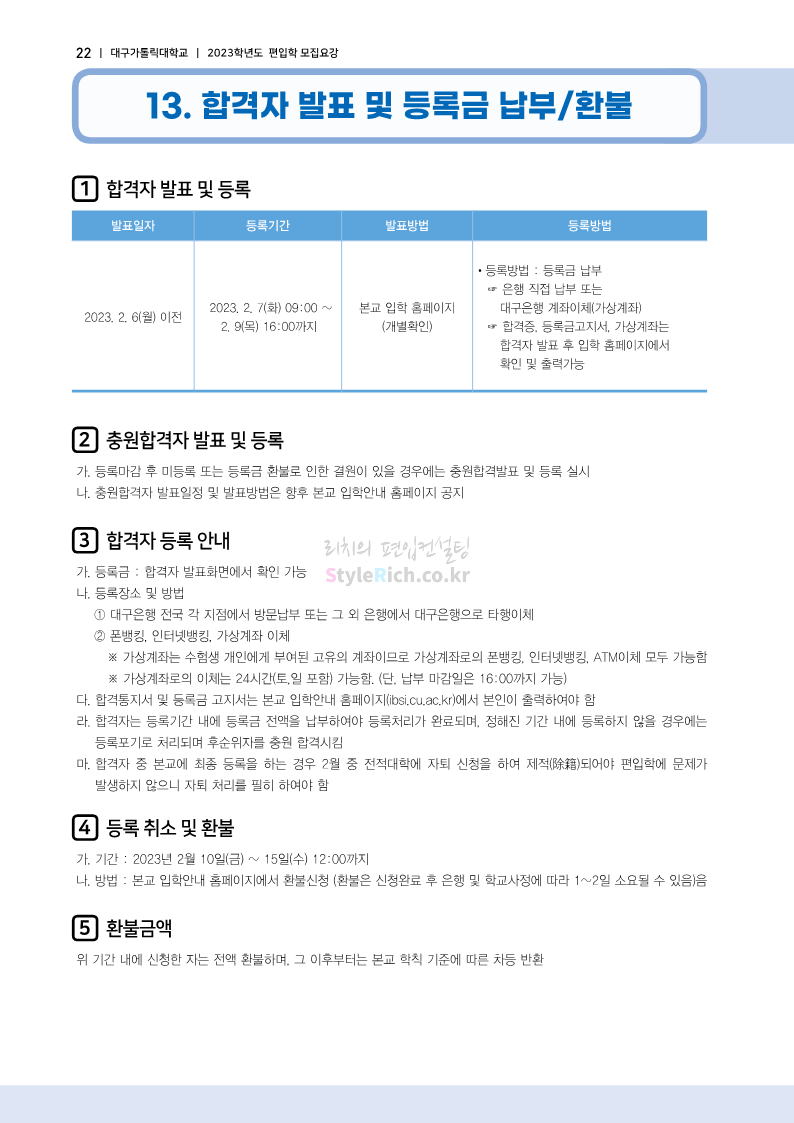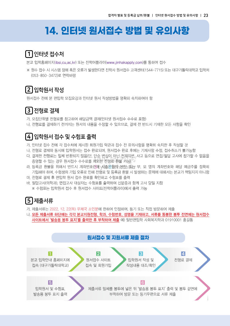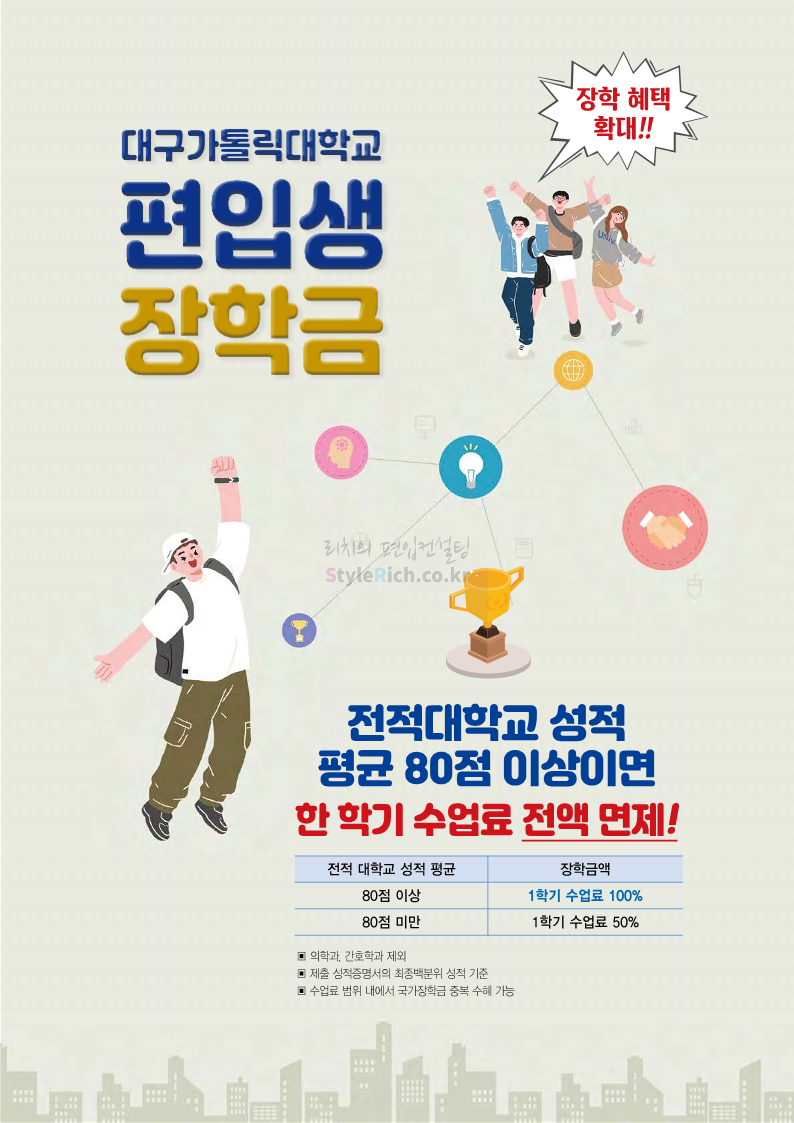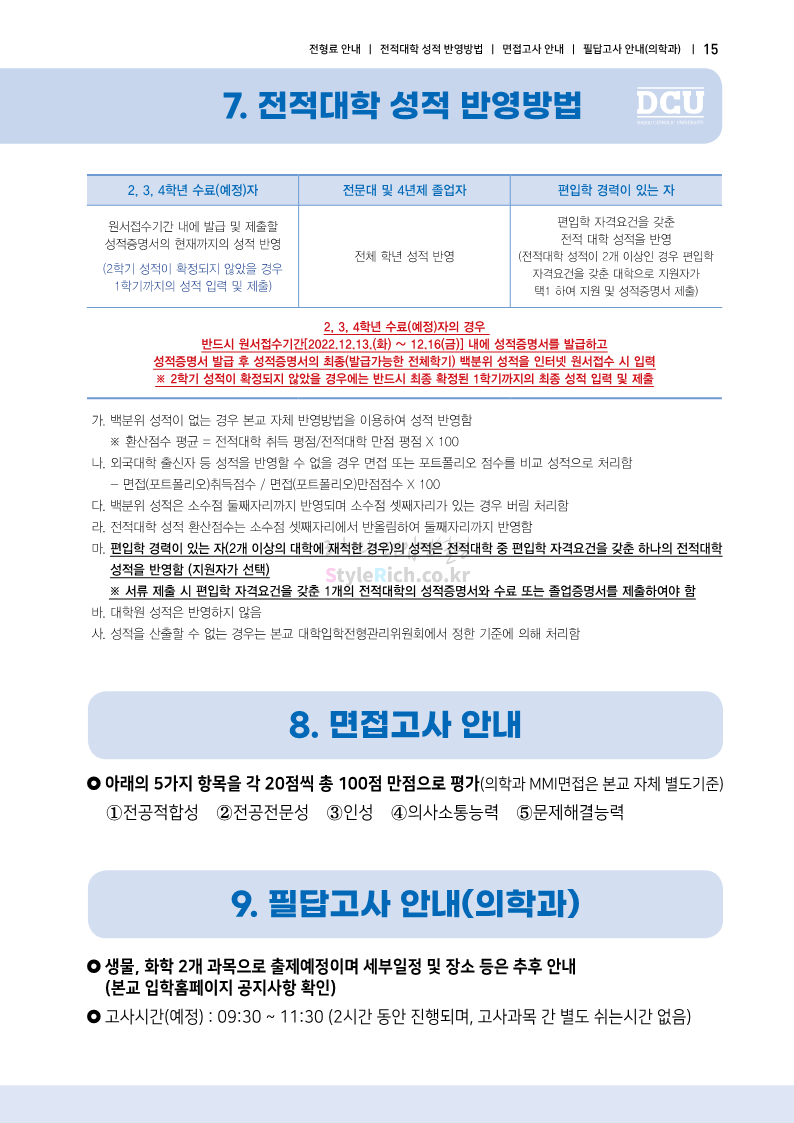 대구가톨릭대 편입 2023학년도 모집요강 간편하게 보자! 2022.12.03 15:58 편입 모집요강/2023학년도 모집요강 2023학년도 대구가톨릭대 편입 모집요강(2022.12.12 기준)을 간편하게 확인하세요. * 최종 모집요강 발표 이후에도 내용의 일부가 변경될 수 있으니 지원 전 반드시 대구가톨릭대 입학처에서 확인 바랍니다. 대구가톨릭대 편입 최신 모집요강 확인하기 <출처: 대구가톨릭대> 공유하기 게시글 관리 리치의 편입컨설팅 저작자표시 비영리 변경금지 (새창열림) '편입 모집요강 > 2023학년도 모집요강' 카테고리의 다른 글 중앙대 편입 2023학년도 모집요강 간편하게 보자! (0) 2022.12.05 숙명여대 편입 2023학년도 모집요강 간편하게 보자! (0) 2022.12.05 인하대 편입 2023학년도 모집요강 간편하게 보자! (0) 2022.12.03 이화여대 편입 2023학년도 모집요강 간편하게 보자! (0) 2022.12.03 아주대 편입 2023학년도 모집요강 간편하게 보자! (0) 2022.12.03 댓글 공유하기 다른 글 댓글 이 글 공유하기 구독하기 구독하기 카카오톡 카카오톡 라인 라인 트위터 트위터 Facebook Facebook 카카오스토리 카카오스토리 밴드 밴드 네이버 블로그 네이버 블로그 Pocket Pocket Evernote Evernote 다른 글 중앙대 편입 2023학년도 모집요강 간편하게 보자! 중앙대 편입 2023학년도 모집요강 간편하게 보자! 2022.12.05 숙명여대 편입 2023학년도 모집요강 간편하게 보자! 숙명여대 편입 2023학년도 모집요강 간편하게 보자! 2022.12.05 인하대 편입 2023학년도 모집요강 간편하게 보자! 인하대 편입 2023학년도 모집요강 간편하게 보자! 2022.12.03 이화여대 편입 2023학년도 모집요강 간편하게 보자! 이화여대 편입 2023학년도 모집요강 간편하게 보자! 2022.12.03 다른 글 더 둘러보기
