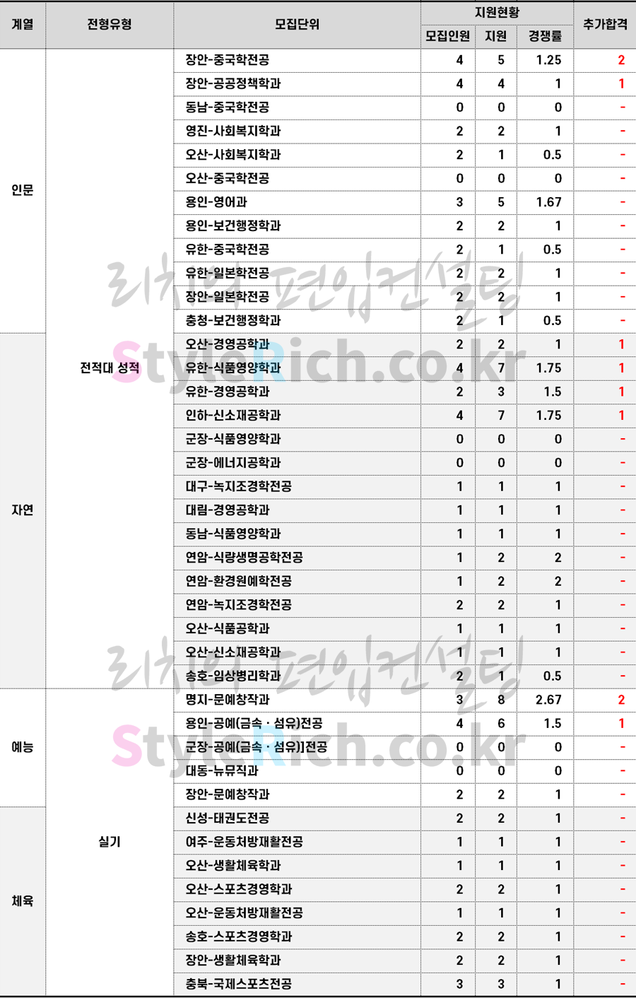 * 군위탁, 공무원위탁, 농어촌, 특성화고졸재직자는 추가합격이 없음