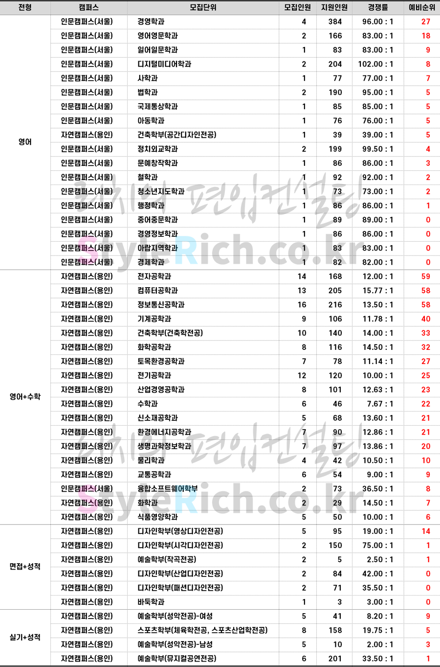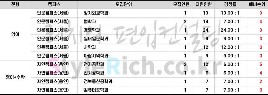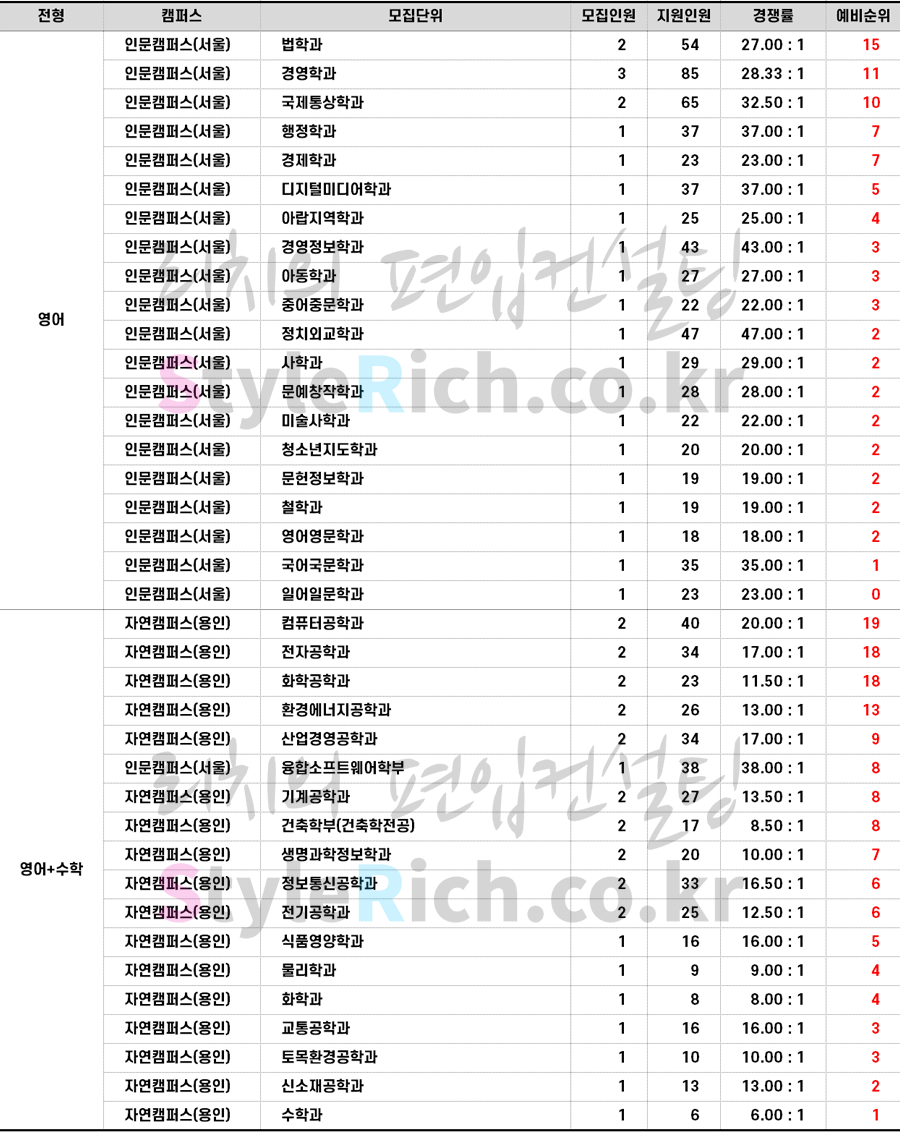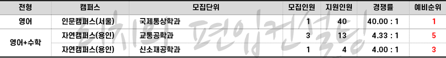 * 재외국민편입은 정원충족 및 미달로 추가합격 없음