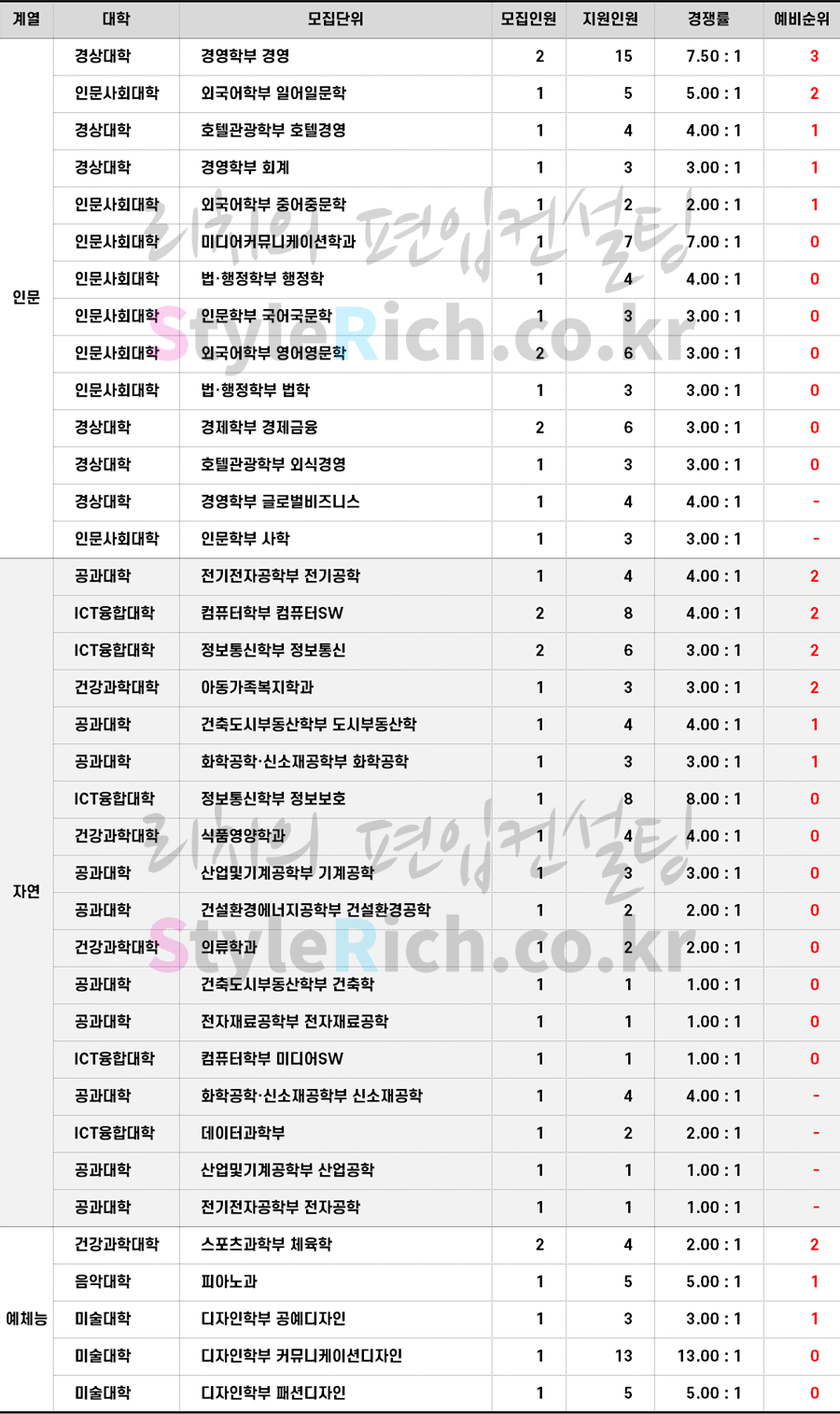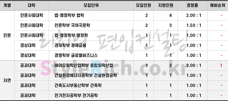 2022학년도 수원대 농어촌학생편입 추가합격 현황