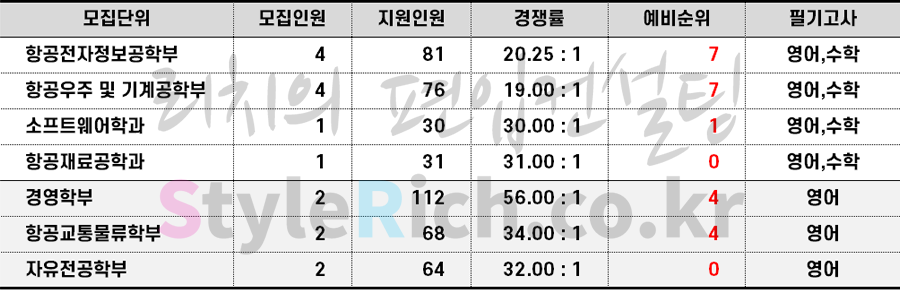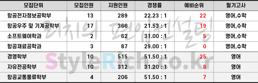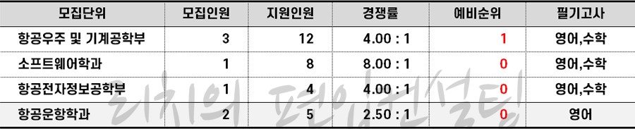 2022학년도 한국항공대 일반편입 추가합격 현황