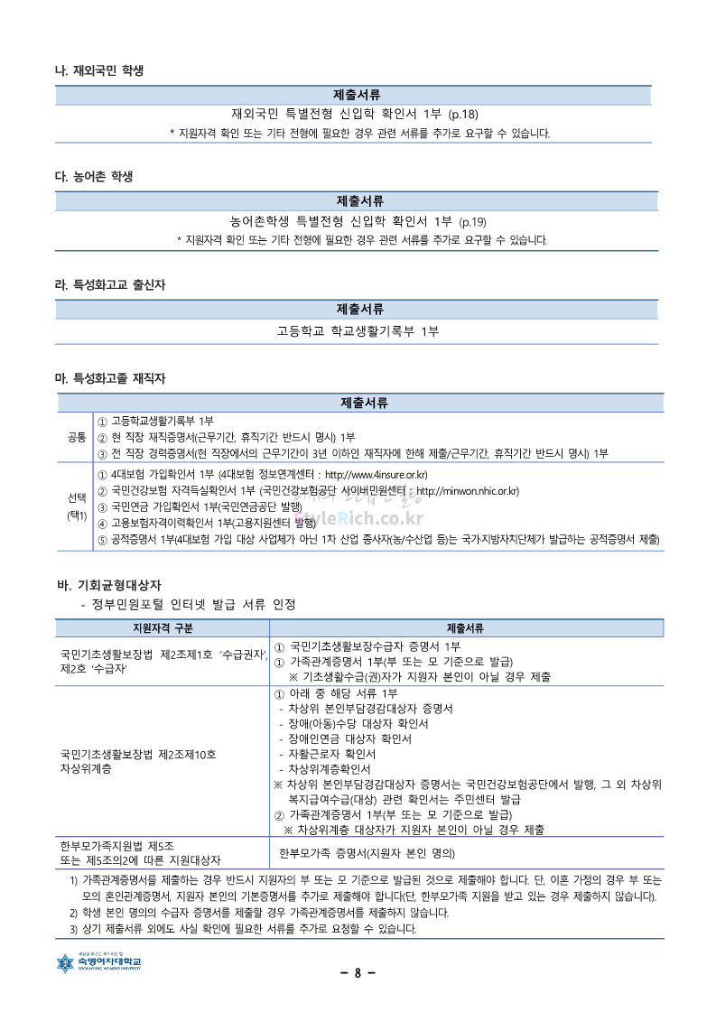 숙명여대 편입 2023학년도 모집요강 간편하게 보자! 2022.12.05 23:29 편입 모집요강/2023학년도 모집요강 2023학년도 숙명여대 편입 모집요강(2022.12.05 기준)을 간편하게 확인하세요. * 최종 모집요강 발표 이후에도 내용의 일부가 변경될 수 있으니 지원 전 반드시 숙명여대 입학처에서 확인 바랍니다. 숙명여대 편입 최신 모집요강 확인하기 <출처: 숙명여대> 공유하기 게시글 관리 리치의 편입컨설팅 저작자표시 비영리 변경금지 (새창열림) '편입 모집요강 > 2023학년도 모집요강' 카테고리의 다른 글 홍익대 편입 2023학년도 모집요강 간편하게 보자! (0) 2022.12.05 중앙대 편입 2023학년도 모집요강 간편하게 보자! (0) 2022.12.05 대구가톨릭대 편입 2023학년도 모집요강 간편하게 보자! (0) 2022.12.03 인하대 편입 2023학년도 모집요강 간편하게 보자! (0) 2022.12.03 이화여대 편입 2023학년도 모집요강 간편하게 보자! (0) 2022.12.03 댓글 공유하기 다른 글 댓글 이 글 공유하기 구독하기 구독하기 카카오톡 카카오톡 라인 라인 트위터 트위터 Facebook Facebook 카카오스토리 카카오스토리 밴드 밴드 네이버 블로그 네이버 블로그 Pocket Pocket Evernote Evernote 다른 글 홍익대 편입 2023학년도 모집요강 간편하게 보자! 홍익대 편입 2023학년도 모집요강 간편하게 보자! 2022.12.05 중앙대 편입 2023학년도 모집요강 간편하게 보자! 중앙대 편입 2023학년도 모집요강 간편하게 보자! 2022.12.05 대구가톨릭대 편입 2023학년도 모집요강 간편하게 보자! 대구가톨릭대 편입 2023학년도 모집요강 간편하게 보자! 2022.12.03 인하대 편입 2023학년도 모집요강 간편하게 보자! 인하대 편입 2023학년도 모집요강 간편하게 보자! 2022.12.03 다른 글 더 둘러보기