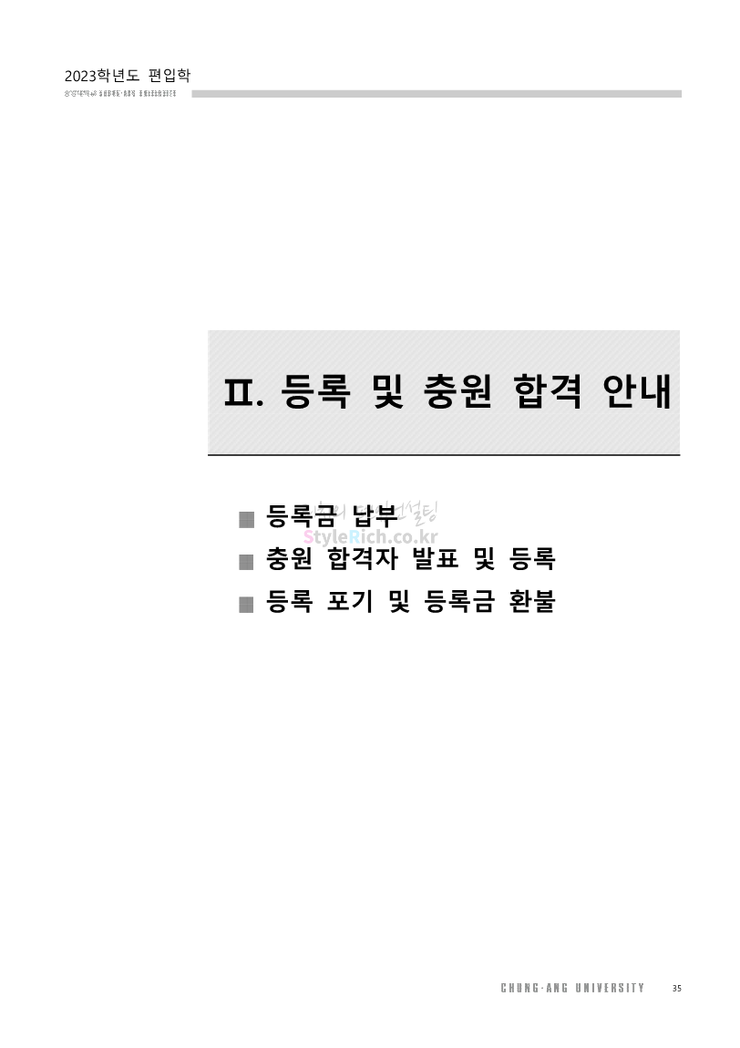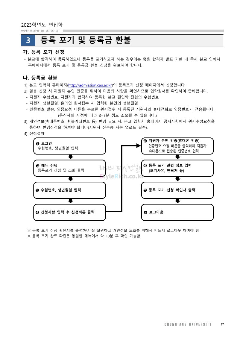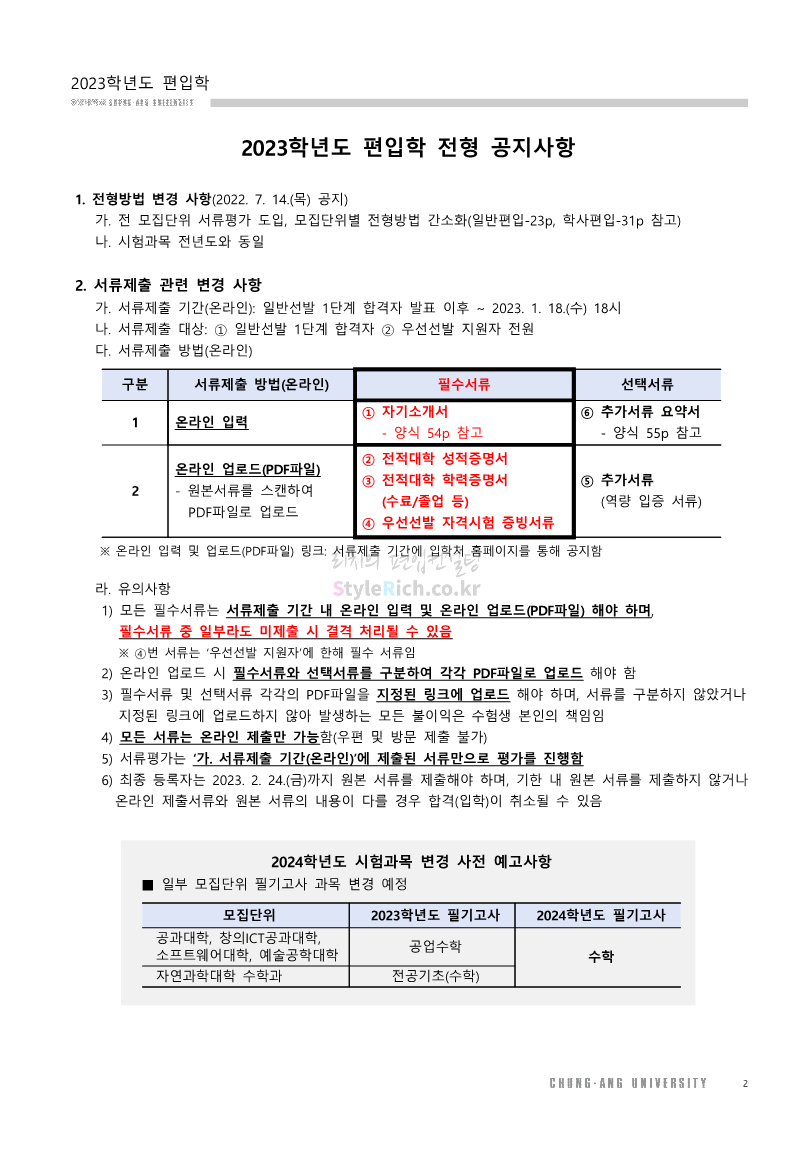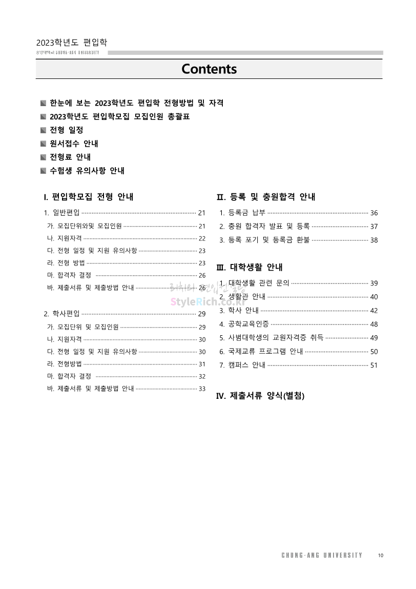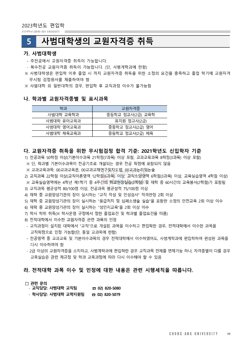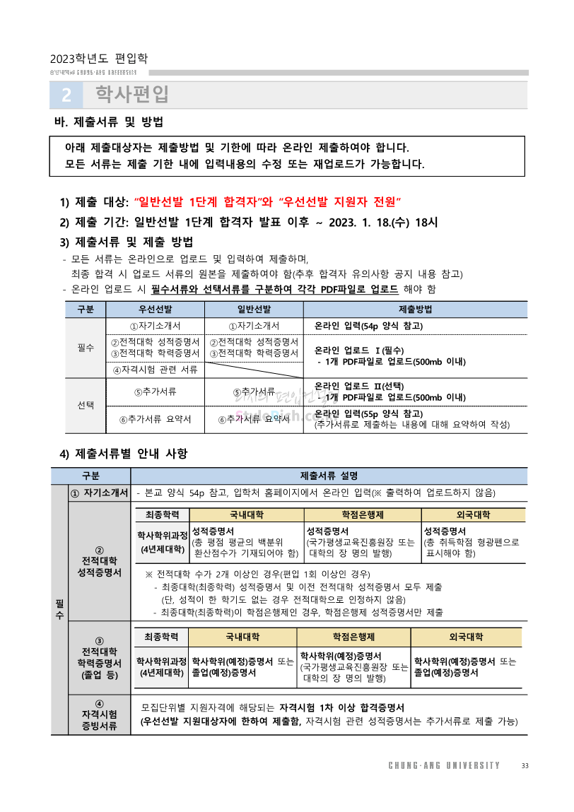 중앙대 편입 2023학년도 모집요강 간편하게 보자! 2022.12.05 23:45 편입 모집요강/2023학년도 모집요강 2023학년도 중앙대 편입 모집요강(2022.12.14 기준)을 간편하게 확인하세요. * 최종 모집요강 발표 이후에도 내용의 일부가 변경될 수 있으니 지원 전 반드시 중앙대 입학처에서 확인 바랍니다. 중앙대 편입 최신 모집요강 확인하기 <출처: 중앙대> 공유하기 게시글 관리 리치의 편입컨설팅 저작자표시 비영리 변경금지 (새창열림) '편입 모집요강 > 2023학년도 모집요강' 카테고리의 다른 글 경북대 편입 2023학년도 모집요강 간편하게 보자! (0) 2022.12.06 홍익대 편입 2023학년도 모집요강 간편하게 보자! (0) 2022.12.05 숙명여대 편입 2023학년도 모집요강 간편하게 보자! (0) 2022.12.05 대구가톨릭대 편입 2023학년도 모집요강 간편하게 보자! (0) 2022.12.03 인하대 편입 2023학년도 모집요강 간편하게 보자! (0) 2022.12.03 댓글 공유하기 다른 글 댓글 이 글 공유하기 구독하기 구독하기 카카오톡 카카오톡 라인 라인 트위터 트위터 Facebook Facebook 카카오스토리 카카오스토리 밴드 밴드 네이버 블로그 네이버 블로그 Pocket Pocket Evernote Evernote 다른 글 경북대 편입 2023학년도 모집요강 간편하게 보자! 경북대 편입 2023학년도 모집요강 간편하게 보자! 2022.12.06 홍익대 편입 2023학년도 모집요강 간편하게 보자! 홍익대 편입 2023학년도 모집요강 간편하게 보자! 2022.12.05 숙명여대 편입 2023학년도 모집요강 간편하게 보자! 숙명여대 편입 2023학년도 모집요강 간편하게 보자! 2022.12.05 대구가톨릭대 편입 2023학년도 모집요강 간편하게 보자! 대구가톨릭대 편입 2023학년도 모집요강 간편하게 보자! 2022.12.03 다른 글 더 둘러보기
