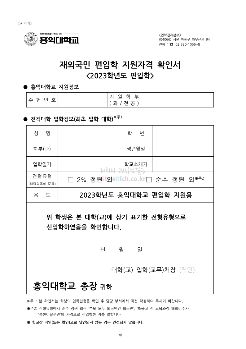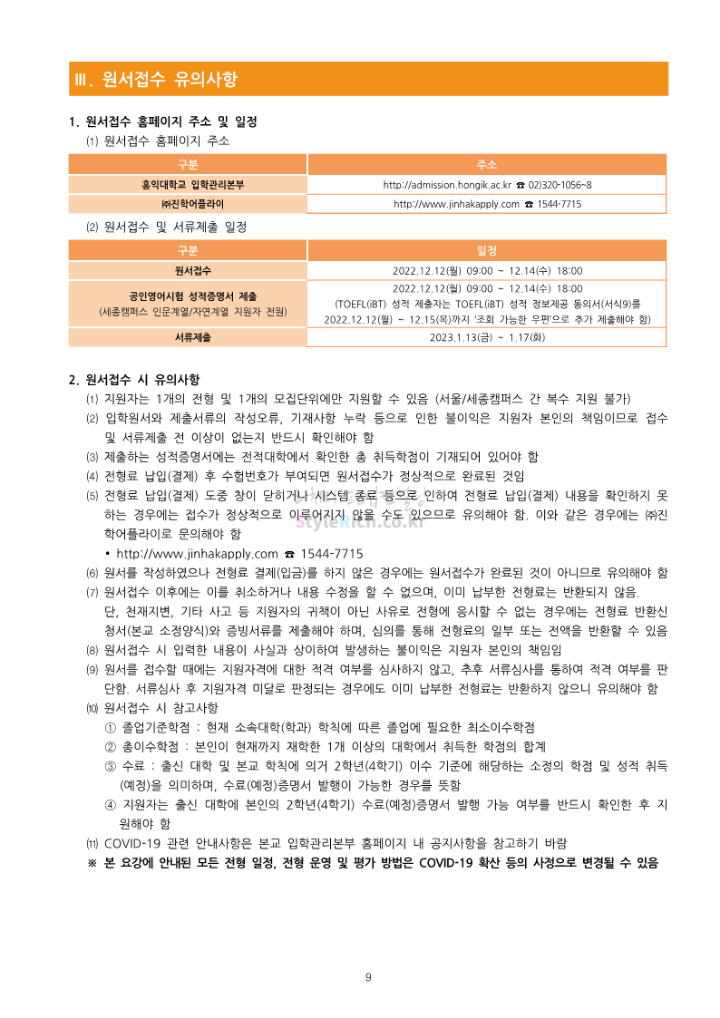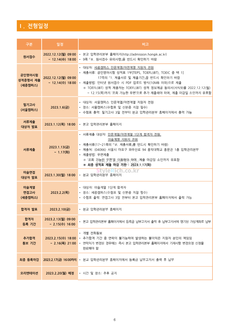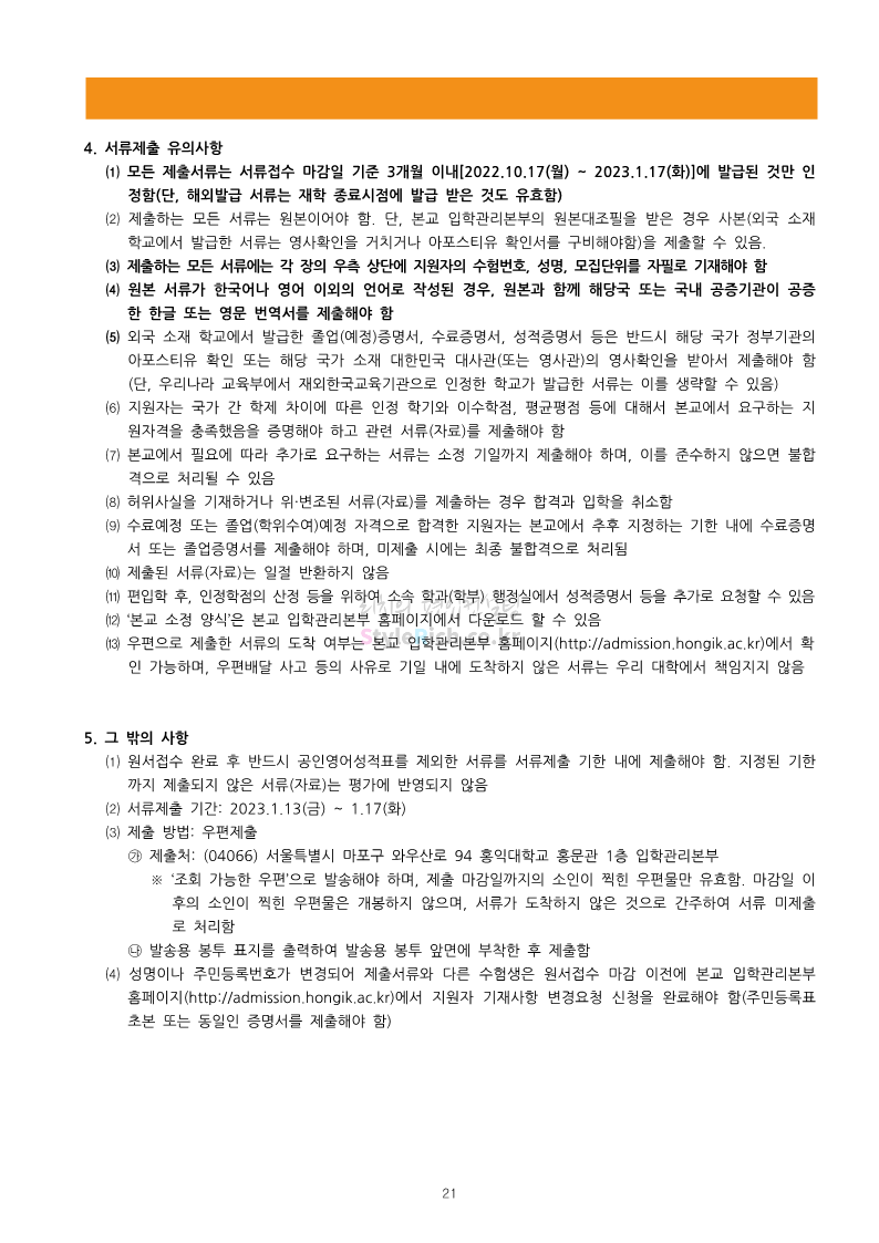 홍익대 편입 2023학년도 모집요강 간편하게 보자! 2022.12.05 23:58 편입 모집요강/2023학년도 모집요강 2023학년도 홍익대 편입 모집요강(2022.12.05 기준)을 간편하게 확인하세요. * 최종 모집요강 발표 이후에도 내용의 일부가 변경될 수 있으니 지원 전 반드시 홍익대 입학처에서 확인 바랍니다. 홍익대 편입 최신 모집요강 확인하기 <출처: 홍익대> 공유하기 게시글 관리 리치의 편입컨설팅 저작자표시 비영리 변경금지 (새창열림) '편입 모집요강 > 2023학년도 모집요강' 카테고리의 다른 글 원광대 편입 2023학년도 모집요강 간편하게 보자! (0) 2022.12.06 경북대 편입 2023학년도 모집요강 간편하게 보자! (0) 2022.12.06 중앙대 편입 2023학년도 모집요강 간편하게 보자! (0) 2022.12.05 숙명여대 편입 2023학년도 모집요강 간편하게 보자! (0) 2022.12.05 대구가톨릭대 편입 2023학년도 모집요강 간편하게 보자! (0) 2022.12.03 댓글 공유하기 다른 글 댓글 이 글 공유하기 구독하기 구독하기 카카오톡 카카오톡 라인 라인 트위터 트위터 Facebook Facebook 카카오스토리 카카오스토리 밴드 밴드 네이버 블로그 네이버 블로그 Pocket Pocket Evernote Evernote 다른 글 원광대 편입 2023학년도 모집요강 간편하게 보자! 원광대 편입 2023학년도 모집요강 간편하게 보자! 2022.12.06 경북대 편입 2023학년도 모집요강 간편하게 보자! 경북대 편입 2023학년도 모집요강 간편하게 보자! 2022.12.06 중앙대 편입 2023학년도 모집요강 간편하게 보자! 중앙대 편입 2023학년도 모집요강 간편하게 보자! 2022.12.05 숙명여대 편입 2023학년도 모집요강 간편하게 보자! 숙명여대 편입 2023학년도 모집요강 간편하게 보자! 2022.12.05 다른 글 더 둘러보기