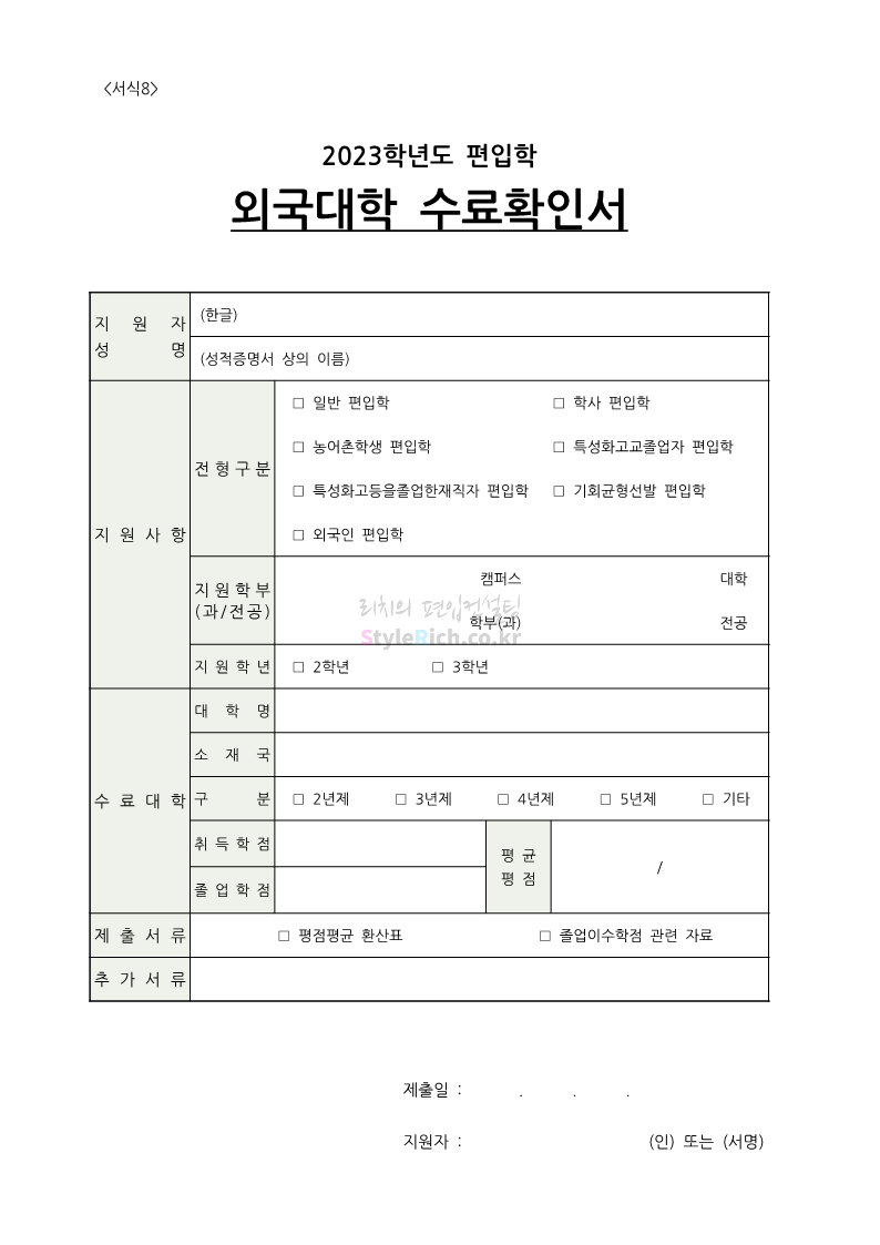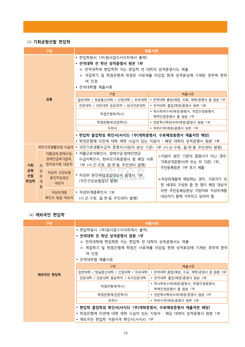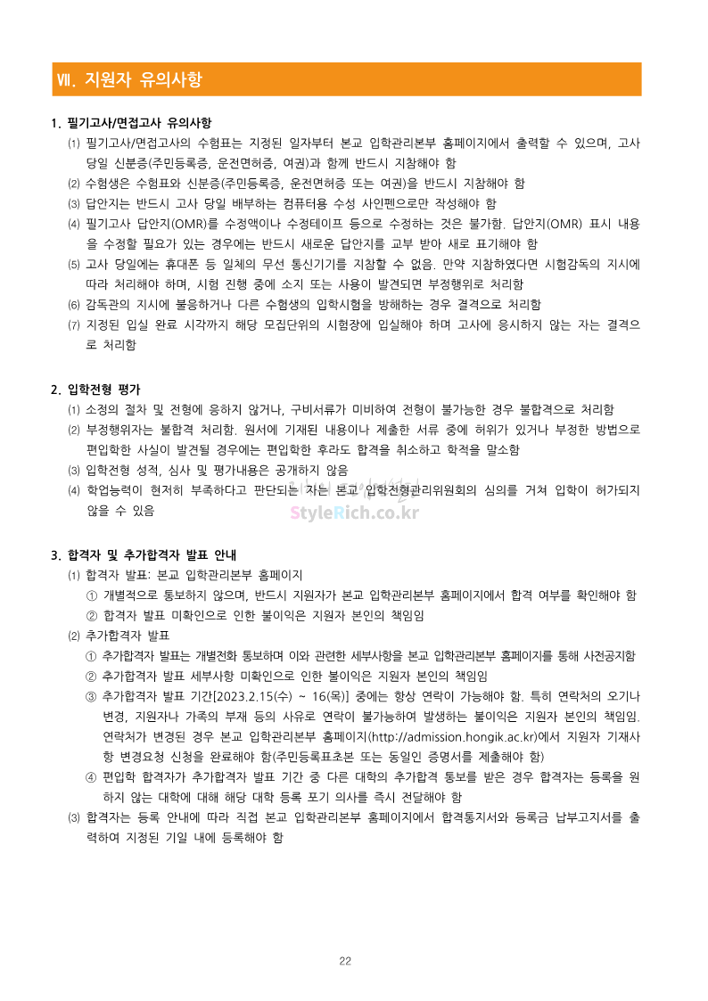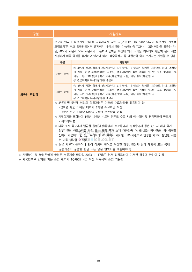 홍익대 편입 2023학년도 모집요강 간편하게 보자! 2022.12.05 23:58 편입 모집요강/2023학년도 모집요강 2023학년도 홍익대 편입 모집요강(2022.12.05 기준)을 간편하게 확인하세요. * 최종 모집요강 발표 이후에도 내용의 일부가 변경될 수 있으니 지원 전 반드시 홍익대 입학처에서 확인 바랍니다. 홍익대 편입 최신 모집요강 확인하기 <출처: 홍익대> 공유하기 게시글 관리 리치의 편입컨설팅 저작자표시 비영리 변경금지 (새창열림) '편입 모집요강 > 2023학년도 모집요강' 카테고리의 다른 글 원광대 편입 2023학년도 모집요강 간편하게 보자! (0) 2022.12.06 경북대 편입 2023학년도 모집요강 간편하게 보자! (0) 2022.12.06 중앙대 편입 2023학년도 모집요강 간편하게 보자! (0) 2022.12.05 숙명여대 편입 2023학년도 모집요강 간편하게 보자! (0) 2022.12.05 대구가톨릭대 편입 2023학년도 모집요강 간편하게 보자! (0) 2022.12.03 댓글 공유하기 다른 글 댓글 이 글 공유하기 구독하기 구독하기 카카오톡 카카오톡 라인 라인 트위터 트위터 Facebook Facebook 카카오스토리 카카오스토리 밴드 밴드 네이버 블로그 네이버 블로그 Pocket Pocket Evernote Evernote 다른 글 원광대 편입 2023학년도 모집요강 간편하게 보자! 원광대 편입 2023학년도 모집요강 간편하게 보자! 2022.12.06 경북대 편입 2023학년도 모집요강 간편하게 보자! 경북대 편입 2023학년도 모집요강 간편하게 보자! 2022.12.06 중앙대 편입 2023학년도 모집요강 간편하게 보자! 중앙대 편입 2023학년도 모집요강 간편하게 보자! 2022.12.05 숙명여대 편입 2023학년도 모집요강 간편하게 보자! 숙명여대 편입 2023학년도 모집요강 간편하게 보자! 2022.12.05 다른 글 더 둘러보기