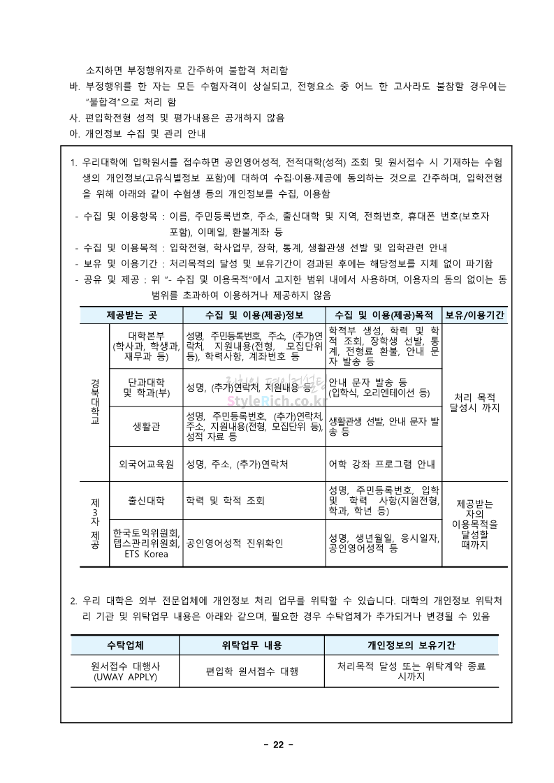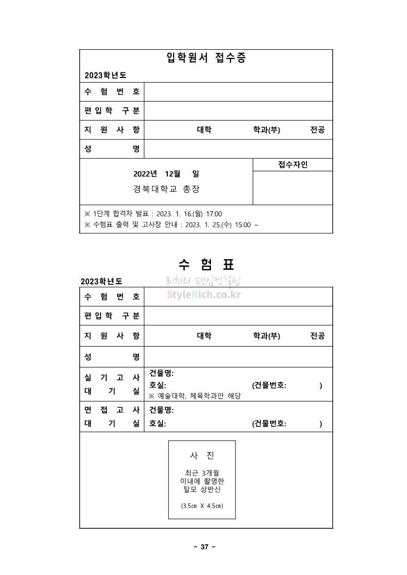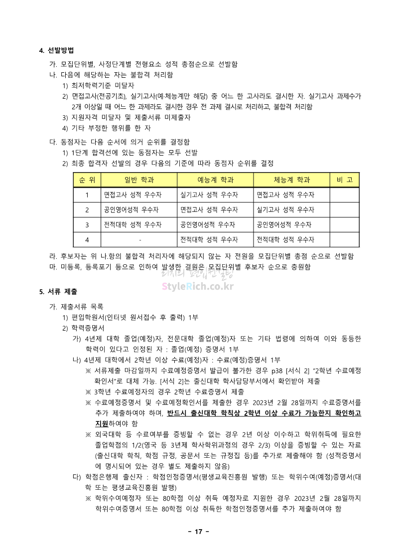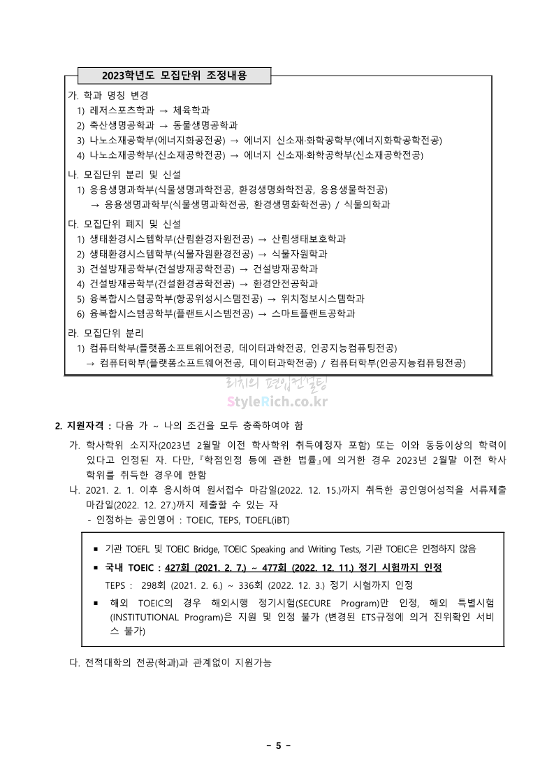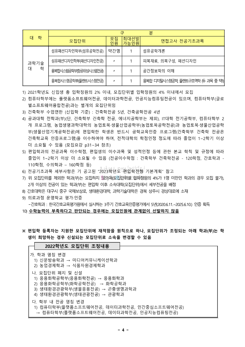 경북대 편입 2023학년도 모집요강 간편하게 보자! 2022.12.06 00:13 편입 모집요강/2023학년도 모집요강 2023학년도 경북대 편입 모집요강(2022.12.05 기준)을 간편하게 확인하세요. * 최종 모집요강 발표 이후에도 내용의 일부가 변경될 수 있으니 지원 전 반드시 경북대 입학처에서 확인 바랍니다. 경북대 편입 최신 모집요강 확인하기 <출처: 경북대> 공유하기 게시글 관리 리치의 편입컨설팅 저작자표시 비영리 변경금지 (새창열림) '편입 모집요강 > 2023학년도 모집요강' 카테고리의 다른 글 전남대 편입 2023학년도 모집요강 간편하게 보자! (0) 2022.12.06 원광대 편입 2023학년도 모집요강 간편하게 보자! (0) 2022.12.06 홍익대 편입 2023학년도 모집요강 간편하게 보자! (0) 2022.12.05 중앙대 편입 2023학년도 모집요강 간편하게 보자! (0) 2022.12.05 숙명여대 편입 2023학년도 모집요강 간편하게 보자! (0) 2022.12.05 댓글 공유하기 다른 글 댓글 이 글 공유하기 구독하기 구독하기 카카오톡 카카오톡 라인 라인 트위터 트위터 Facebook Facebook 카카오스토리 카카오스토리 밴드 밴드 네이버 블로그 네이버 블로그 Pocket Pocket Evernote Evernote 다른 글 전남대 편입 2023학년도 모집요강 간편하게 보자! 전남대 편입 2023학년도 모집요강 간편하게 보자! 2022.12.06 원광대 편입 2023학년도 모집요강 간편하게 보자! 원광대 편입 2023학년도 모집요강 간편하게 보자! 2022.12.06 홍익대 편입 2023학년도 모집요강 간편하게 보자! 홍익대 편입 2023학년도 모집요강 간편하게 보자! 2022.12.05 중앙대 편입 2023학년도 모집요강 간편하게 보자! 중앙대 편입 2023학년도 모집요강 간편하게 보자! 2022.12.05 다른 글 더 둘러보기