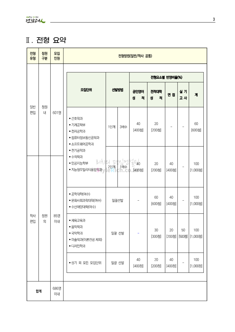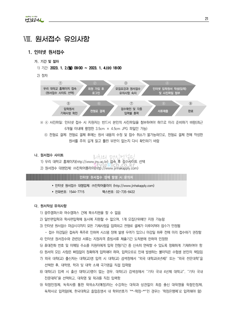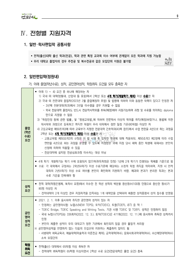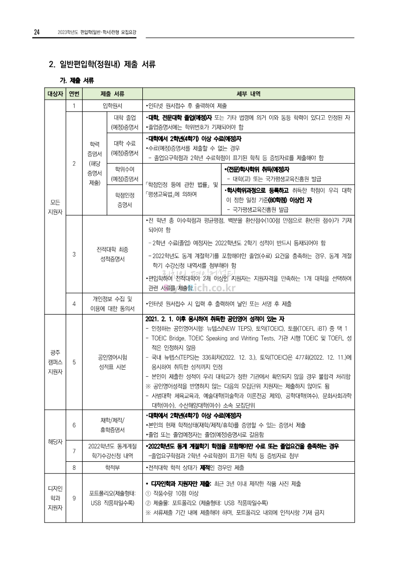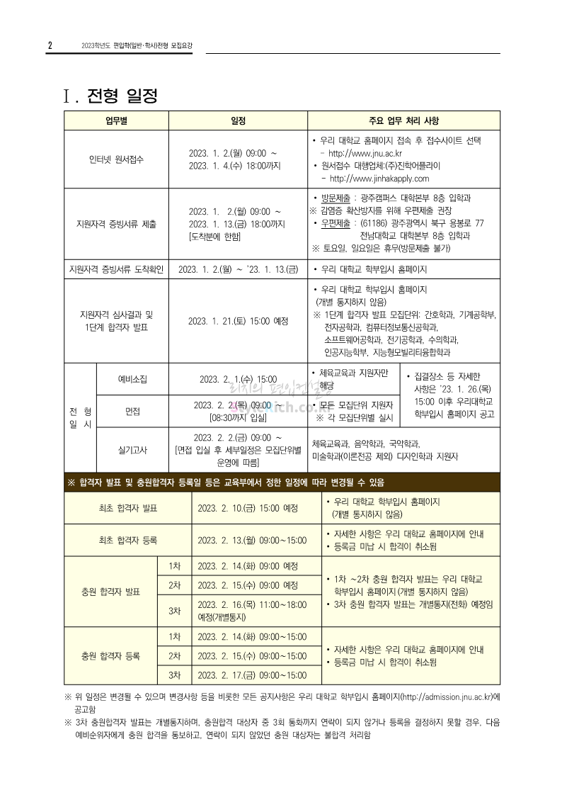 전남대 편입 2023학년도 모집요강 간편하게 보자! 2022.12.06 00:45 편입 모집요강/2023학년도 모집요강 2023학년도 전남대 편입 모집요강(2022.12.05 기준)을 간편하게 확인하세요. * 최종 모집요강 발표 이후에도 내용의 일부가 변경될 수 있으니 지원 전 반드시 전남대 입학처에서 확인 바랍니다. 전남대 편입 최신 모집요강 확인하기 <출처: 전남대> 공유하기 게시글 관리 리치의 편입컨설팅 저작자표시 비영리 변경금지 (새창열림) '편입 모집요강 > 2023학년도 모집요강' 카테고리의 다른 글 동덕여대 편입 2023학년도 모집요강 간편하게 보자! (0) 2022.12.06 충북대 편입 2023학년도 모집요강 간편하게 보자! (0) 2022.12.06 원광대 편입 2023학년도 모집요강 간편하게 보자! (0) 2022.12.06 경북대 편입 2023학년도 모집요강 간편하게 보자! (0) 2022.12.06 홍익대 편입 2023학년도 모집요강 간편하게 보자! (0) 2022.12.05 댓글 공유하기 다른 글 댓글 이 글 공유하기 구독하기 구독하기 카카오톡 카카오톡 라인 라인 트위터 트위터 Facebook Facebook 카카오스토리 카카오스토리 밴드 밴드 네이버 블로그 네이버 블로그 Pocket Pocket Evernote Evernote 다른 글 동덕여대 편입 2023학년도 모집요강 간편하게 보자! 동덕여대 편입 2023학년도 모집요강 간편하게 보자! 2022.12.06 충북대 편입 2023학년도 모집요강 간편하게 보자! 충북대 편입 2023학년도 모집요강 간편하게 보자! 2022.12.06 원광대 편입 2023학년도 모집요강 간편하게 보자! 원광대 편입 2023학년도 모집요강 간편하게 보자! 2022.12.06 경북대 편입 2023학년도 모집요강 간편하게 보자! 경북대 편입 2023학년도 모집요강 간편하게 보자! 2022.12.06 다른 글 더 둘러보기