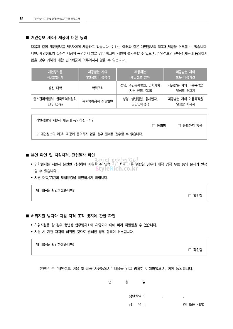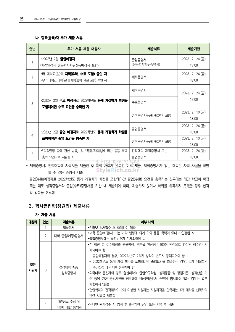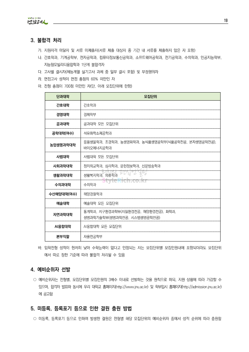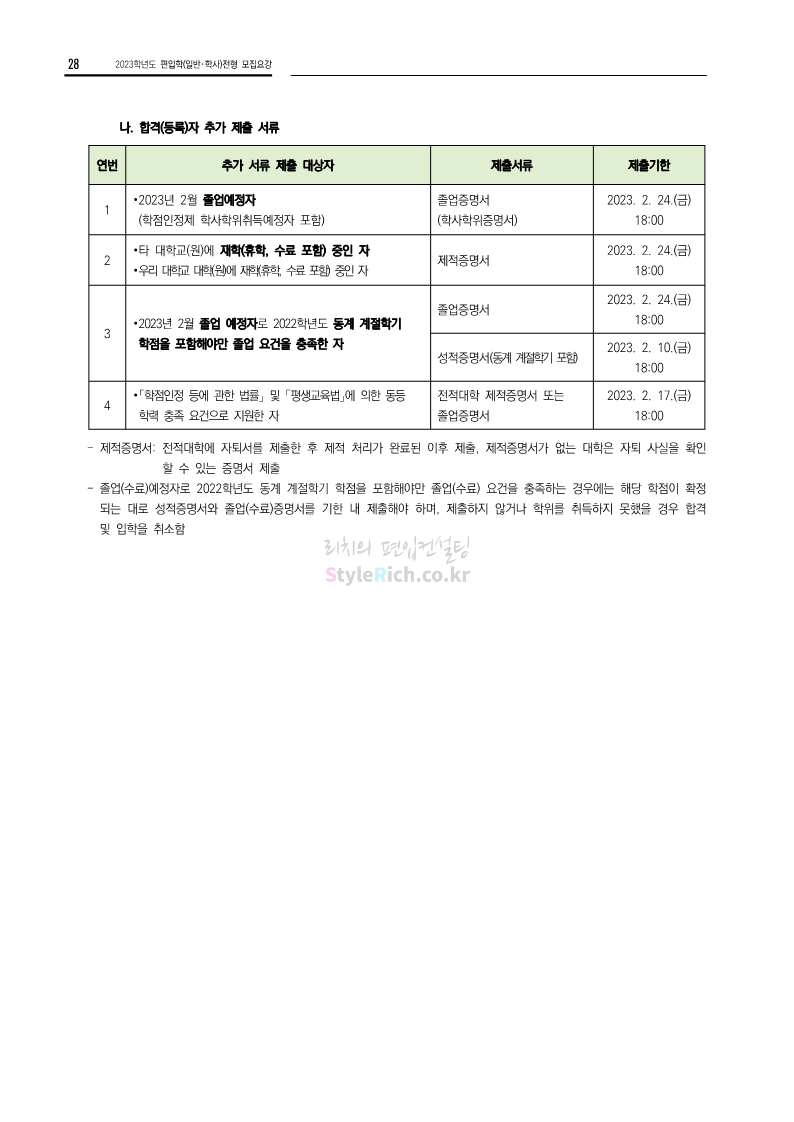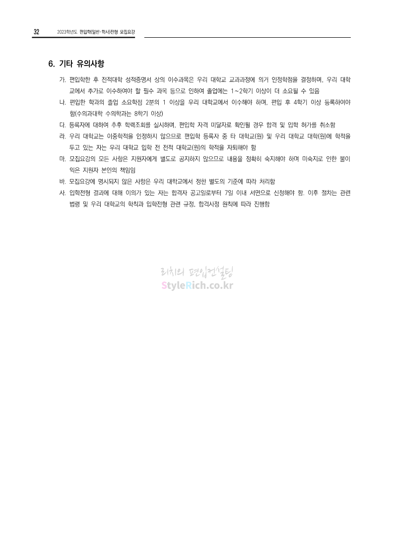 전남대 편입 2023학년도 모집요강 간편하게 보자! 2022.12.06 00:45 편입 모집요강/2023학년도 모집요강 2023학년도 전남대 편입 모집요강(2022.12.05 기준)을 간편하게 확인하세요. * 최종 모집요강 발표 이후에도 내용의 일부가 변경될 수 있으니 지원 전 반드시 전남대 입학처에서 확인 바랍니다. 전남대 편입 최신 모집요강 확인하기 <출처: 전남대> 공유하기 게시글 관리 리치의 편입컨설팅 저작자표시 비영리 변경금지 (새창열림) '편입 모집요강 > 2023학년도 모집요강' 카테고리의 다른 글 동덕여대 편입 2023학년도 모집요강 간편하게 보자! (0) 2022.12.06 충북대 편입 2023학년도 모집요강 간편하게 보자! (0) 2022.12.06 원광대 편입 2023학년도 모집요강 간편하게 보자! (0) 2022.12.06 경북대 편입 2023학년도 모집요강 간편하게 보자! (0) 2022.12.06 홍익대 편입 2023학년도 모집요강 간편하게 보자! (0) 2022.12.05 댓글 공유하기 다른 글 댓글 이 글 공유하기 구독하기 구독하기 카카오톡 카카오톡 라인 라인 트위터 트위터 Facebook Facebook 카카오스토리 카카오스토리 밴드 밴드 네이버 블로그 네이버 블로그 Pocket Pocket Evernote Evernote 다른 글 동덕여대 편입 2023학년도 모집요강 간편하게 보자! 동덕여대 편입 2023학년도 모집요강 간편하게 보자! 2022.12.06 충북대 편입 2023학년도 모집요강 간편하게 보자! 충북대 편입 2023학년도 모집요강 간편하게 보자! 2022.12.06 원광대 편입 2023학년도 모집요강 간편하게 보자! 원광대 편입 2023학년도 모집요강 간편하게 보자! 2022.12.06 경북대 편입 2023학년도 모집요강 간편하게 보자! 경북대 편입 2023학년도 모집요강 간편하게 보자! 2022.12.06 다른 글 더 둘러보기