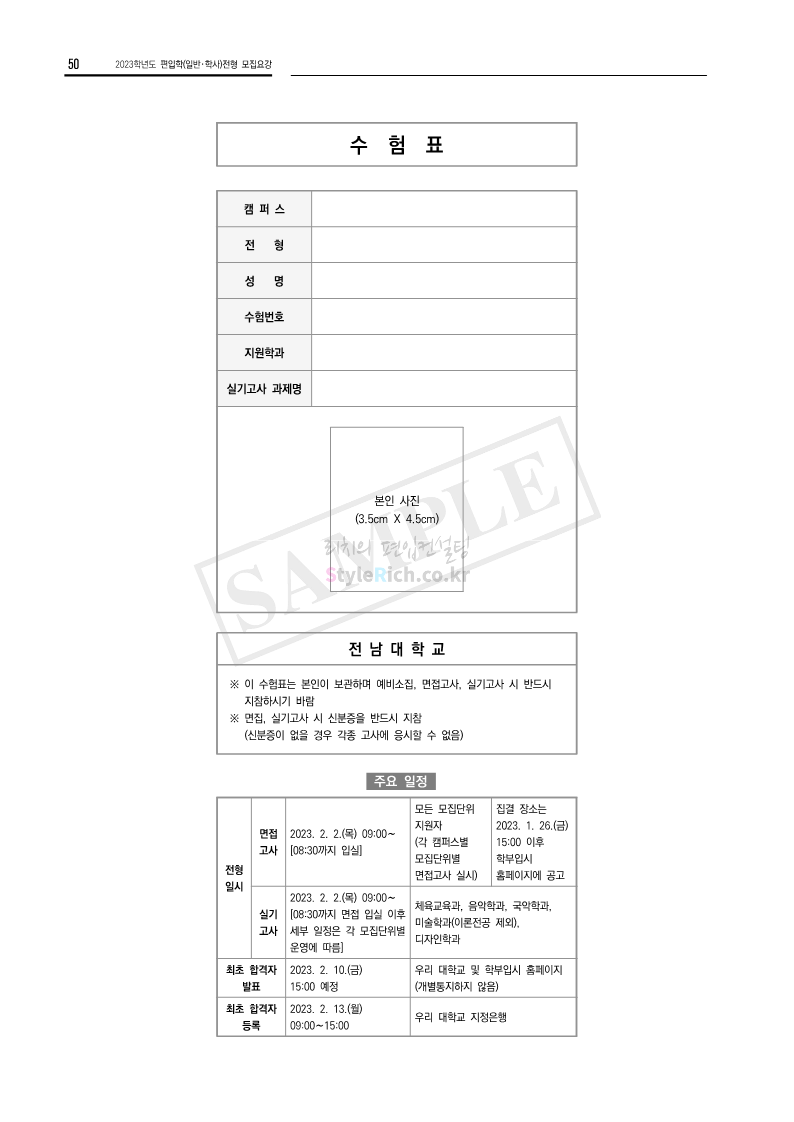 전남대 편입 2023학년도 모집요강 간편하게 보자! 2022.12.06 00:45 편입 모집요강/2023학년도 모집요강 2023학년도 전남대 편입 모집요강(2022.12.05 기준)을 간편하게 확인하세요. * 최종 모집요강 발표 이후에도 내용의 일부가 변경될 수 있으니 지원 전 반드시 전남대 입학처에서 확인 바랍니다. 전남대 편입 최신 모집요강 확인하기 <출처: 전남대> 공유하기 게시글 관리 리치의 편입컨설팅 저작자표시 비영리 변경금지 (새창열림) '편입 모집요강 > 2023학년도 모집요강' 카테고리의 다른 글 동덕여대 편입 2023학년도 모집요강 간편하게 보자! (0) 2022.12.06 충북대 편입 2023학년도 모집요강 간편하게 보자! (0) 2022.12.06 원광대 편입 2023학년도 모집요강 간편하게 보자! (0) 2022.12.06 경북대 편입 2023학년도 모집요강 간편하게 보자! (0) 2022.12.06 홍익대 편입 2023학년도 모집요강 간편하게 보자! (0) 2022.12.05 댓글 공유하기 다른 글 댓글 이 글 공유하기 구독하기 구독하기 카카오톡 카카오톡 라인 라인 트위터 트위터 Facebook Facebook 카카오스토리 카카오스토리 밴드 밴드 네이버 블로그 네이버 블로그 Pocket Pocket Evernote Evernote 다른 글 동덕여대 편입 2023학년도 모집요강 간편하게 보자! 동덕여대 편입 2023학년도 모집요강 간편하게 보자! 2022.12.06 충북대 편입 2023학년도 모집요강 간편하게 보자! 충북대 편입 2023학년도 모집요강 간편하게 보자! 2022.12.06 원광대 편입 2023학년도 모집요강 간편하게 보자! 원광대 편입 2023학년도 모집요강 간편하게 보자! 2022.12.06 경북대 편입 2023학년도 모집요강 간편하게 보자! 경북대 편입 2023학년도 모집요강 간편하게 보자! 2022.12.06 다른 글 더 둘러보기