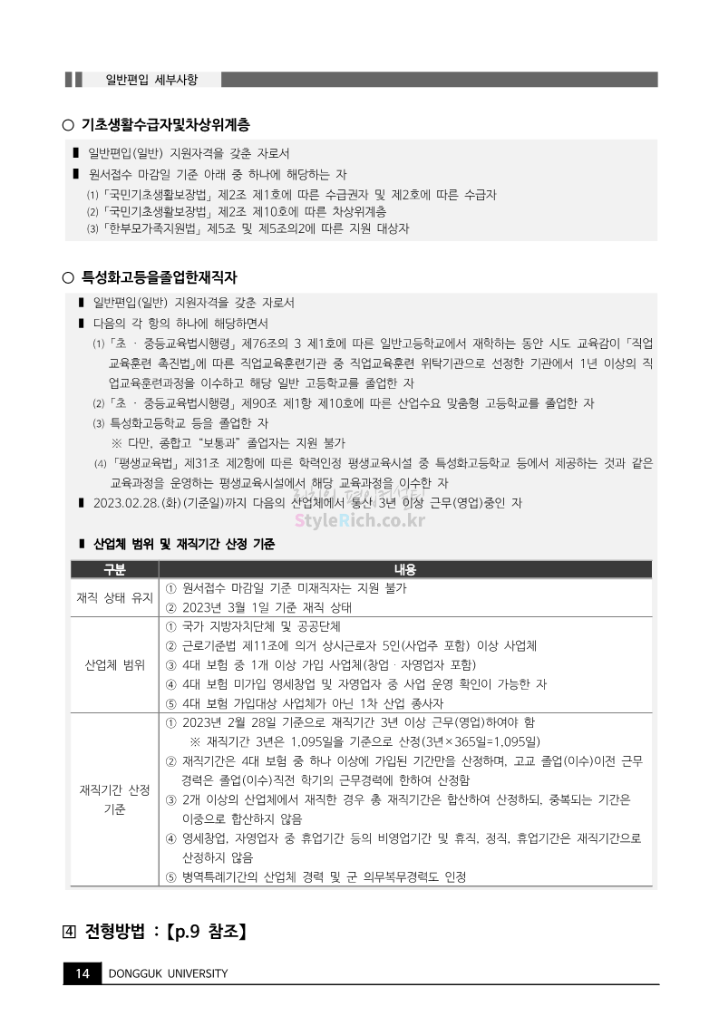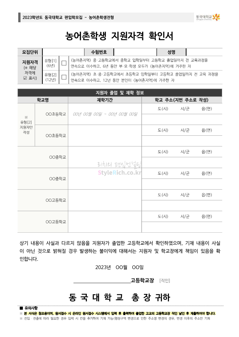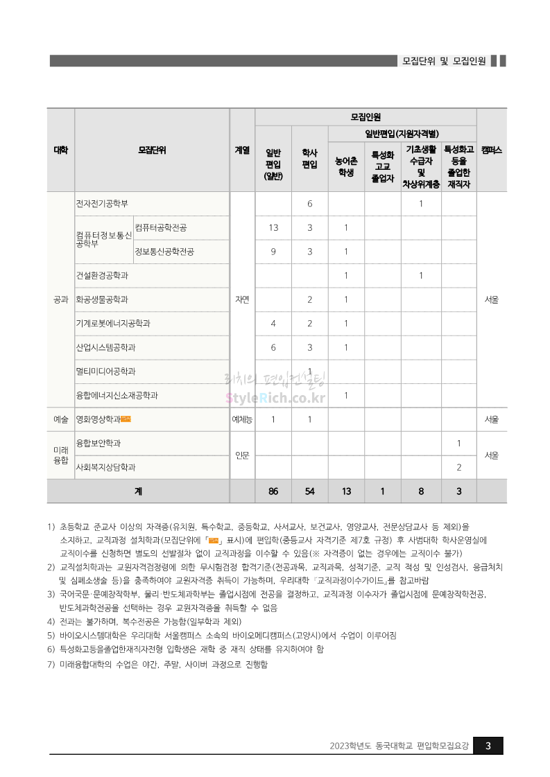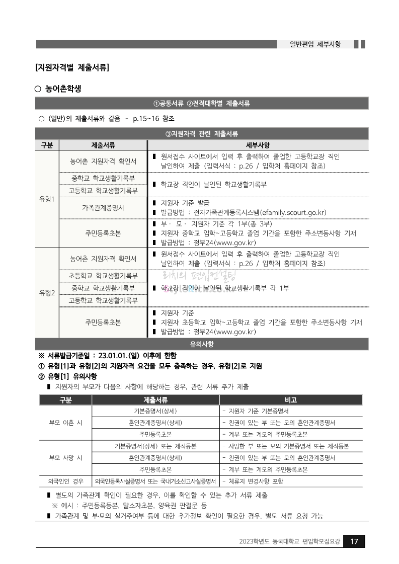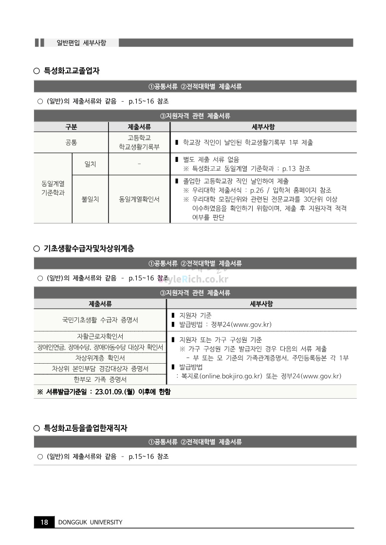 동국대 편입 2023학년도 모집요강 간편하게 보자! 2022.12.07 23:39 편입 모집요강/2023학년도 모집요강 2023학년도 동국대 편입 모집요강(2022.12.07 기준)을 간편하게 확인하세요. * 최종 모집요강 발표 이후에도 내용의 일부가 변경될 수 있으니 지원 전 반드시 동국대 입학처에서 확인 바랍니다. 동국대 편입 최신 모집요강 확인하기 <출처: 동국대> 공유하기 게시글 관리 리치의 편입컨설팅 저작자표시 비영리 변경금지 (새창열림) '편입 모집요강 > 2023학년도 모집요강' 카테고리의 다른 글 한양대 편입 2023학년도 모집요강 간편하게 보자! (0) 2022.12.08 서울과학기술대 편입 2023학년도 모집요강 간편하게 보자! (0) 2022.12.08 인제대 편입 2023학년도 모집요강 간편하게 보자! (0) 2022.12.06 영남대 편입 2023학년도 모집요강 간편하게 보자! (0) 2022.12.06 성균관대 편입 2023학년도 모집요강 간편하게 보자! (0) 2022.12.06 댓글 공유하기 다른 글 댓글 이 글 공유하기 구독하기 구독하기 카카오톡 카카오톡 라인 라인 트위터 트위터 Facebook Facebook 카카오스토리 카카오스토리 밴드 밴드 네이버 블로그 네이버 블로그 Pocket Pocket Evernote Evernote 다른 글 한양대 편입 2023학년도 모집요강 간편하게 보자! 한양대 편입 2023학년도 모집요강 간편하게 보자! 2022.12.08 서울과학기술대 편입 2023학년도 모집요강 간편하게 보자! 서울과학기술대 편입 2023학년도 모집요강 간편하게 보자! 2022.12.08 인제대 편입 2023학년도 모집요강 간편하게 보자! 인제대 편입 2023학년도 모집요강 간편하게 보자! 2022.12.06 영남대 편입 2023학년도 모집요강 간편하게 보자! 영남대 편입 2023학년도 모집요강 간편하게 보자! 2022.12.06 다른 글 더 둘러보기