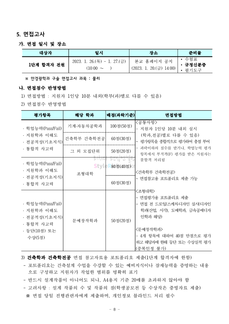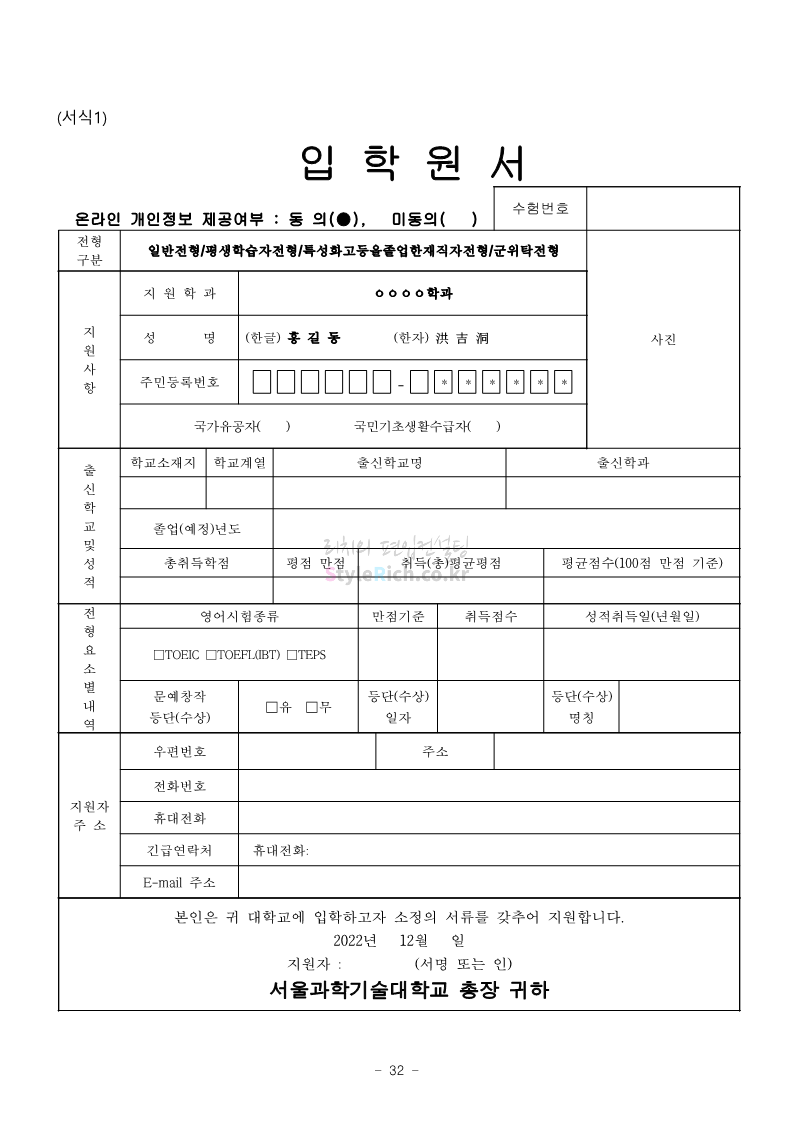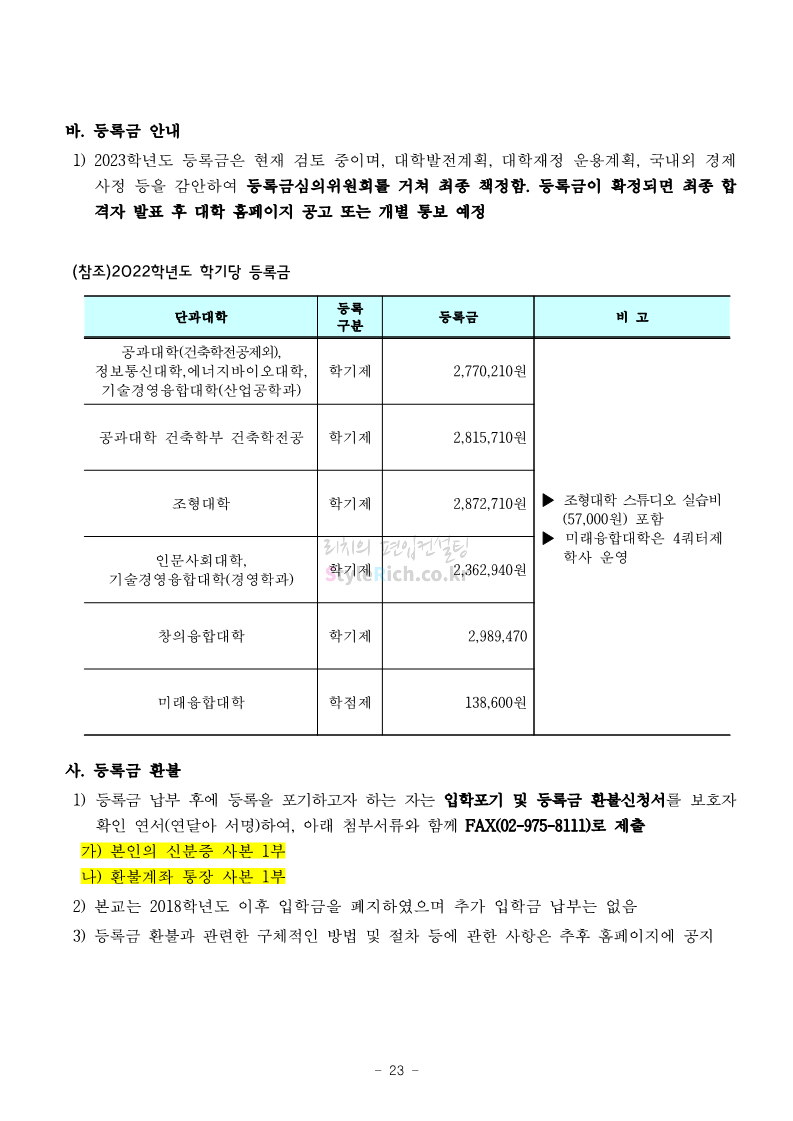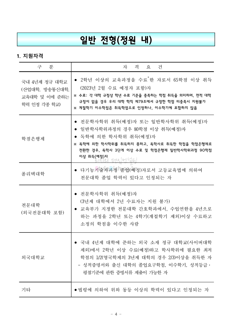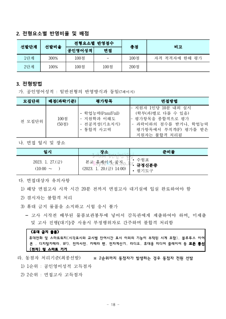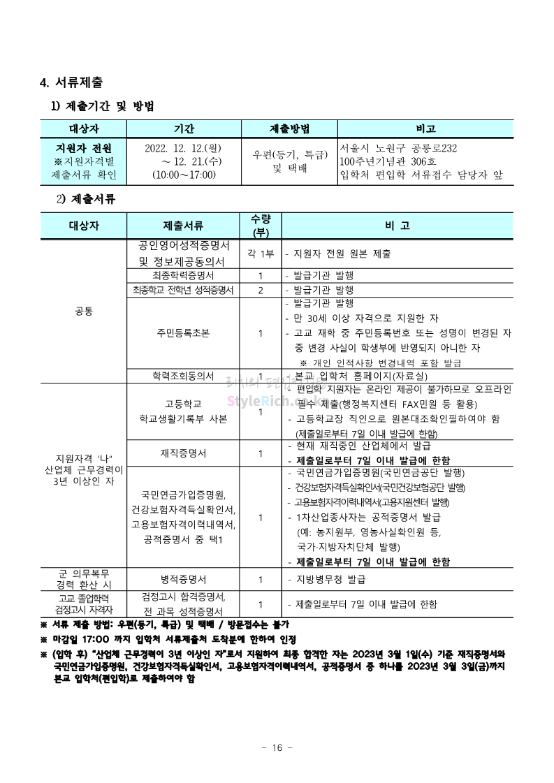 서울과학기술대 편입 2023학년도 모집요강 간편하게 보자! 2022.12.08 00:07 편입 모집요강/2023학년도 모집요강 2023학년도 서울과학기술대 편입 모집요강(2022.12.07 기준)을 간편하게 확인하세요. * 최종 모집요강 발표 이후에도 내용의 일부가 변경될 수 있으니 지원 전 반드시 서울과학기술대 입학처에서 확인 바랍니다. 서울과학기술대 편입 최신 모집요강 확인하기 <출처: 서울과학기술대> 공유하기 게시글 관리 리치의 편입컨설팅 저작자표시 비영리 변경금지 (새창열림) '편입 모집요강 > 2023학년도 모집요강' 카테고리의 다른 글 부산대 편입 2023학년도 모집요강 간편하게 보자! (0) 2022.12.08 한양대 편입 2023학년도 모집요강 간편하게 보자! (0) 2022.12.08 동국대 편입 2023학년도 모집요강 간편하게 보자! (0) 2022.12.07 인제대 편입 2023학년도 모집요강 간편하게 보자! (0) 2022.12.06 영남대 편입 2023학년도 모집요강 간편하게 보자! (0) 2022.12.06 댓글 공유하기 다른 글 댓글 이 글 공유하기 구독하기 구독하기 카카오톡 카카오톡 라인 라인 트위터 트위터 Facebook Facebook 카카오스토리 카카오스토리 밴드 밴드 네이버 블로그 네이버 블로그 Pocket Pocket Evernote Evernote 다른 글 부산대 편입 2023학년도 모집요강 간편하게 보자! 부산대 편입 2023학년도 모집요강 간편하게 보자! 2022.12.08 한양대 편입 2023학년도 모집요강 간편하게 보자! 한양대 편입 2023학년도 모집요강 간편하게 보자! 2022.12.08 동국대 편입 2023학년도 모집요강 간편하게 보자! 동국대 편입 2023학년도 모집요강 간편하게 보자! 2022.12.07 인제대 편입 2023학년도 모집요강 간편하게 보자! 인제대 편입 2023학년도 모집요강 간편하게 보자! 2022.12.06 다른 글 더 둘러보기