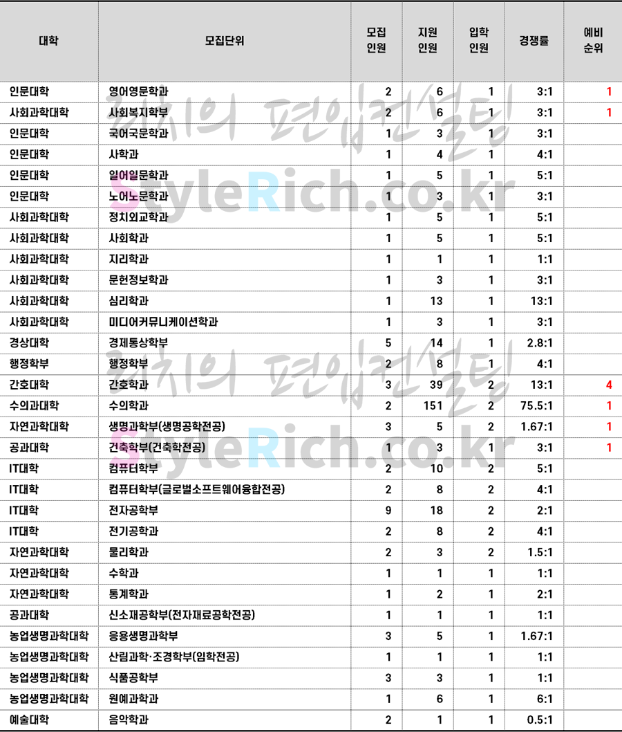 경북대 편입 2022학년도 추가합격 예비순위(예비번호)를 알아보자! 2022.12.11 23:07 편입 합격점수 & 추가합격/2022학년도 합격점수 & 추가합격 2022학년도 경북대 편입 추가합격 예비순위(예비번호)를 살펴보겠습니다. * 인문, 자연, 예체능으로 분류 후 추가합격이 많은 순으로 정렬 2022학년도 경북대 일반편입 추가합격 현황 2022학년도 경북대 일반편입 추가합격 예비순위(예비번호) 2022학년도 경북대 학사편입 추가합격 현황 2022학년도 경북대 학사편입 추가합격 예비순위(예비번호) <출처: 경북대> 공유하기 게시글 관리 리치의 편입컨설팅 저작자표시 비영리 변경금지 (새창열림) '편입 합격점수 & 추가합격 > 2022학년도 합격점수 & 추가합격' 카테고리의 다른 글 부산대 편입 2022학년도 추가합격 예비순위(예비번호)를 알아보자! (0) 2022.12.13 부산대 편입 2022학년도 합격점수(커트라인)을 알아보자! (0) 2022.12.13 경북대 편입 2022학년도 합격점수(커트라인)을 알아보자! (0) 2022.12.11 강원대(춘천) 편입 2022학년도 추가합격 예비순위(예비번호)를 알아보자! (0) 2022.12.11 강원대(춘천) 편입 2022학년도 합격점수(커트라인)을 알아보자! (0) 2022.12.11 댓글 공유하기 다른 글 댓글 이 글 공유하기 구독하기 구독하기 카카오톡 카카오톡 라인 라인 트위터 트위터 Facebook Facebook 카카오스토리 카카오스토리 밴드 밴드 네이버 블로그 네이버 블로그 Pocket Pocket Evernote Evernote 다른 글 부산대 편입 2022학년도 추가합격 예비순위(예비번호)를 알아보자! 부산대 편입 2022학년도 추가합격 예비순위(예비번호)를 알아보자! 2022.12.13 부산대 편입 2022학년도 합격점수(커트라인)을 알아보자! 부산대 편입 2022학년도 합격점수(커트라인)을 알아보자! 2022.12.13 경북대 편입 2022학년도 합격점수(커트라인)을 알아보자! 경북대 편입 2022학년도 합격점수(커트라인)을 알아보자! 2022.12.11 강원대(춘천) 편입 2022학년도 추가합격 예비순위(예비번호)를 알아보자! 강원대(춘천) 편입 2022학년도 추가합격 예비순위(예비번호)를 알아보자! 2022.12.11 다른 글 더 둘러보기