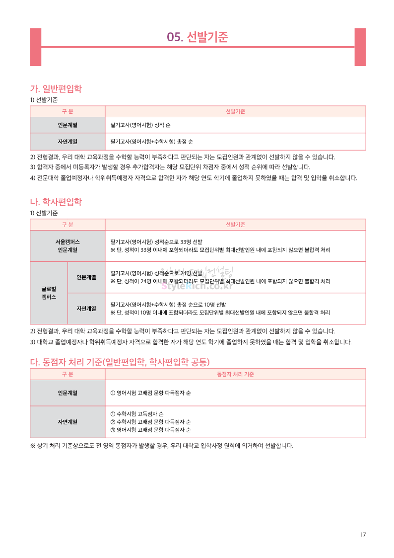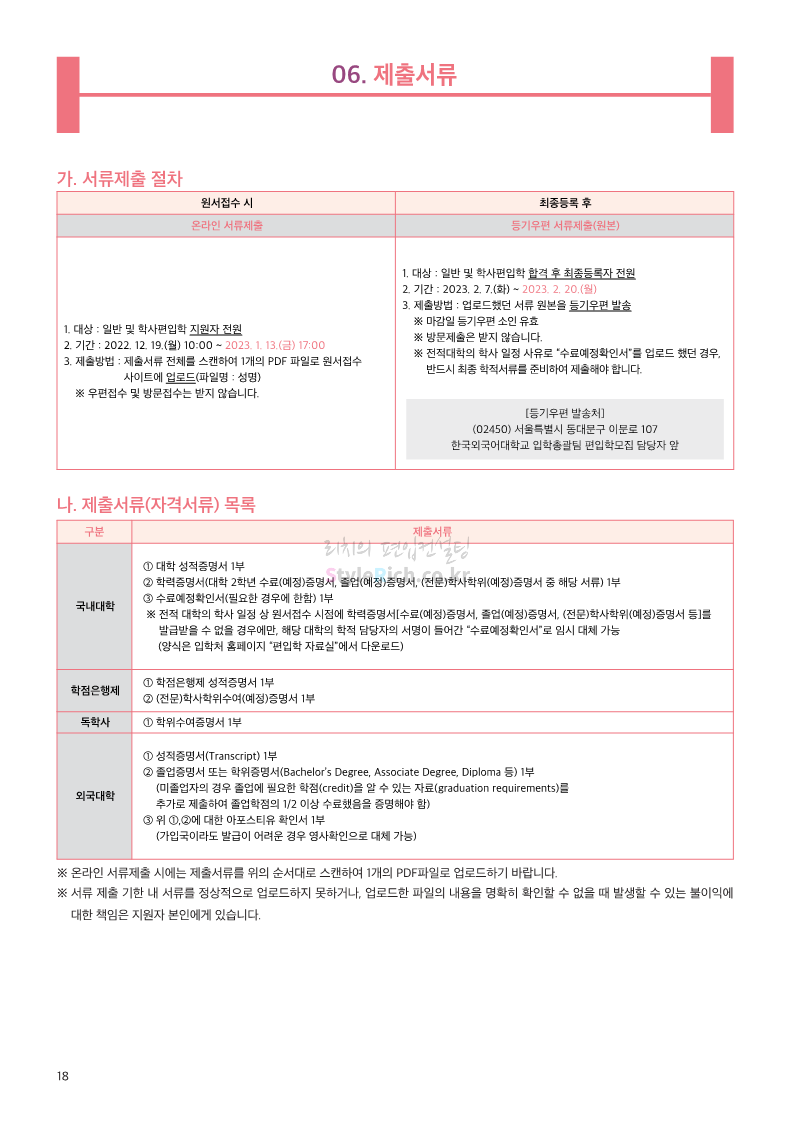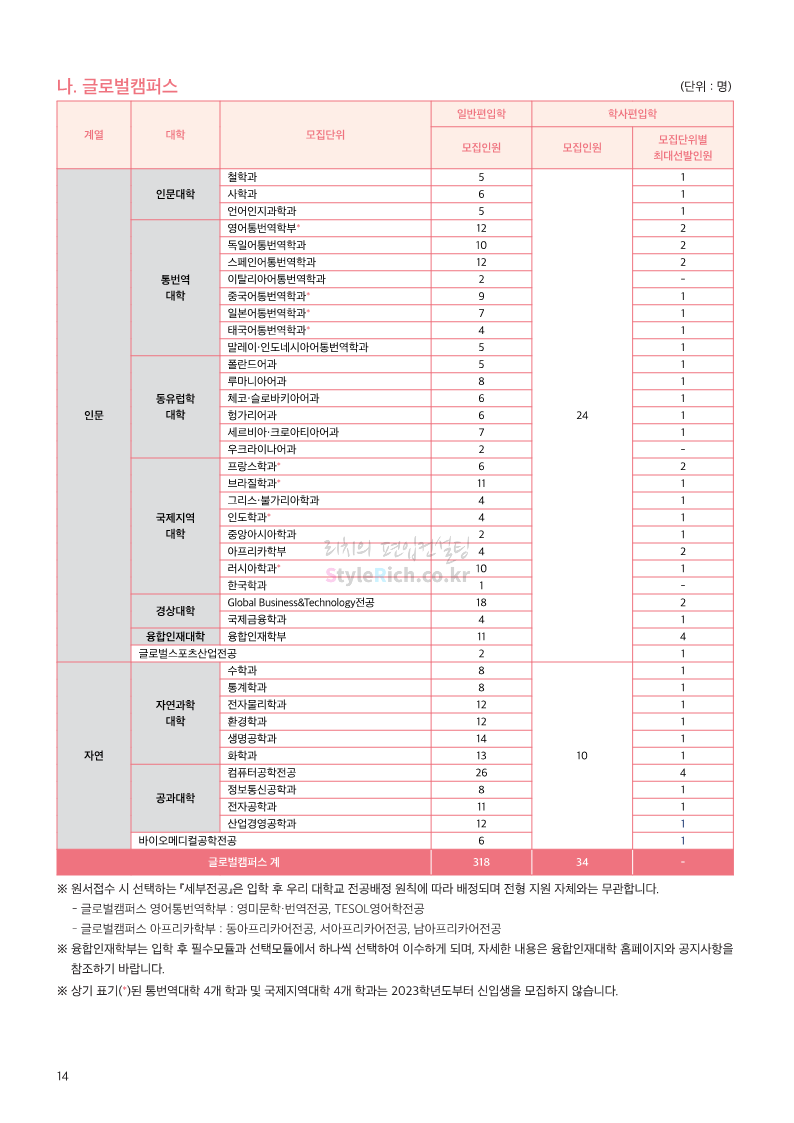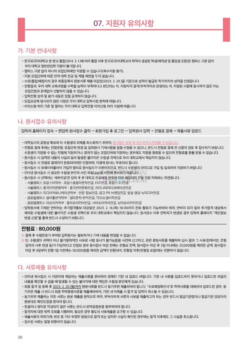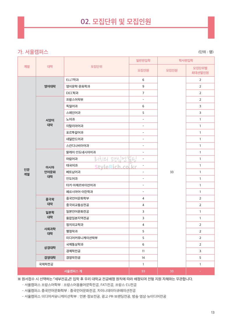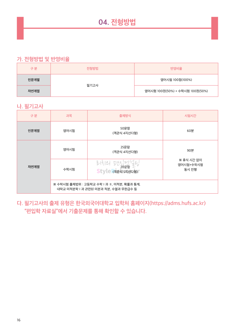 한국외대 편입 2023학년도 모집요강 간편하게 보자! 2022.12.12 23:56 편입 모집요강/2023학년도 모집요강 2023학년도 한국외대 편입 모집요강(2022.12.12 기준)을 간편하게 확인하세요. * 최종 모집요강 발표 이후에도 내용의 일부가 변경될 수 있으니 지원 전 반드시 한국외대 입학처에서 확인 바랍니다. 한국외대 편입 최신 모집요강 확인하기 <출처: 한국외대> 공유하기 게시글 관리 리치의 편입컨설팅 저작자표시 비영리 변경금지 (새창열림) '편입 모집요강 > 2023학년도 모집요강' 카테고리의 다른 글 서경대 편입 2023학년도 모집요강 간편하게 보자! (0) 2022.12.14 삼육대 편입 2023학년도 모집요강 간편하게 보자! (0) 2022.12.13 강원대(삼척/도계) 편입 2023학년도 모집요강 간편하게 보자! (0) 2022.12.11 강원대(춘천) 편입 2023학년도 모집요강 간편하게 보자! (0) 2022.12.11 서울여대 편입 2023학년도 모집요강 간편하게 보자! (0) 2022.12.10 댓글 공유하기 다른 글 댓글 이 글 공유하기 구독하기 구독하기 카카오톡 카카오톡 라인 라인 트위터 트위터 Facebook Facebook 카카오스토리 카카오스토리 밴드 밴드 네이버 블로그 네이버 블로그 Pocket Pocket Evernote Evernote 다른 글 서경대 편입 2023학년도 모집요강 간편하게 보자! 서경대 편입 2023학년도 모집요강 간편하게 보자! 2022.12.14 삼육대 편입 2023학년도 모집요강 간편하게 보자! 삼육대 편입 2023학년도 모집요강 간편하게 보자! 2022.12.13 강원대(삼척/도계) 편입 2023학년도 모집요강 간편하게 보자! 강원대(삼척/도계) 편입 2023학년도 모집요강 간편하게 보자! 2022.12.11 강원대(춘천) 편입 2023학년도 모집요강 간편하게 보자! 강원대(춘천) 편입 2023학년도 모집요강 간편하게 보자! 2022.12.11 다른 글 더 둘러보기