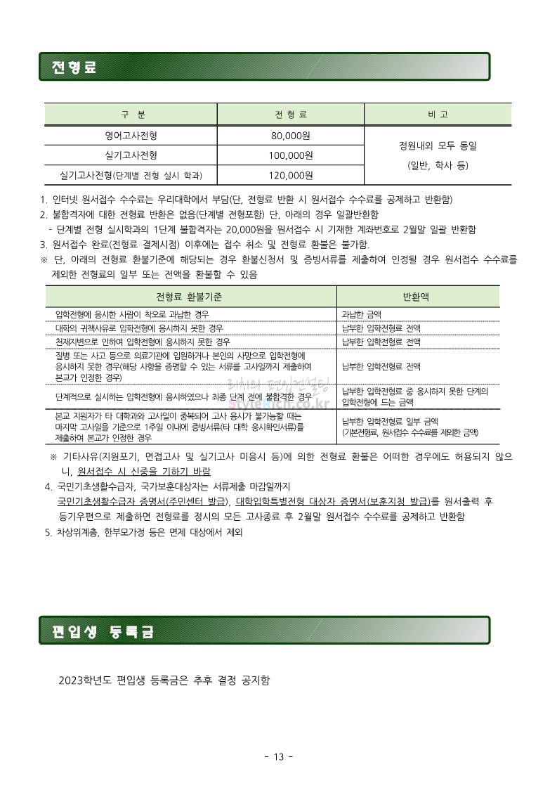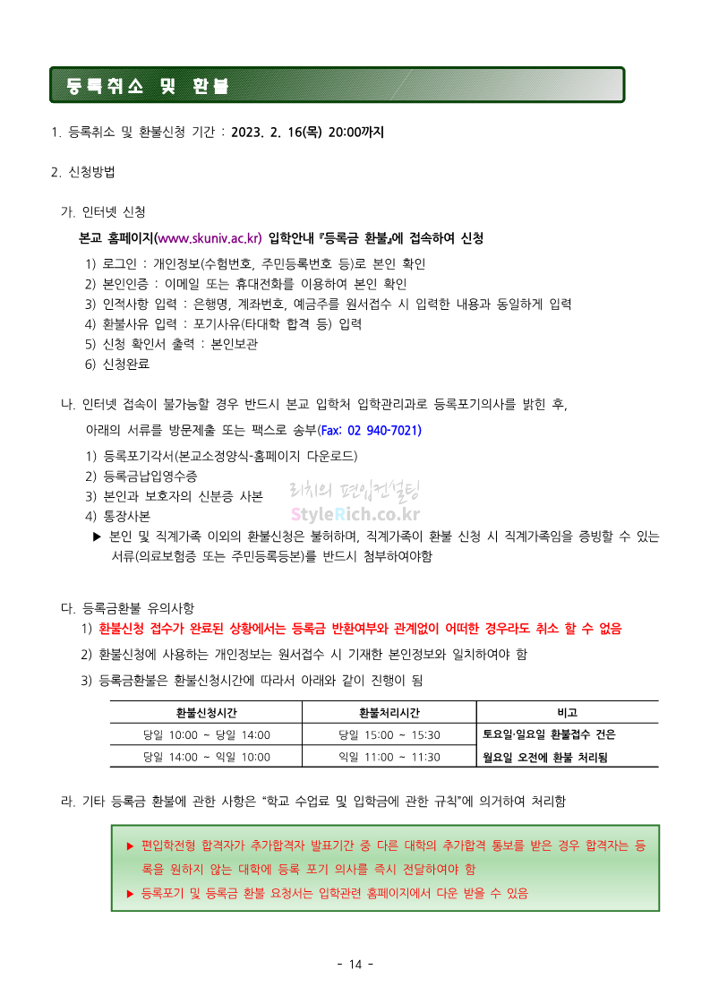 서경대 편입 2023학년도 모집요강 간편하게 보자! 2022.12.14 00:07 편입 모집요강/2023학년도 모집요강 2023학년도 서경대 편입 모집요강(2022.12.22 기준)을 간편하게 확인하세요. * 최종 모집요강 발표 이후에도 내용의 일부가 변경될 수 있으니 지원 전 반드시 서경대 입학처에서 확인 바랍니다. 서경대 편입 최신 모집요강 확인하기 <출처: 서경대> 공유하기 게시글 관리 리치의 편입컨설팅 저작자표시 비영리 변경금지 (새창열림) '편입 모집요강 > 2023학년도 모집요강' 카테고리의 다른 글 차의과학대 편입 2023학년도 모집요강 간편하게 보자! (0) 2022.12.14 조선대 편입 2023학년도 모집요강 간편하게 보자! (0) 2022.12.14 삼육대 편입 2023학년도 모집요강 간편하게 보자! (0) 2022.12.13 한국외대 편입 2023학년도 모집요강 간편하게 보자! (0) 2022.12.12 강원대(삼척/도계) 편입 2023학년도 모집요강 간편하게 보자! (0) 2022.12.11 댓글 공유하기 다른 글 댓글 이 글 공유하기 구독하기 구독하기 카카오톡 카카오톡 라인 라인 트위터 트위터 Facebook Facebook 카카오스토리 카카오스토리 밴드 밴드 네이버 블로그 네이버 블로그 Pocket Pocket Evernote Evernote 다른 글 차의과학대 편입 2023학년도 모집요강 간편하게 보자! 차의과학대 편입 2023학년도 모집요강 간편하게 보자! 2022.12.14 조선대 편입 2023학년도 모집요강 간편하게 보자! 조선대 편입 2023학년도 모집요강 간편하게 보자! 2022.12.14 삼육대 편입 2023학년도 모집요강 간편하게 보자! 삼육대 편입 2023학년도 모집요강 간편하게 보자! 2022.12.13 한국외대 편입 2023학년도 모집요강 간편하게 보자! 한국외대 편입 2023학년도 모집요강 간편하게 보자! 2022.12.12 다른 글 더 둘러보기