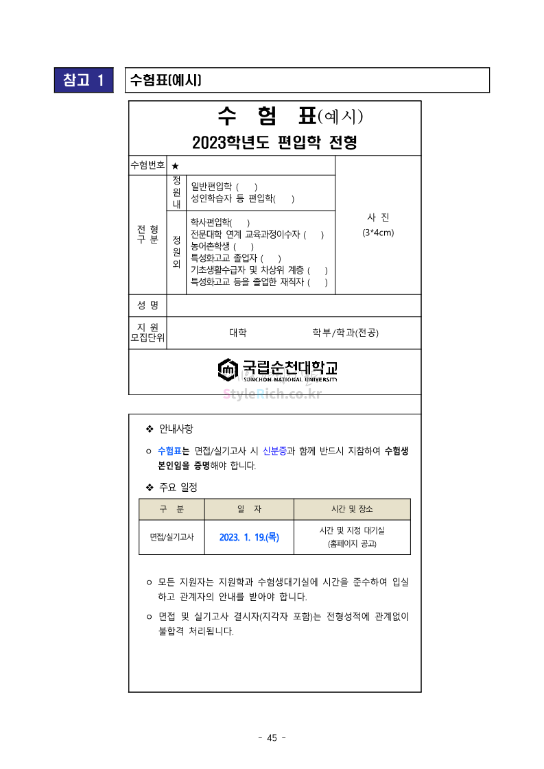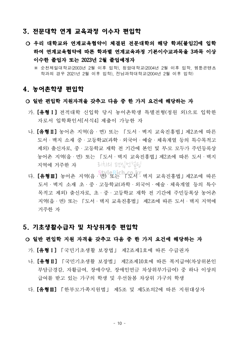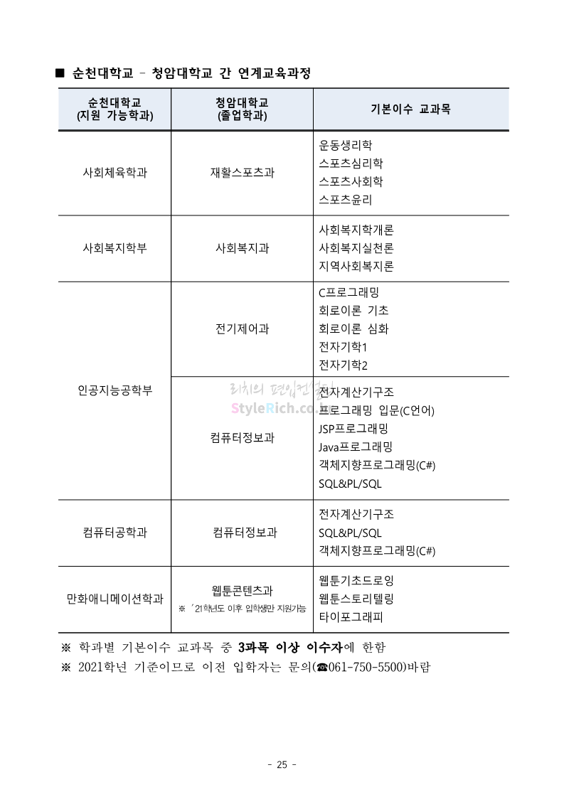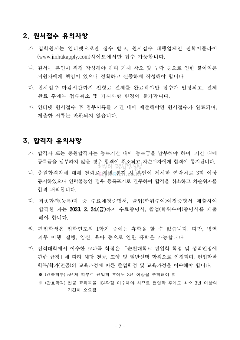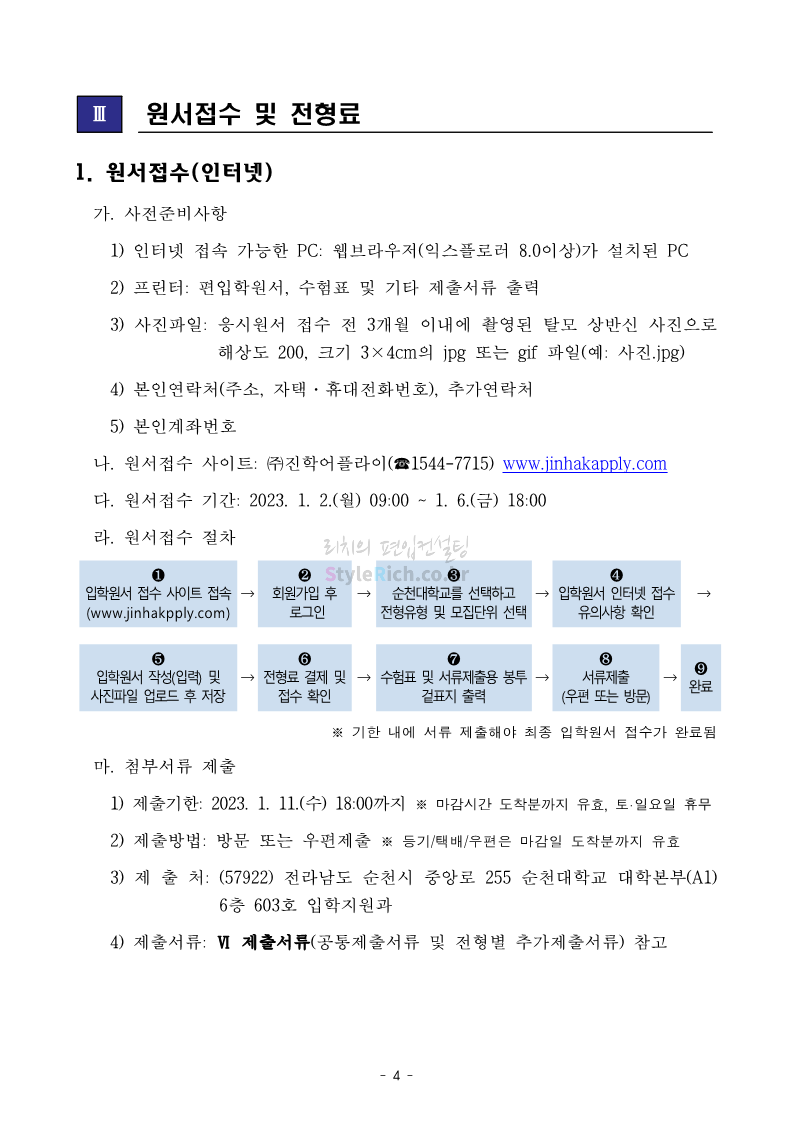 순천대 편입 2023학년도 모집요강 간편하게 보자! 2022.12.16 00:14 편입 모집요강/2023학년도 모집요강 2023학년도 순천대 편입 모집요강(2022.12.15 기준)을 간편하게 확인하세요. * 최종 모집요강 발표 이후에도 내용의 일부가 변경될 수 있으니 지원 전 반드시 순천대 입학처에서 확인하세요. 순천대 편입 최신 모집요강 확인하기 <출처: 순천대> 공유하기 게시글 관리 리치의 편입컨설팅 저작자표시 비영리 변경금지 (새창열림) '편입 모집요강 > 2023학년도 모집요강' 카테고리의 다른 글 인천대 편입 2023학년도 모집요강 간편하게 보자! (0) 2022.12.16 성신여대 편입 2023학년도 모집요강 간편하게 보자! (0) 2022.12.16 전북대 편입 2023학년도 모집요강 간편하게 보자! (0) 2022.12.14 우석대 편입 2023학년도 모집요강 간편하게 보자! (0) 2022.12.14 한성대 편입 2023학년도 모집요강 간편하게 보자! (0) 2022.12.14 댓글 공유하기 다른 글 댓글 이 글 공유하기 구독하기 구독하기 카카오톡 카카오톡 라인 라인 트위터 트위터 Facebook Facebook 카카오스토리 카카오스토리 밴드 밴드 네이버 블로그 네이버 블로그 Pocket Pocket Evernote Evernote 다른 글 인천대 편입 2023학년도 모집요강 간편하게 보자! 인천대 편입 2023학년도 모집요강 간편하게 보자! 2022.12.16 성신여대 편입 2023학년도 모집요강 간편하게 보자! 성신여대 편입 2023학년도 모집요강 간편하게 보자! 2022.12.16 전북대 편입 2023학년도 모집요강 간편하게 보자! 전북대 편입 2023학년도 모집요강 간편하게 보자! 2022.12.14 우석대 편입 2023학년도 모집요강 간편하게 보자! 우석대 편입 2023학년도 모집요강 간편하게 보자! 2022.12.14 다른 글 더 둘러보기
