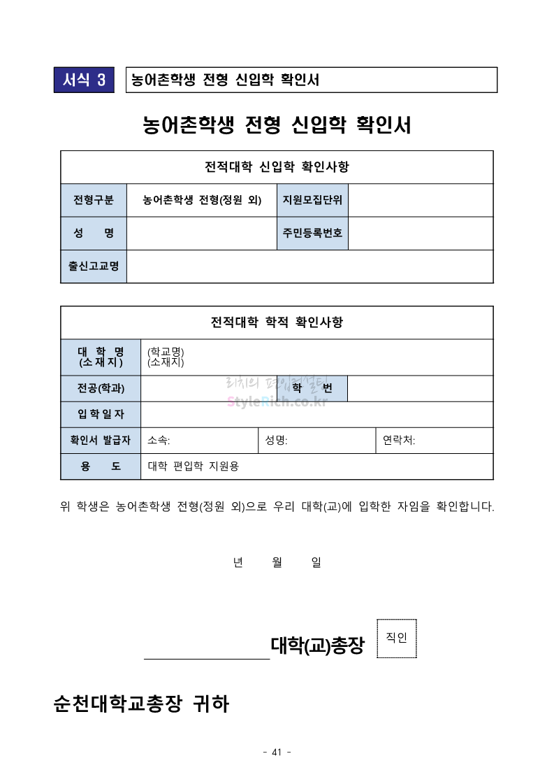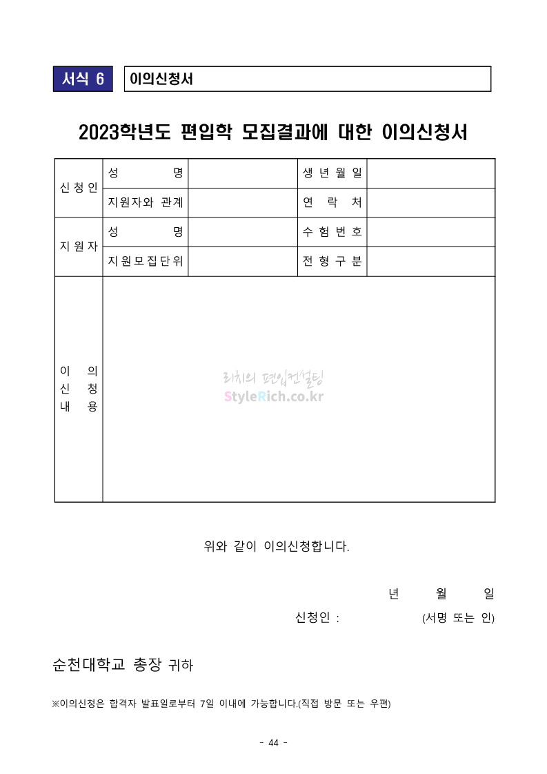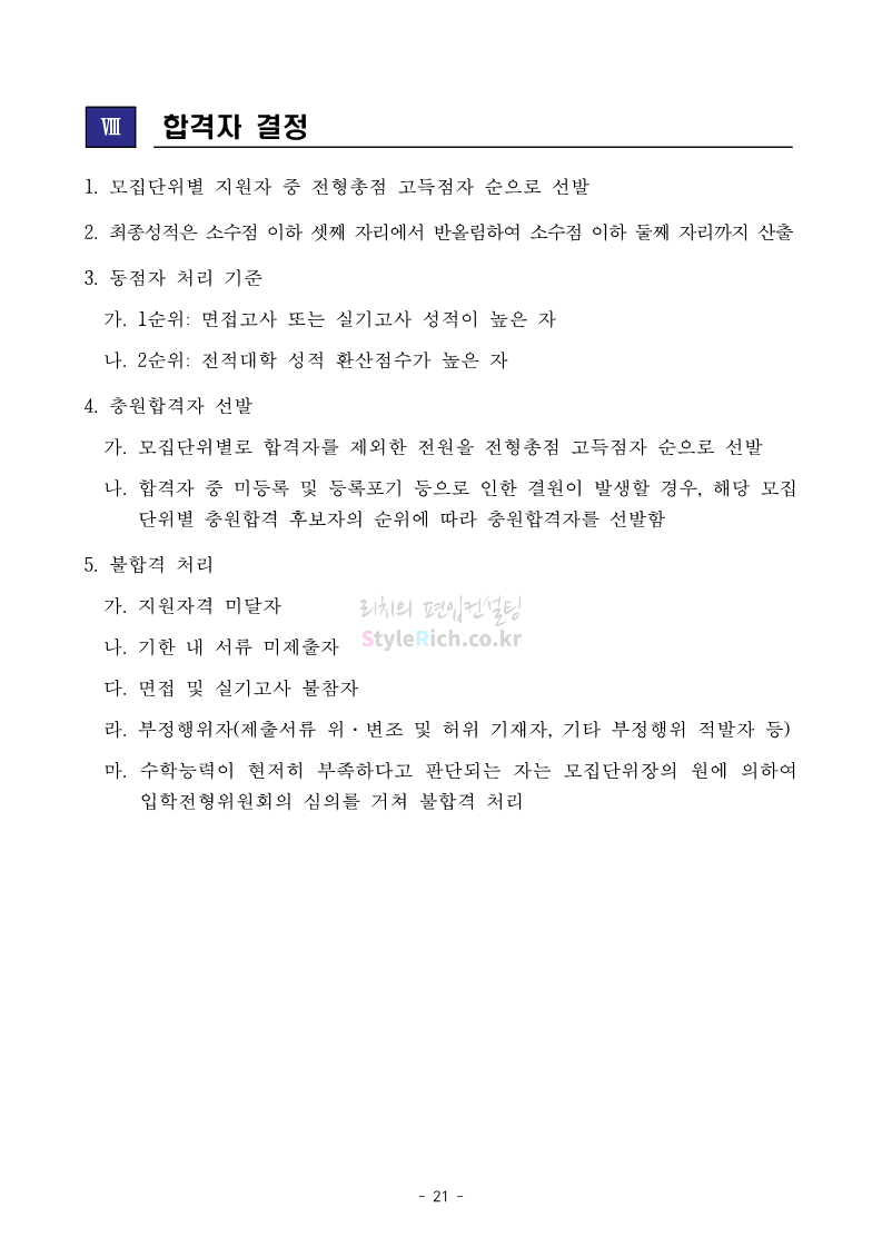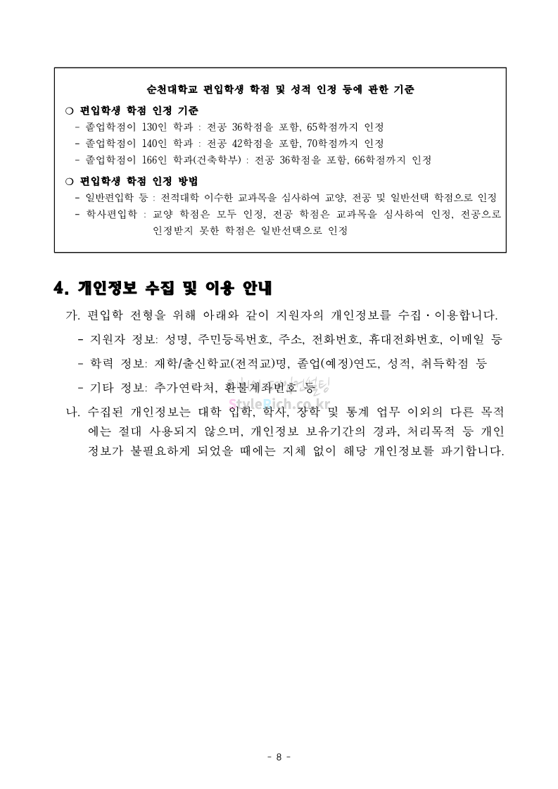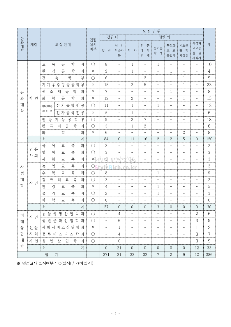 순천대 편입 2023학년도 모집요강 간편하게 보자! 2022.12.16 00:14 편입 모집요강/2023학년도 모집요강 2023학년도 순천대 편입 모집요강(2022.12.15 기준)을 간편하게 확인하세요. * 최종 모집요강 발표 이후에도 내용의 일부가 변경될 수 있으니 지원 전 반드시 순천대 입학처에서 확인하세요. 순천대 편입 최신 모집요강 확인하기 <출처: 순천대> 공유하기 게시글 관리 리치의 편입컨설팅 저작자표시 비영리 변경금지 (새창열림) '편입 모집요강 > 2023학년도 모집요강' 카테고리의 다른 글 인천대 편입 2023학년도 모집요강 간편하게 보자! (0) 2022.12.16 성신여대 편입 2023학년도 모집요강 간편하게 보자! (0) 2022.12.16 전북대 편입 2023학년도 모집요강 간편하게 보자! (0) 2022.12.14 우석대 편입 2023학년도 모집요강 간편하게 보자! (0) 2022.12.14 한성대 편입 2023학년도 모집요강 간편하게 보자! (0) 2022.12.14 댓글 공유하기 다른 글 댓글 이 글 공유하기 구독하기 구독하기 카카오톡 카카오톡 라인 라인 트위터 트위터 Facebook Facebook 카카오스토리 카카오스토리 밴드 밴드 네이버 블로그 네이버 블로그 Pocket Pocket Evernote Evernote 다른 글 인천대 편입 2023학년도 모집요강 간편하게 보자! 인천대 편입 2023학년도 모집요강 간편하게 보자! 2022.12.16 성신여대 편입 2023학년도 모집요강 간편하게 보자! 성신여대 편입 2023학년도 모집요강 간편하게 보자! 2022.12.16 전북대 편입 2023학년도 모집요강 간편하게 보자! 전북대 편입 2023학년도 모집요강 간편하게 보자! 2022.12.14 우석대 편입 2023학년도 모집요강 간편하게 보자! 우석대 편입 2023학년도 모집요강 간편하게 보자! 2022.12.14 다른 글 더 둘러보기