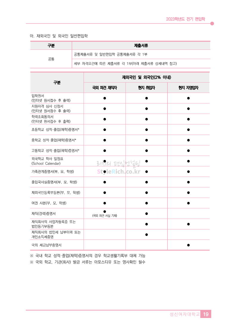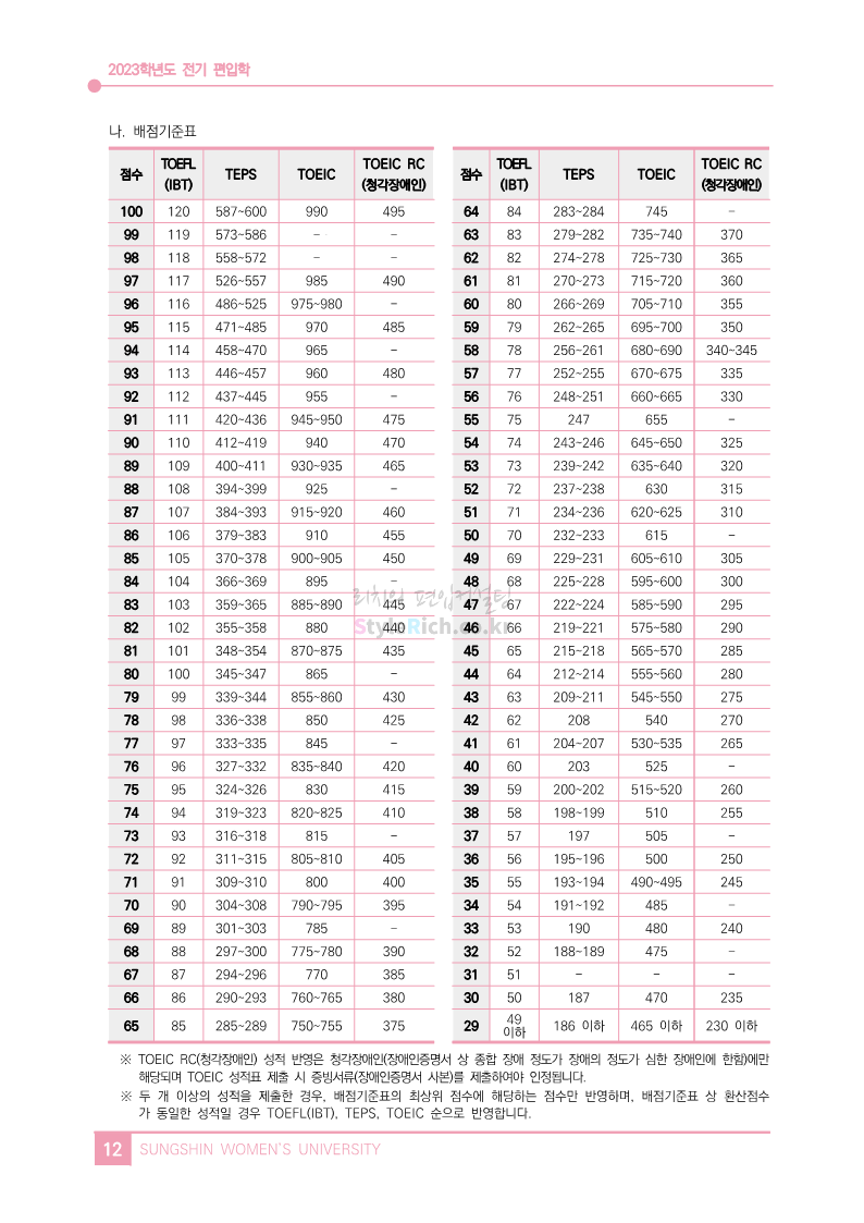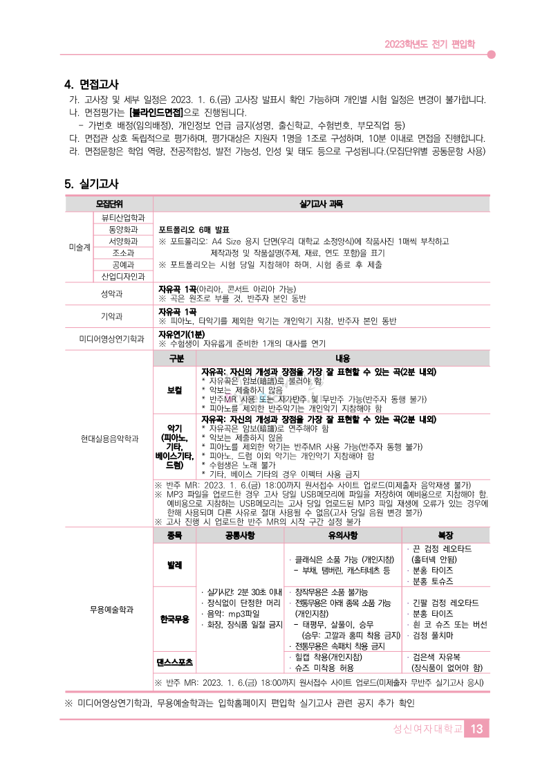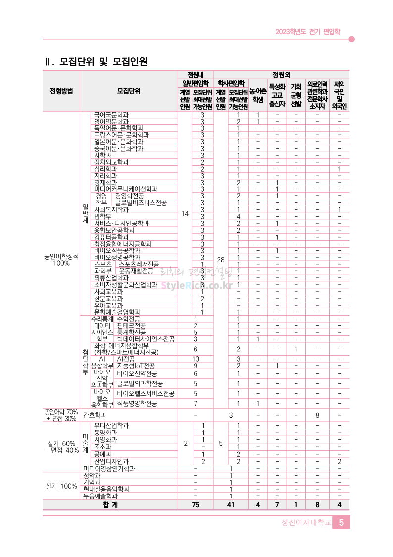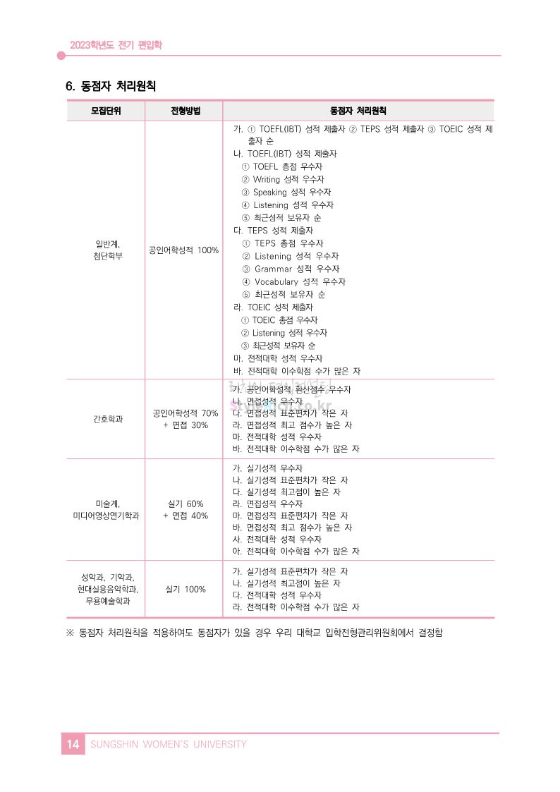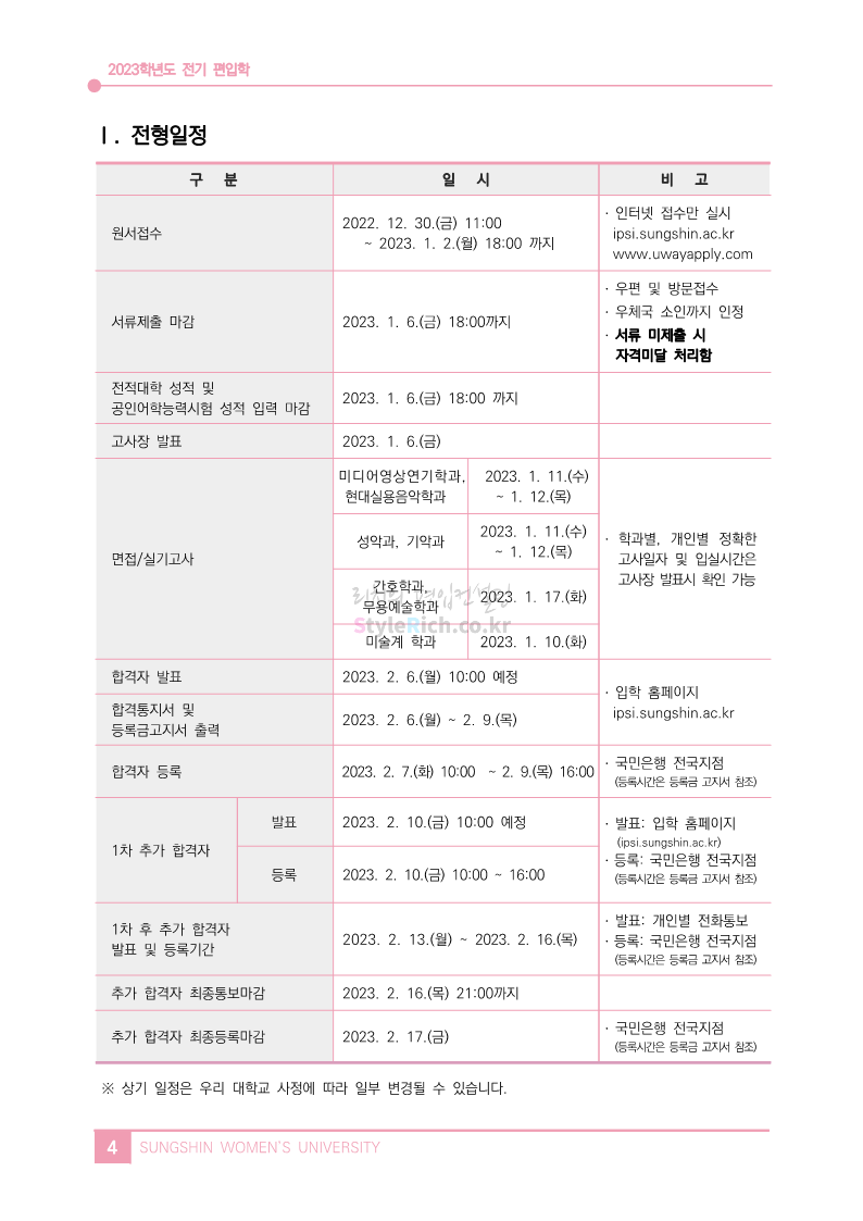 * 최종 모집요강 발표 이후에도 내용의 일부가 변경될 수 있으니 지원 전 반드시 성신여대 입학처에서 확인하세요.