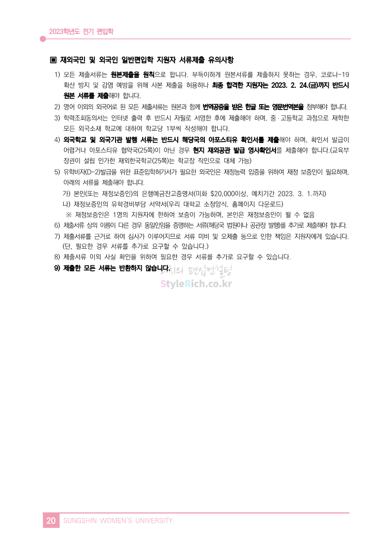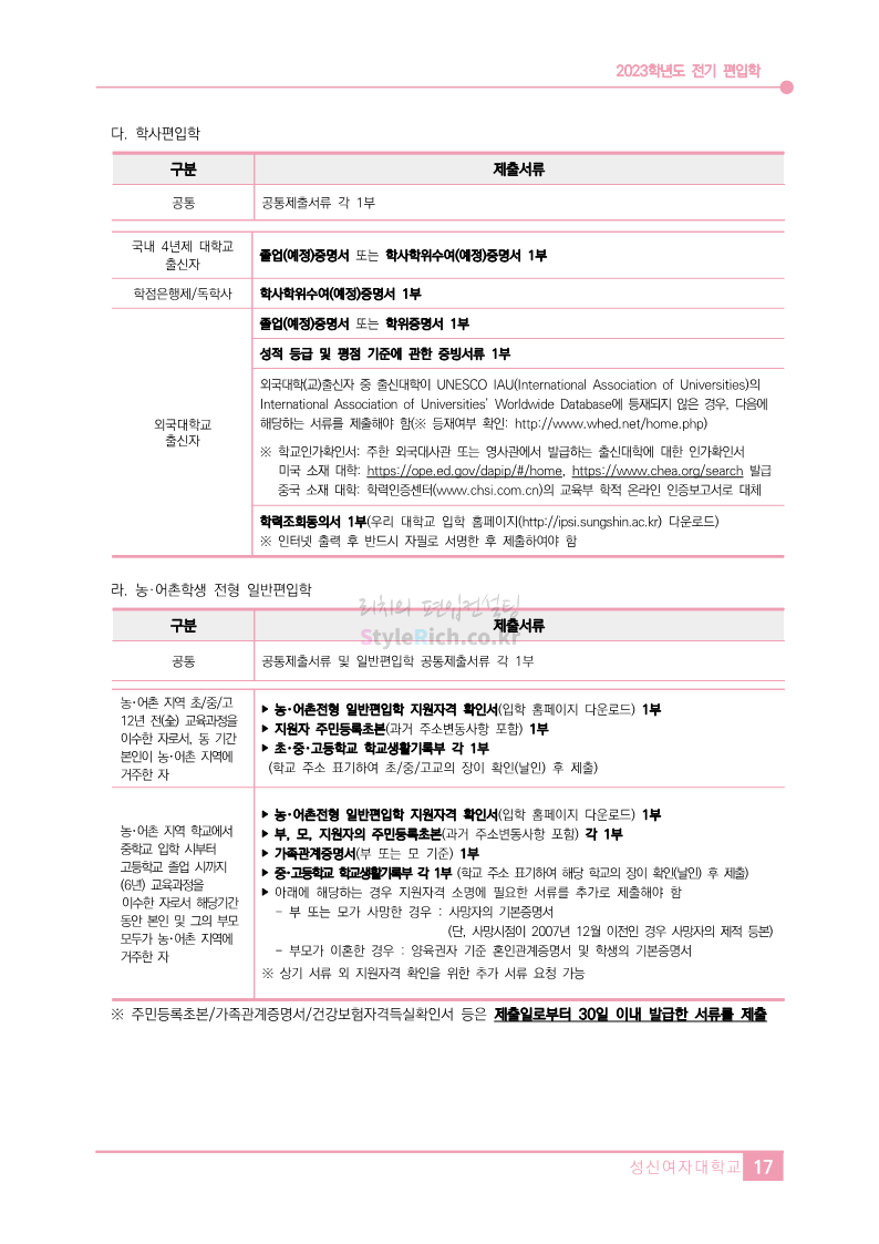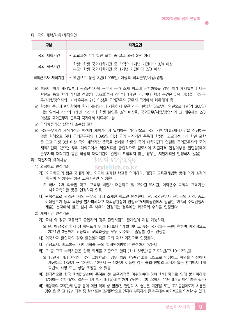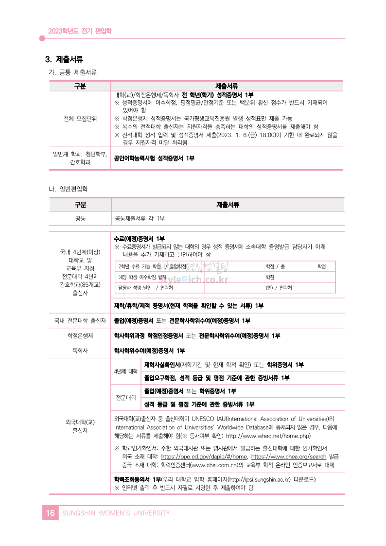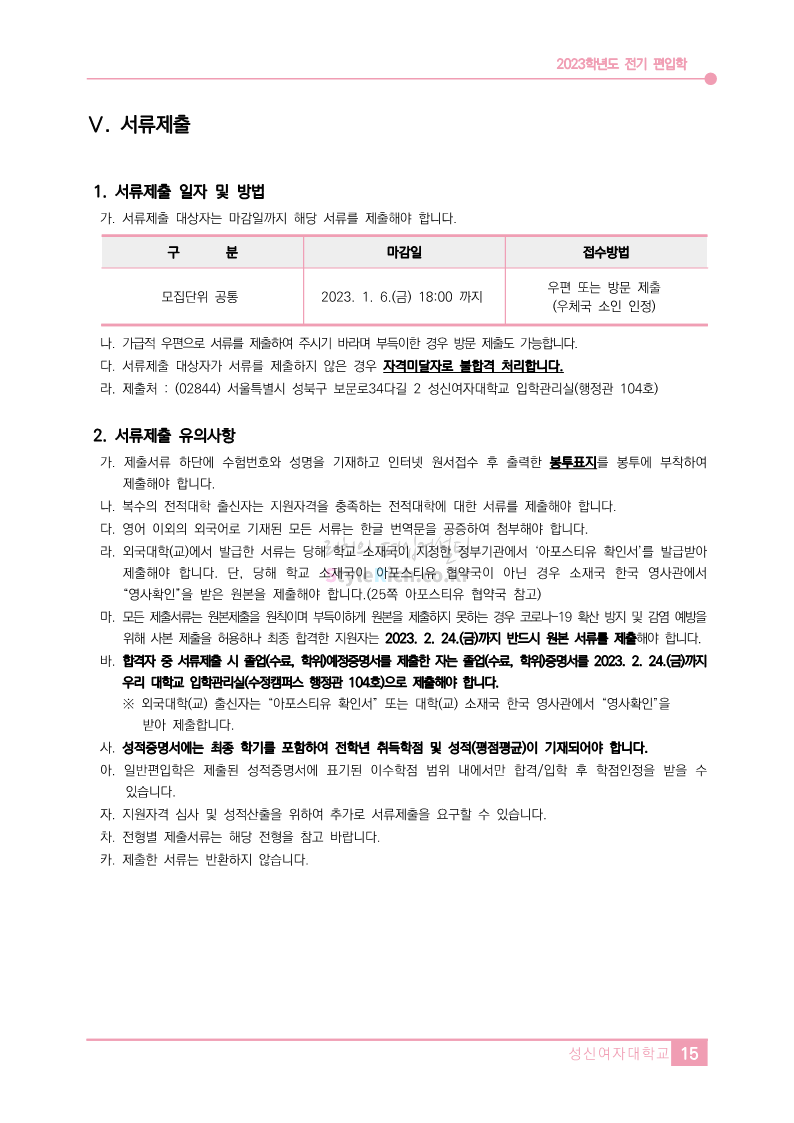 성신여대 편입 2023학년도 모집요강 간편하게 보자!