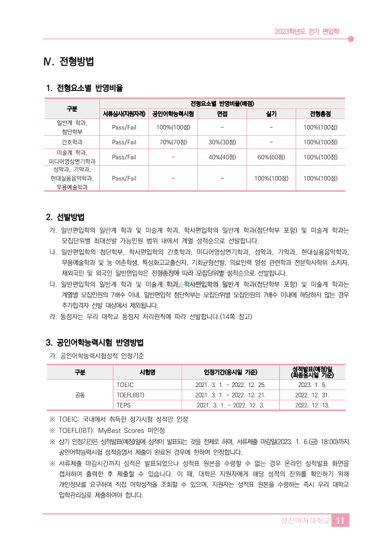 2023학년도 성신여대 편입 모집요강(2022.12.16 기준)을 간편하게 확인하세요.