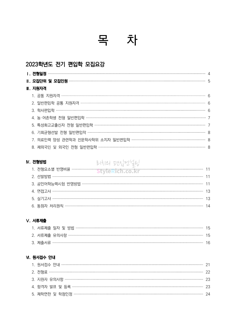 • 편입 모집요강/2023학년도 모집요강