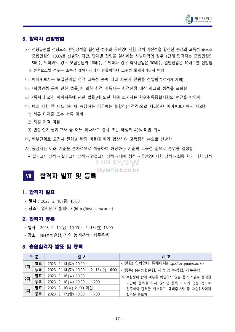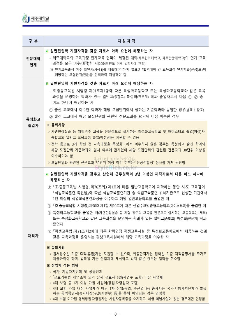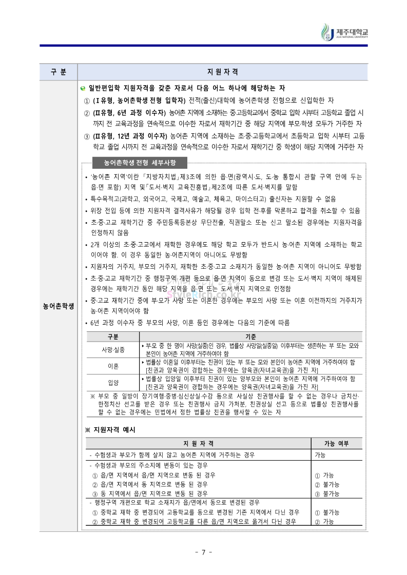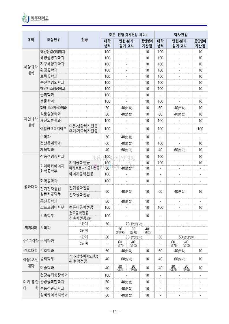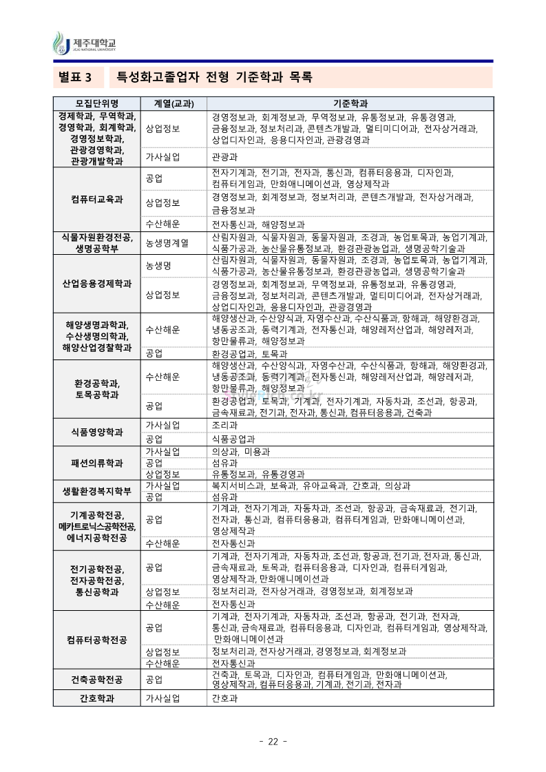 * 최종 모집요강 발표 이후에도 내용의 일부가 변경될 수 있으니 지원 전 반드시 제주대 입학처에서 확인하세요.