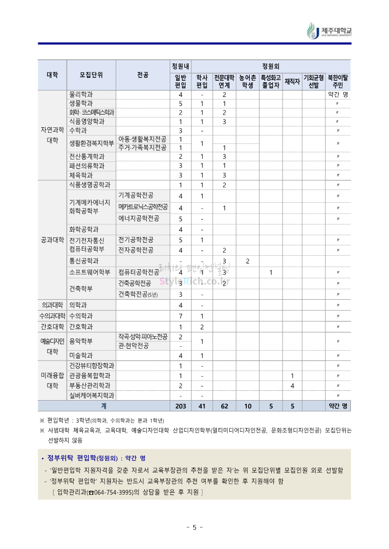 제주대 편입 2023학년도 모집요강 간편하게 보자!