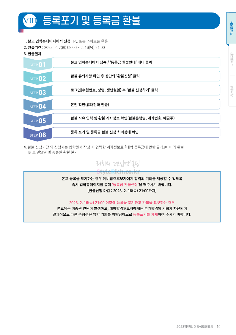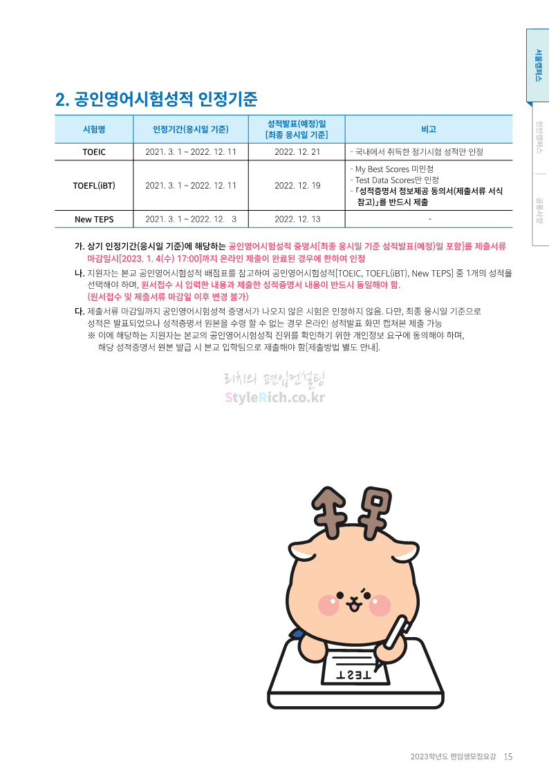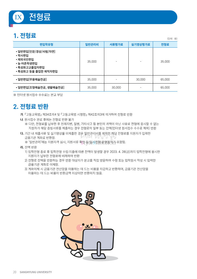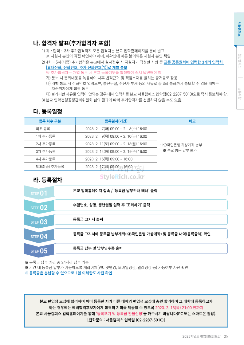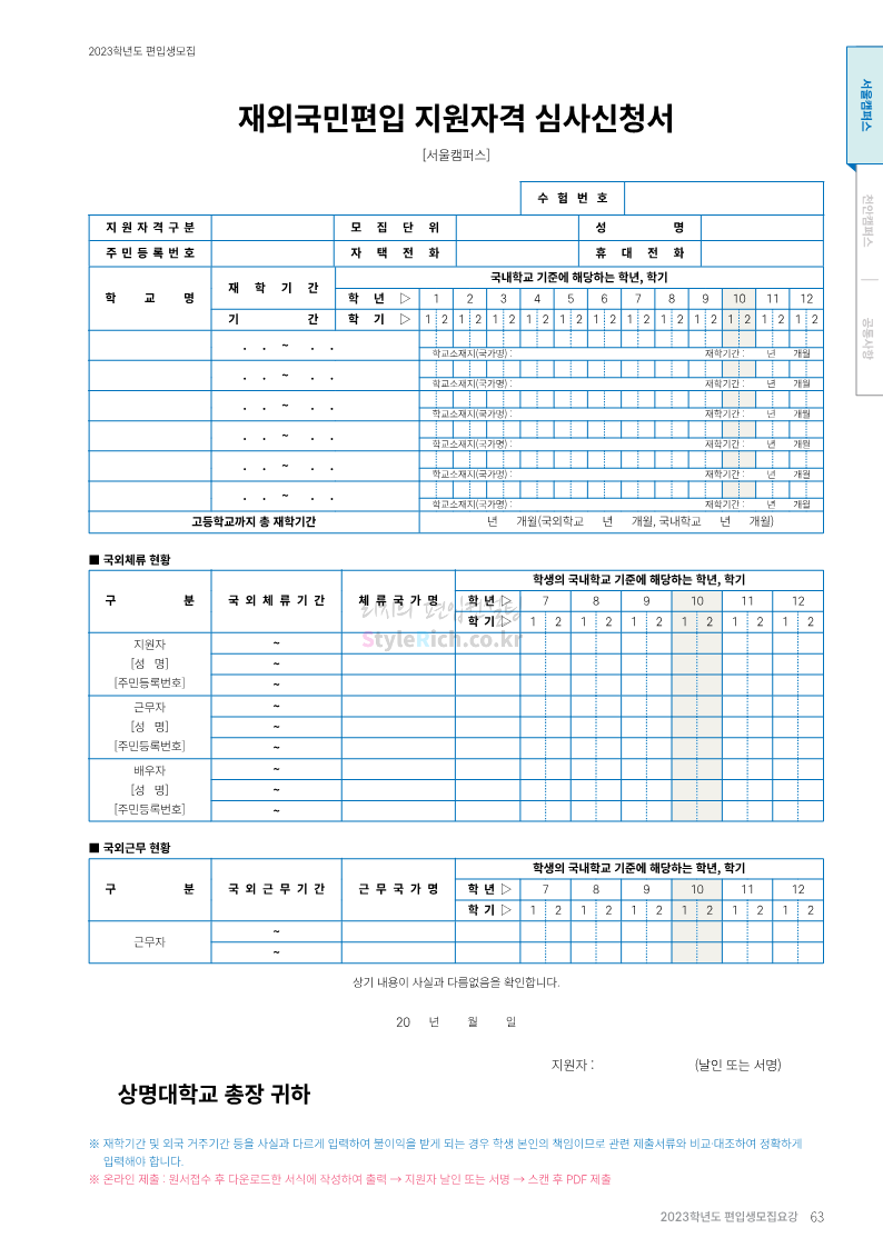 상명대 편입 2023학년도 모집요강 간편하게 보자! 2022.12.20 20:24 편입 모집요강/2023학년도 모집요강 2023학년도 상명대 편입 모집요강(2022.12.20 기준)을 간편하게 확인하세요. * 최종 모집요강 발표 이후에도 내용의 일부가 변경될 수 있으니 지원 전 반드시 상명대 편입 입학처에서 확인하세요. 상명대 편입 최신 모집요강 확인하기 <출처: 상명대> 공유하기 게시글 관리 리치의 편입컨설팅 저작자표시 비영리 변경금지 (새창열림) '편입 모집요강 > 2023학년도 모집요강' 카테고리의 다른 글 경성대 편입 2023학년도 모집요강 간편하게 보자! (0) 2022.12.20 한양대(에리카) 편입 2023학년도 모집요강 간편하게 보자! (0) 2022.12.20 상명대(천안) 편입 2023학년도 모집요강 간편하게 보자! (0) 2022.12.20 제주대 편입 2023학년도 모집요강 간편하게 보자! (0) 2022.12.16 인천대 편입 2023학년도 모집요강 간편하게 보자! (0) 2022.12.16 댓글 공유하기 다른 글 댓글 이 글 공유하기 구독하기 구독하기 카카오톡 카카오톡 라인 라인 트위터 트위터 Facebook Facebook 카카오스토리 카카오스토리 밴드 밴드 네이버 블로그 네이버 블로그 Pocket Pocket Evernote Evernote 다른 글 경성대 편입 2023학년도 모집요강 간편하게 보자! 경성대 편입 2023학년도 모집요강 간편하게 보자! 2022.12.20 한양대(에리카) 편입 2023학년도 모집요강 간편하게 보자! 한양대(에리카) 편입 2023학년도 모집요강 간편하게 보자! 2022.12.20 상명대(천안) 편입 2023학년도 모집요강 간편하게 보자! 상명대(천안) 편입 2023학년도 모집요강 간편하게 보자! 2022.12.20 제주대 편입 2023학년도 모집요강 간편하게 보자! 제주대 편입 2023학년도 모집요강 간편하게 보자! 2022.12.16 다른 글 더 둘러보기