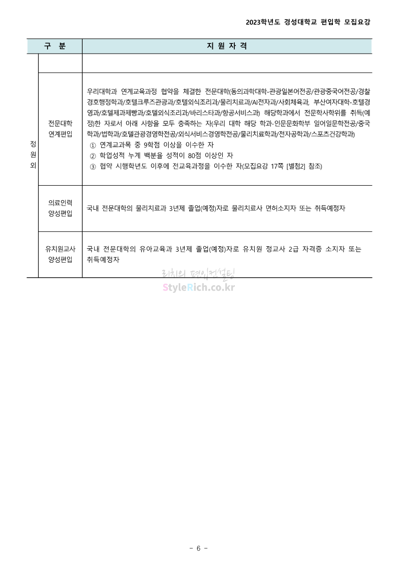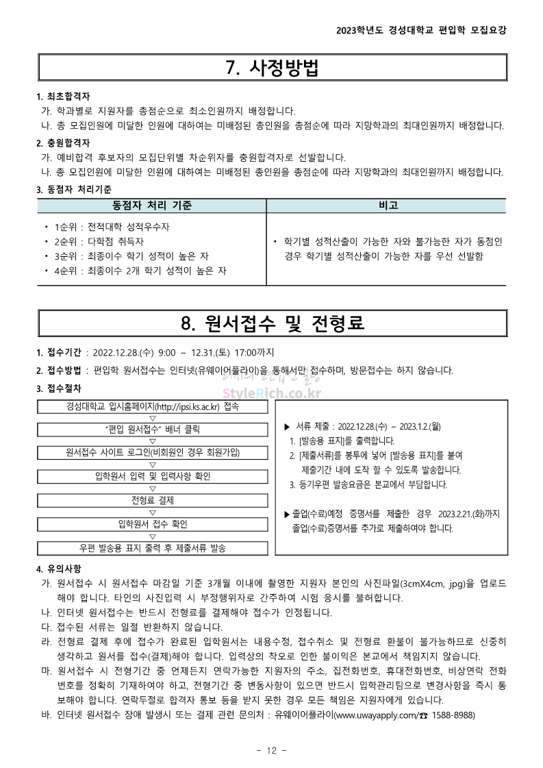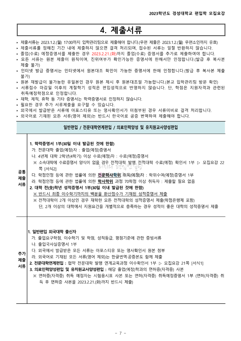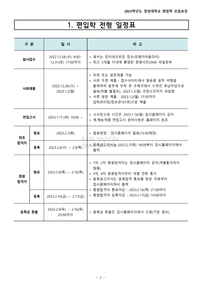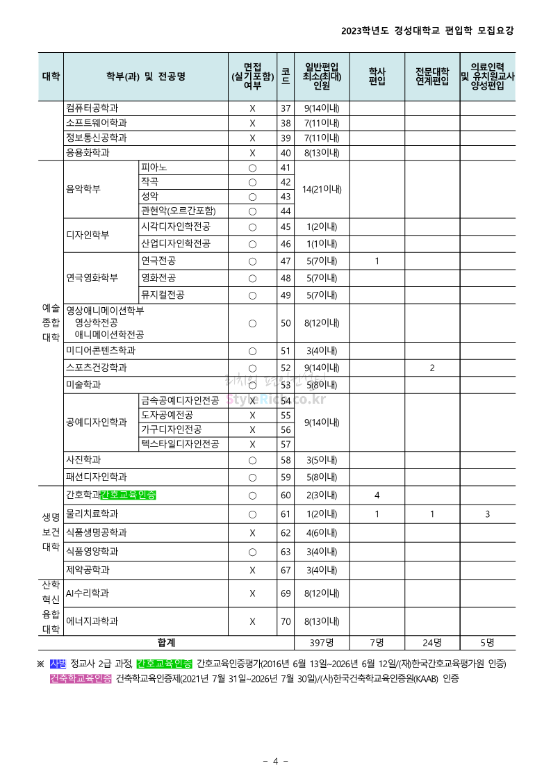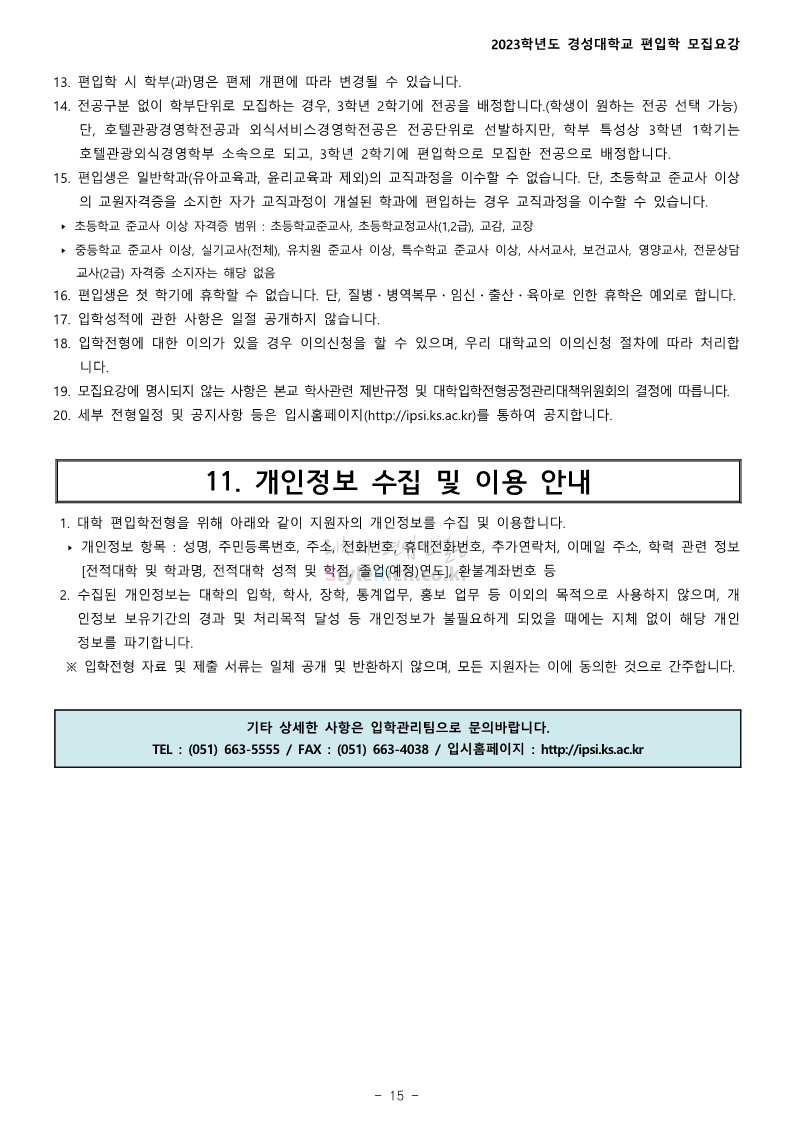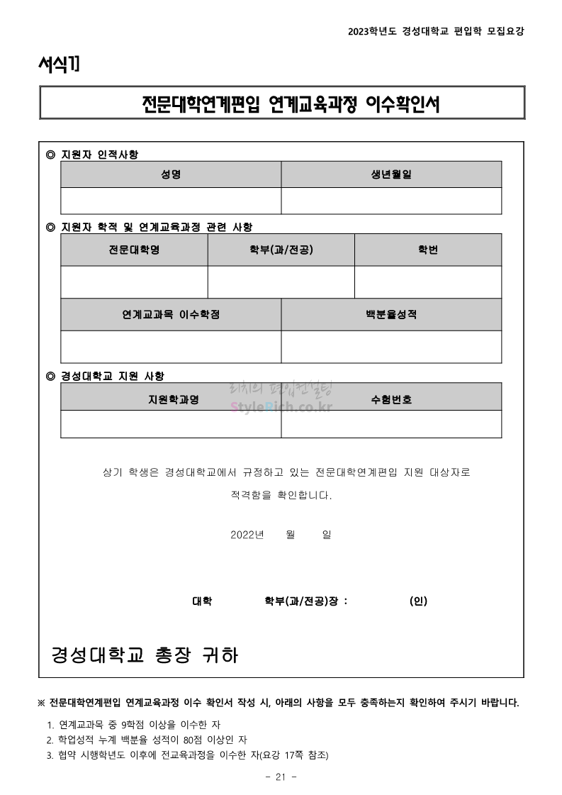 경성대 편입 2023학년도 모집요강 간편하게 보자! 2022.12.20 21:17 편입 모집요강/2023학년도 모집요강 2023학년도 경성대 편입 모집요강(2022.12.20 기준)을 간편하게 확인하세요. * 최종 모집요강 발표 이후에도 내용의 일부가 변경될 수 있으니 지원 전 반드시 경성대 입학처에서 확인하세요. 경성대 편입 최신 모집요강 확인하기 <출처: 경성대> 공유하기 게시글 관리 리치의 편입컨설팅 저작자표시 비영리 변경금지 (새창열림) '편입 모집요강 > 2023학년도 모집요강' 카테고리의 다른 글 덕성여대 편입 2023학년도 모집요강 간편하게 보자! (0) 2022.12.21 경상국립대 편입 2023학년도 모집요강 간편하게 보자! (0) 2022.12.20 한양대(에리카) 편입 2023학년도 모집요강 간편하게 보자! (0) 2022.12.20 상명대 편입 2023학년도 모집요강 간편하게 보자! (0) 2022.12.20 상명대(천안) 편입 2023학년도 모집요강 간편하게 보자! (0) 2022.12.20 댓글 공유하기 다른 글 댓글 이 글 공유하기 구독하기 구독하기 카카오톡 카카오톡 라인 라인 트위터 트위터 Facebook Facebook 카카오스토리 카카오스토리 밴드 밴드 네이버 블로그 네이버 블로그 Pocket Pocket Evernote Evernote 다른 글 덕성여대 편입 2023학년도 모집요강 간편하게 보자! 덕성여대 편입 2023학년도 모집요강 간편하게 보자! 2022.12.21 경상국립대 편입 2023학년도 모집요강 간편하게 보자! 경상국립대 편입 2023학년도 모집요강 간편하게 보자! 2022.12.20 한양대(에리카) 편입 2023학년도 모집요강 간편하게 보자! 한양대(에리카) 편입 2023학년도 모집요강 간편하게 보자! 2022.12.20 상명대 편입 2023학년도 모집요강 간편하게 보자! 상명대 편입 2023학년도 모집요강 간편하게 보자! 2022.12.20 다른 글 더 둘러보기