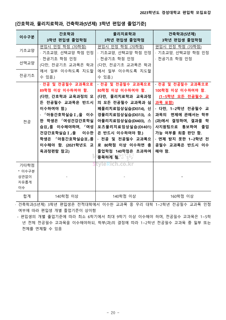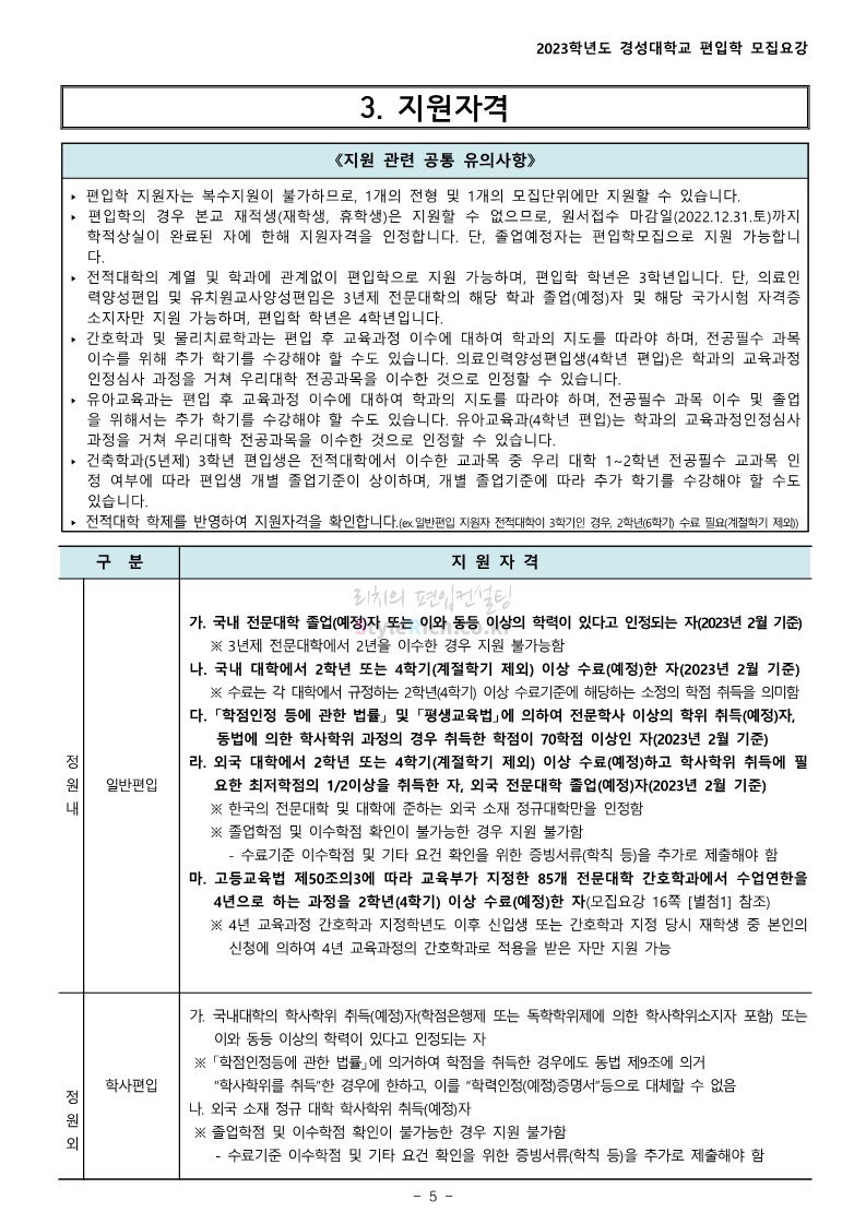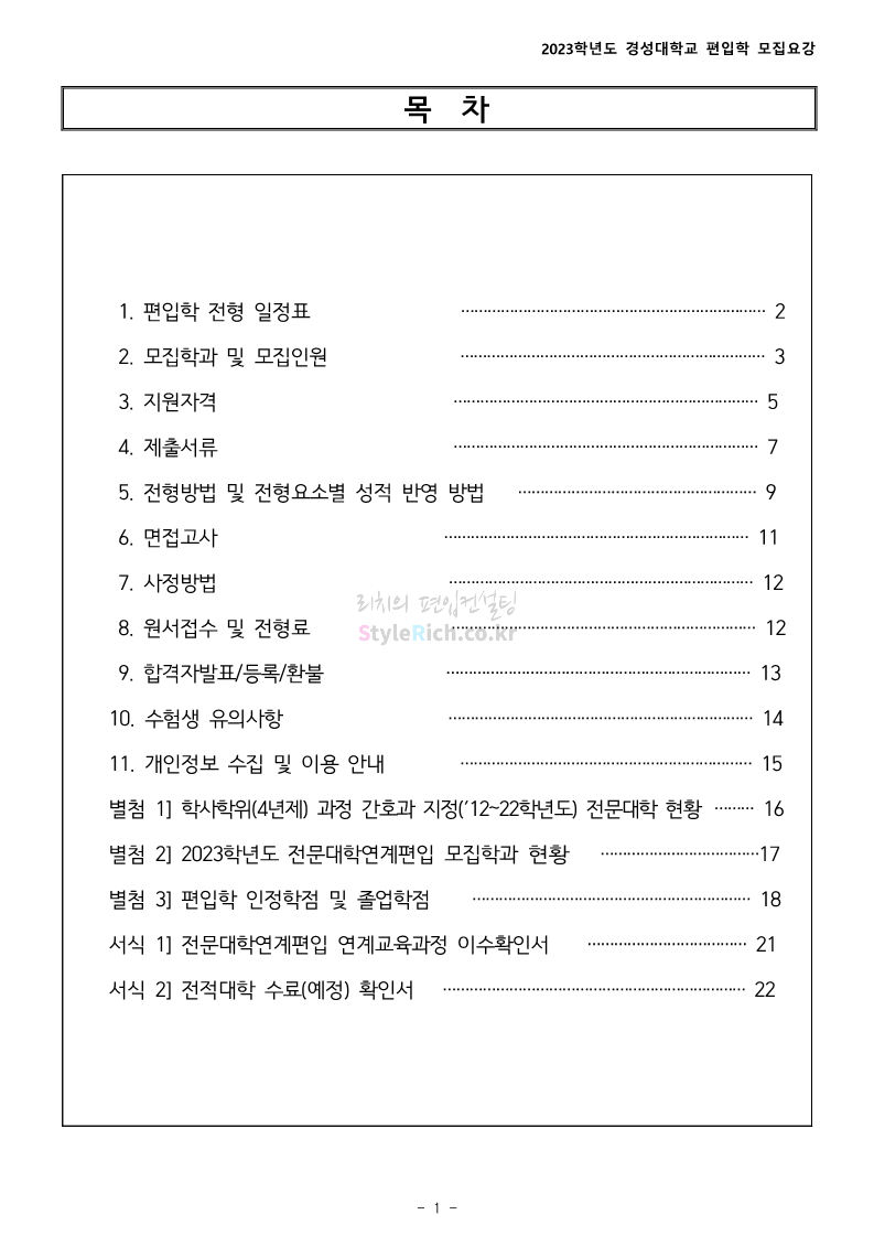 경성대 편입 2023학년도 모집요강 간편하게 보자! 2022.12.20 21:17 편입 모집요강/2023학년도 모집요강 2023학년도 경성대 편입 모집요강(2022.12.20 기준)을 간편하게 확인하세요. * 최종 모집요강 발표 이후에도 내용의 일부가 변경될 수 있으니 지원 전 반드시 경성대 입학처에서 확인하세요. 경성대 편입 최신 모집요강 확인하기 <출처: 경성대> 공유하기 게시글 관리 리치의 편입컨설팅 저작자표시 비영리 변경금지 (새창열림) '편입 모집요강 > 2023학년도 모집요강' 카테고리의 다른 글 덕성여대 편입 2023학년도 모집요강 간편하게 보자! (0) 2022.12.21 경상국립대 편입 2023학년도 모집요강 간편하게 보자! (0) 2022.12.20 한양대(에리카) 편입 2023학년도 모집요강 간편하게 보자! (0) 2022.12.20 상명대 편입 2023학년도 모집요강 간편하게 보자! (0) 2022.12.20 상명대(천안) 편입 2023학년도 모집요강 간편하게 보자! (0) 2022.12.20 댓글 공유하기 다른 글 댓글 이 글 공유하기 구독하기 구독하기 카카오톡 카카오톡 라인 라인 트위터 트위터 Facebook Facebook 카카오스토리 카카오스토리 밴드 밴드 네이버 블로그 네이버 블로그 Pocket Pocket Evernote Evernote 다른 글 덕성여대 편입 2023학년도 모집요강 간편하게 보자! 덕성여대 편입 2023학년도 모집요강 간편하게 보자! 2022.12.21 경상국립대 편입 2023학년도 모집요강 간편하게 보자! 경상국립대 편입 2023학년도 모집요강 간편하게 보자! 2022.12.20 한양대(에리카) 편입 2023학년도 모집요강 간편하게 보자! 한양대(에리카) 편입 2023학년도 모집요강 간편하게 보자! 2022.12.20 상명대 편입 2023학년도 모집요강 간편하게 보자! 상명대 편입 2023학년도 모집요강 간편하게 보자! 2022.12.20 다른 글 더 둘러보기