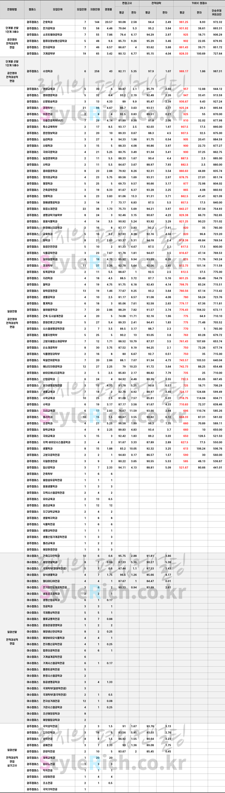 * 전형요소로 분류 후 공인영어 점수 또는 전적대 성적이 높은 순으로 정렬