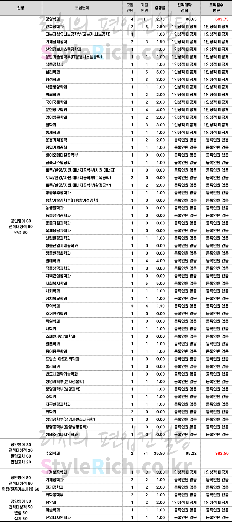 * 등록인원 1명이하는 성적 미공개