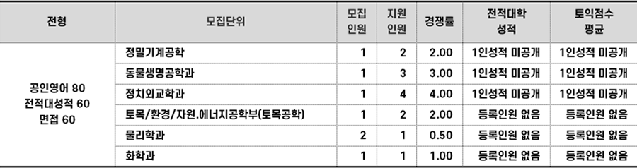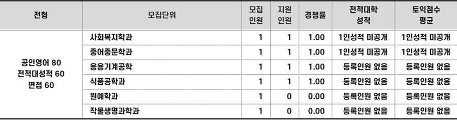 2022학년도 전북대 농어촌편입 합격점수 현황