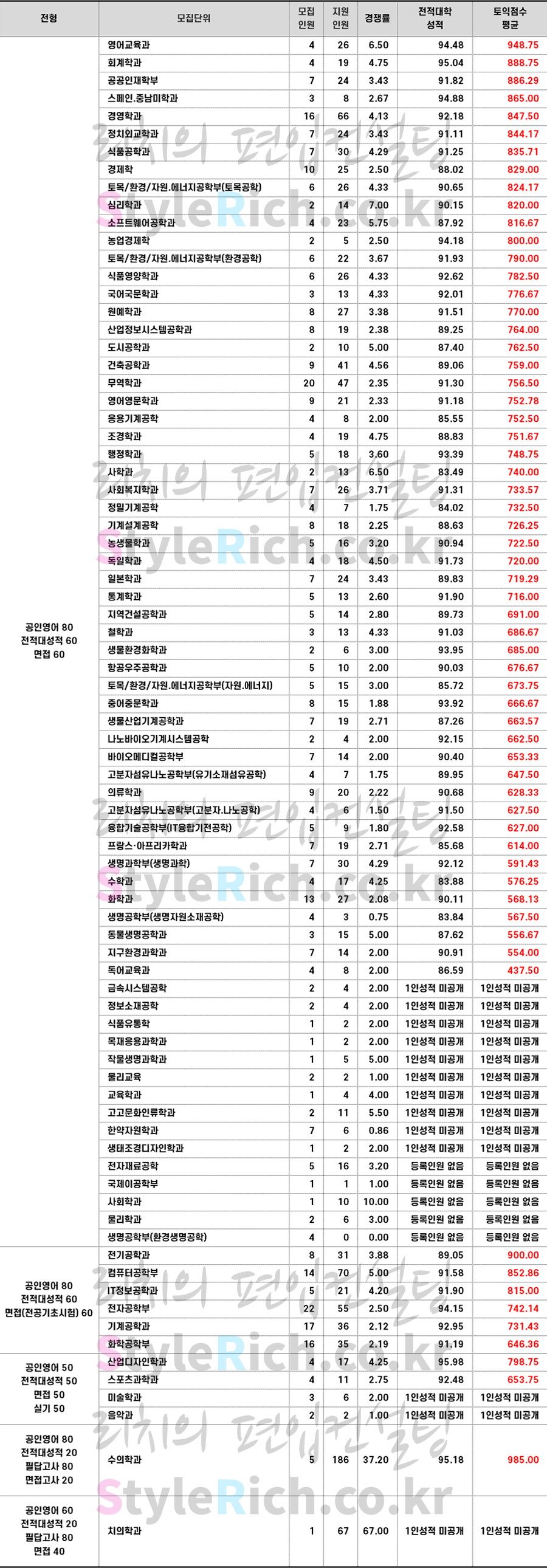 * 전형요소로 분류 후 공인영어 점수가 높은 순으로 정렬