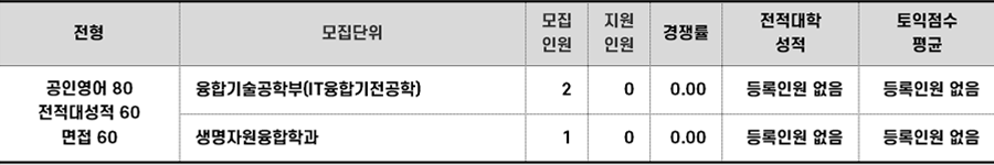 2022학년도 전북대 특성화고졸재직자편입 합격점수 현황