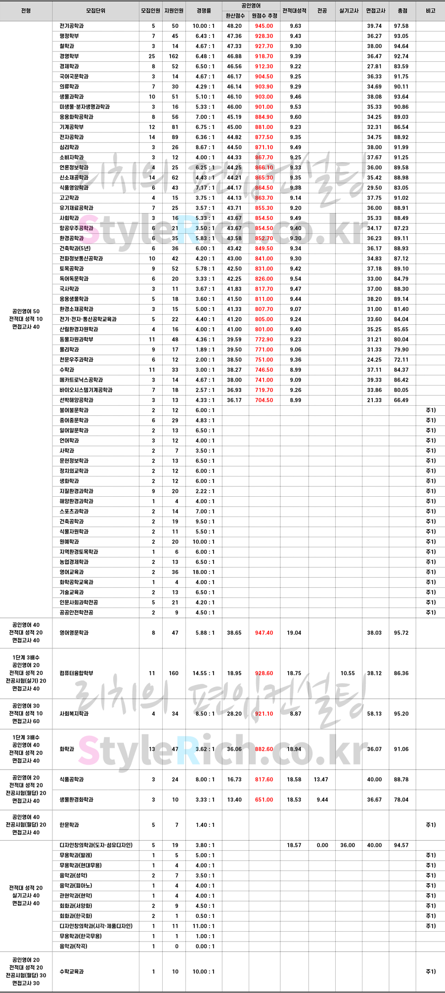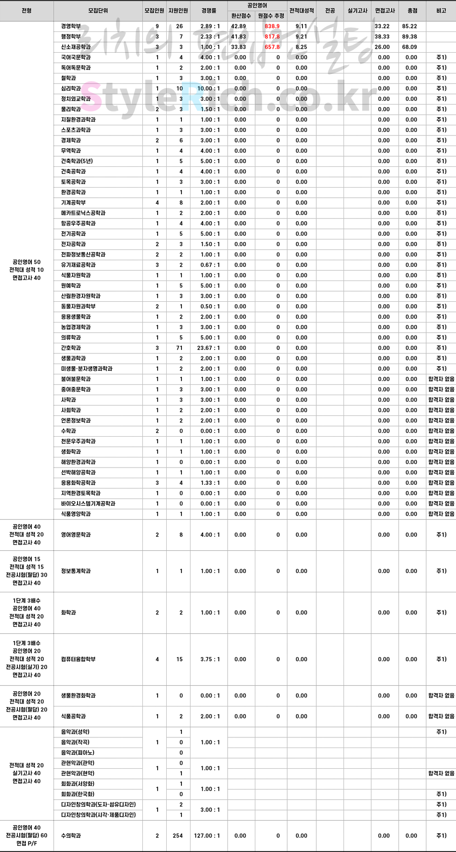 * 주1) 합격자가 2명 이하인 모집단위로 성적 산출에서 제외